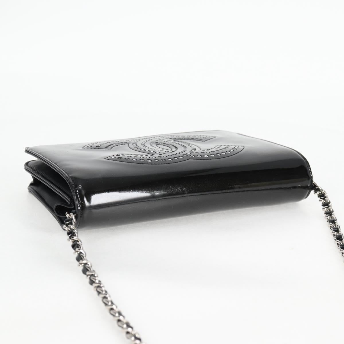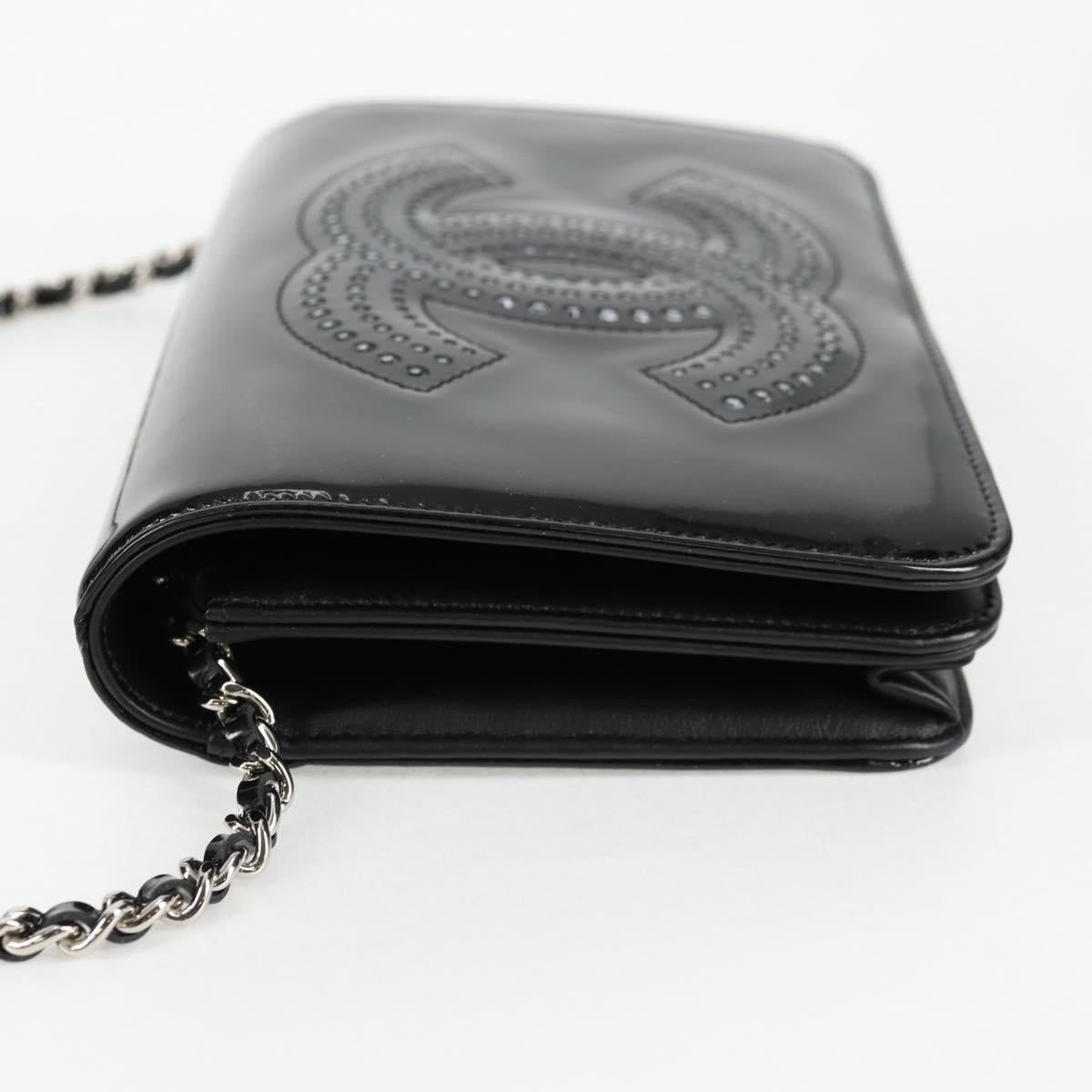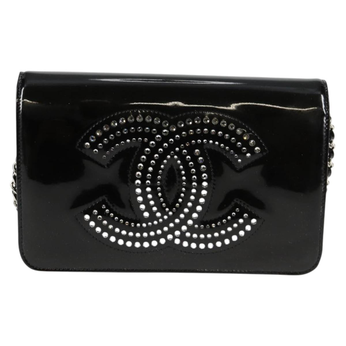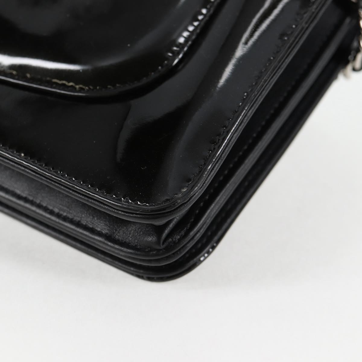 CHANEL Chain Shoulder Bag Enamel Black CC Auth 127546M