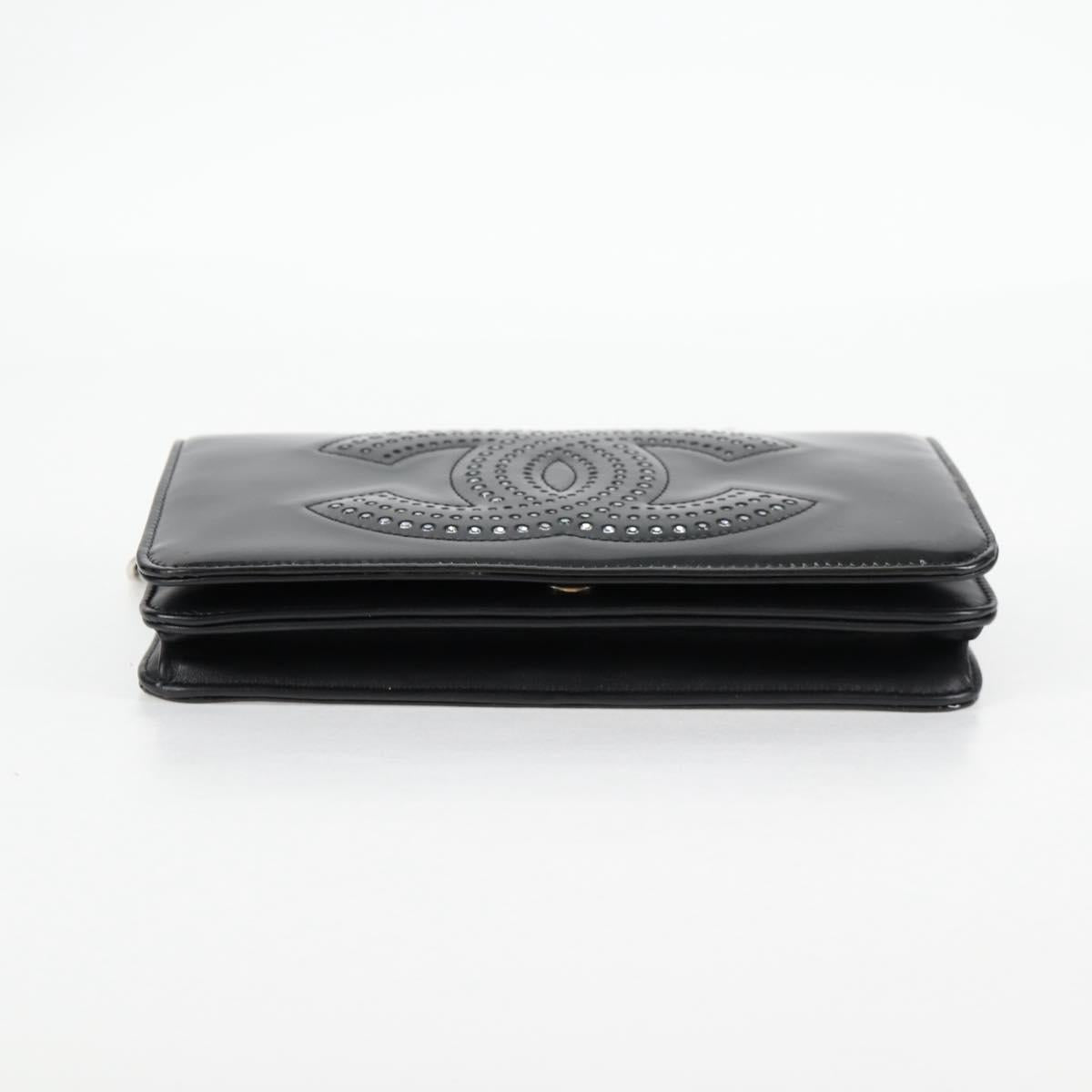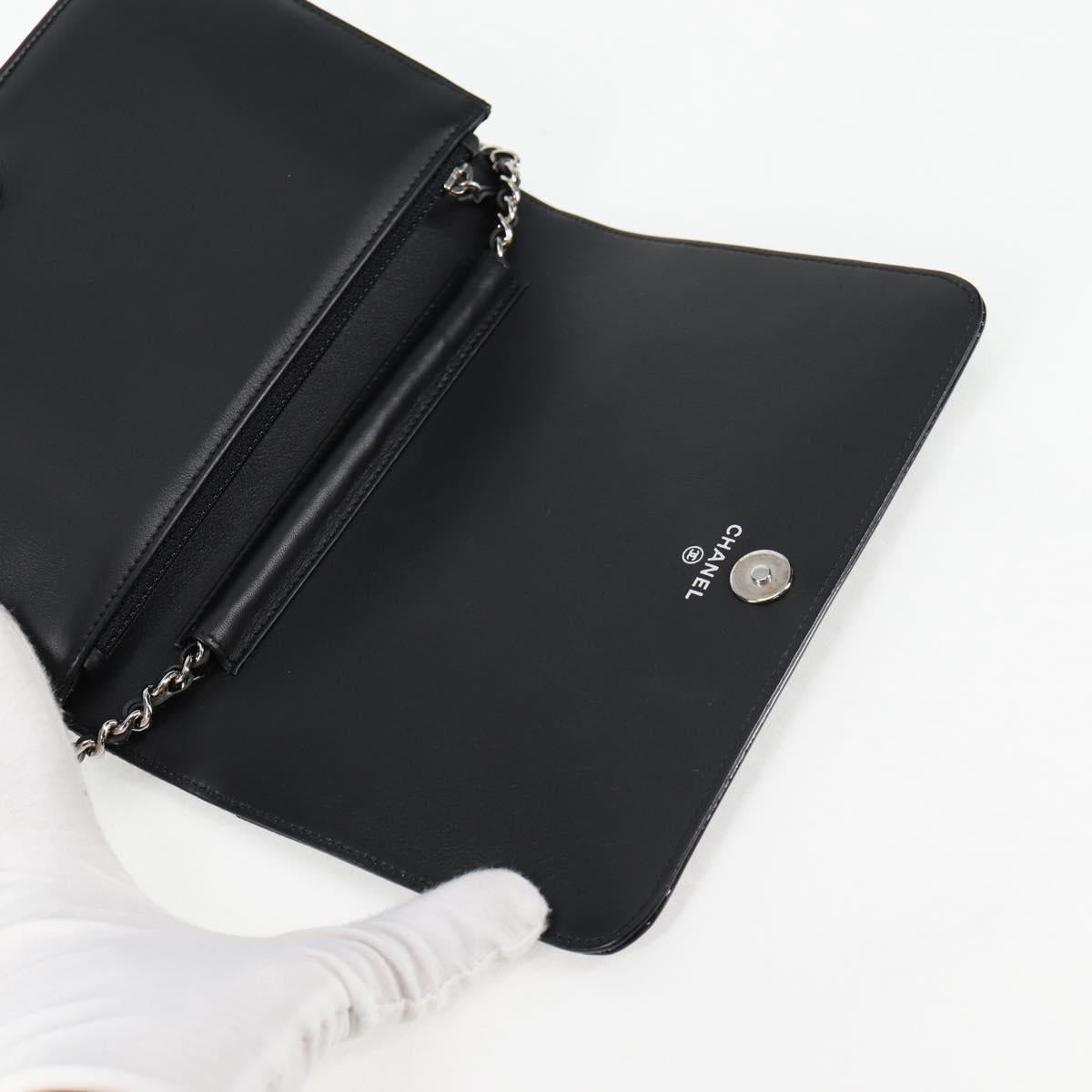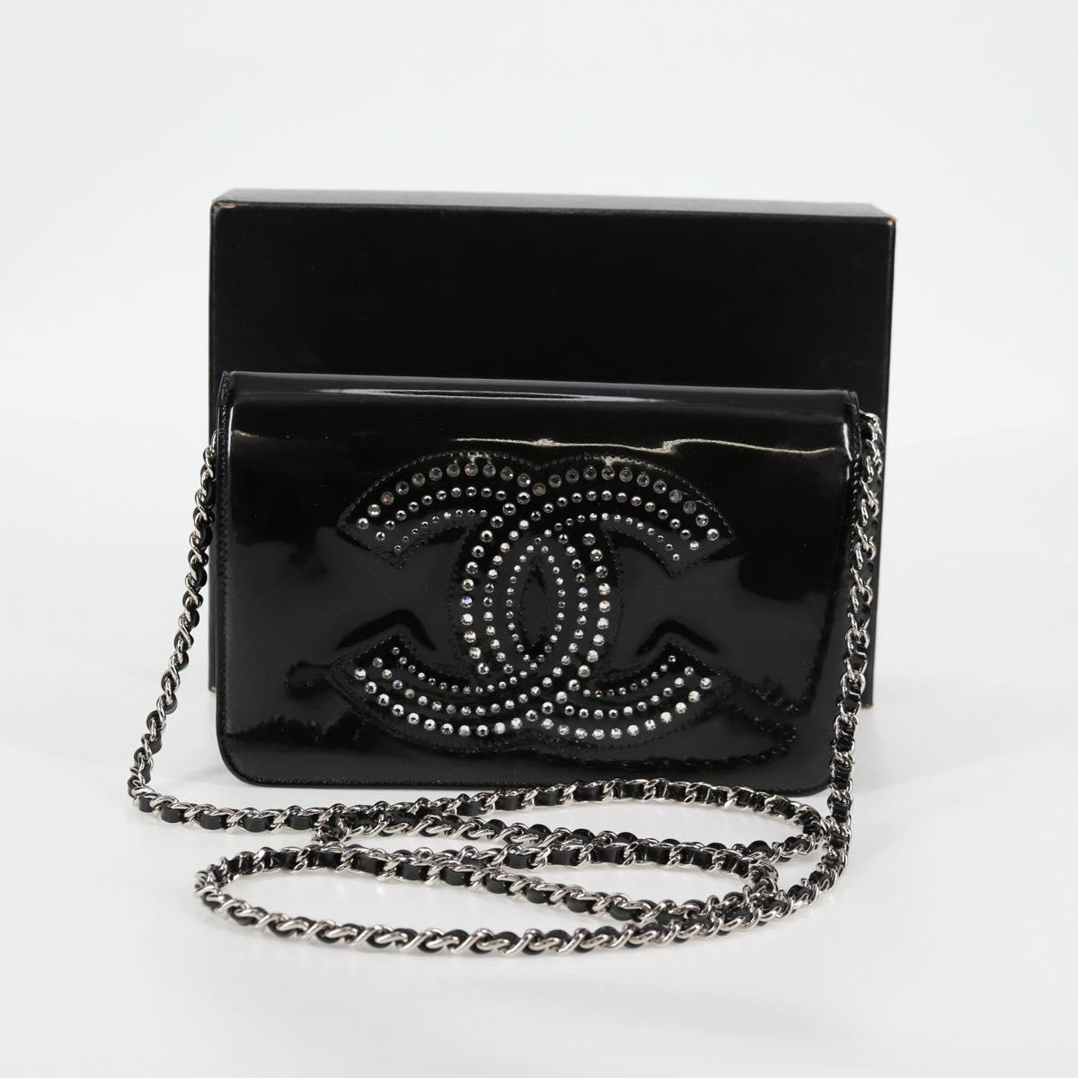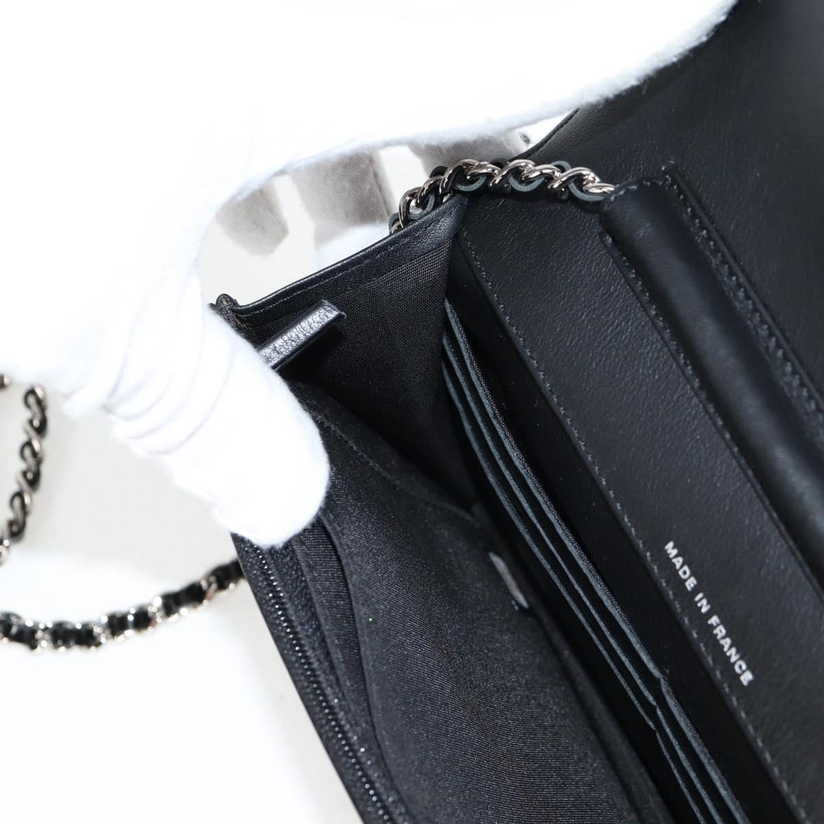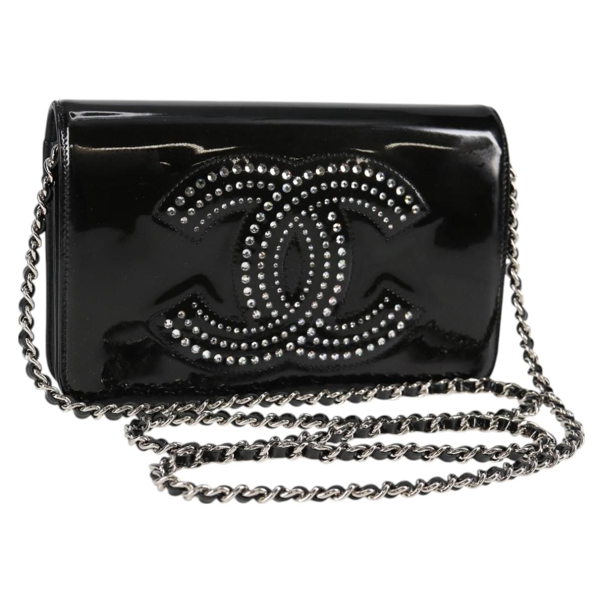 CHANEL Chain Shoulder Bag Enamel Black CC Auth 127546M