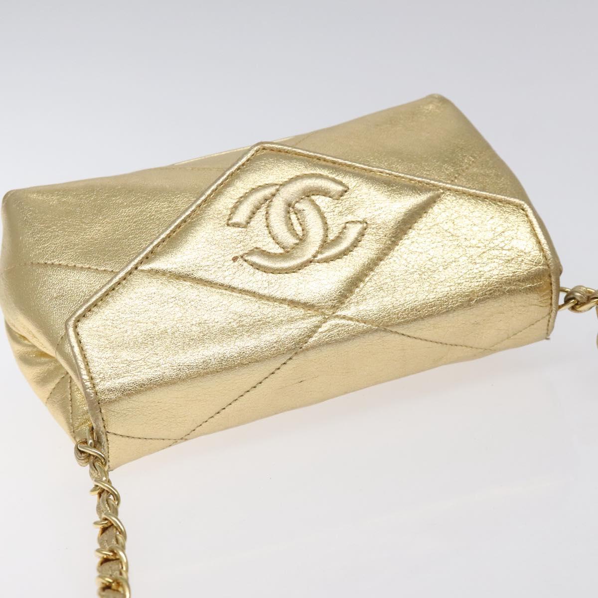 CHANEL Chain Shoulder Bag Leather Gold CC Auth 115214V