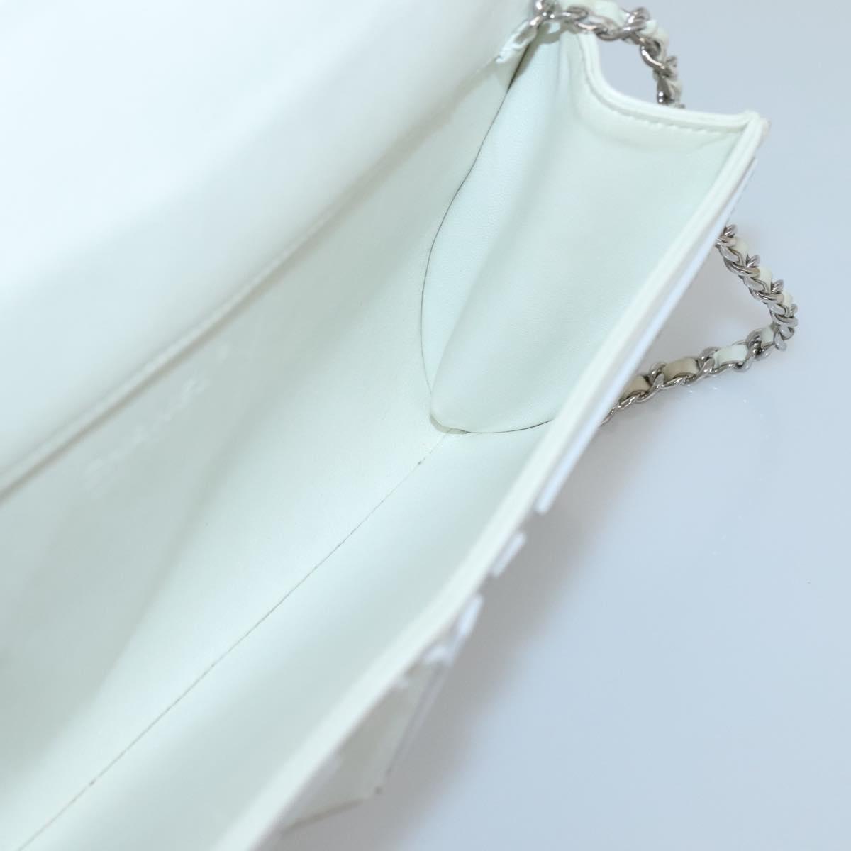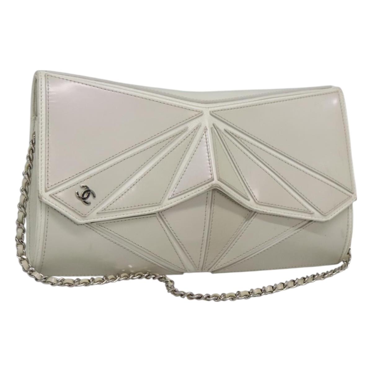 CHANEL Chain Shoulder Bag Leather Gray Silver CC Auth 127258V