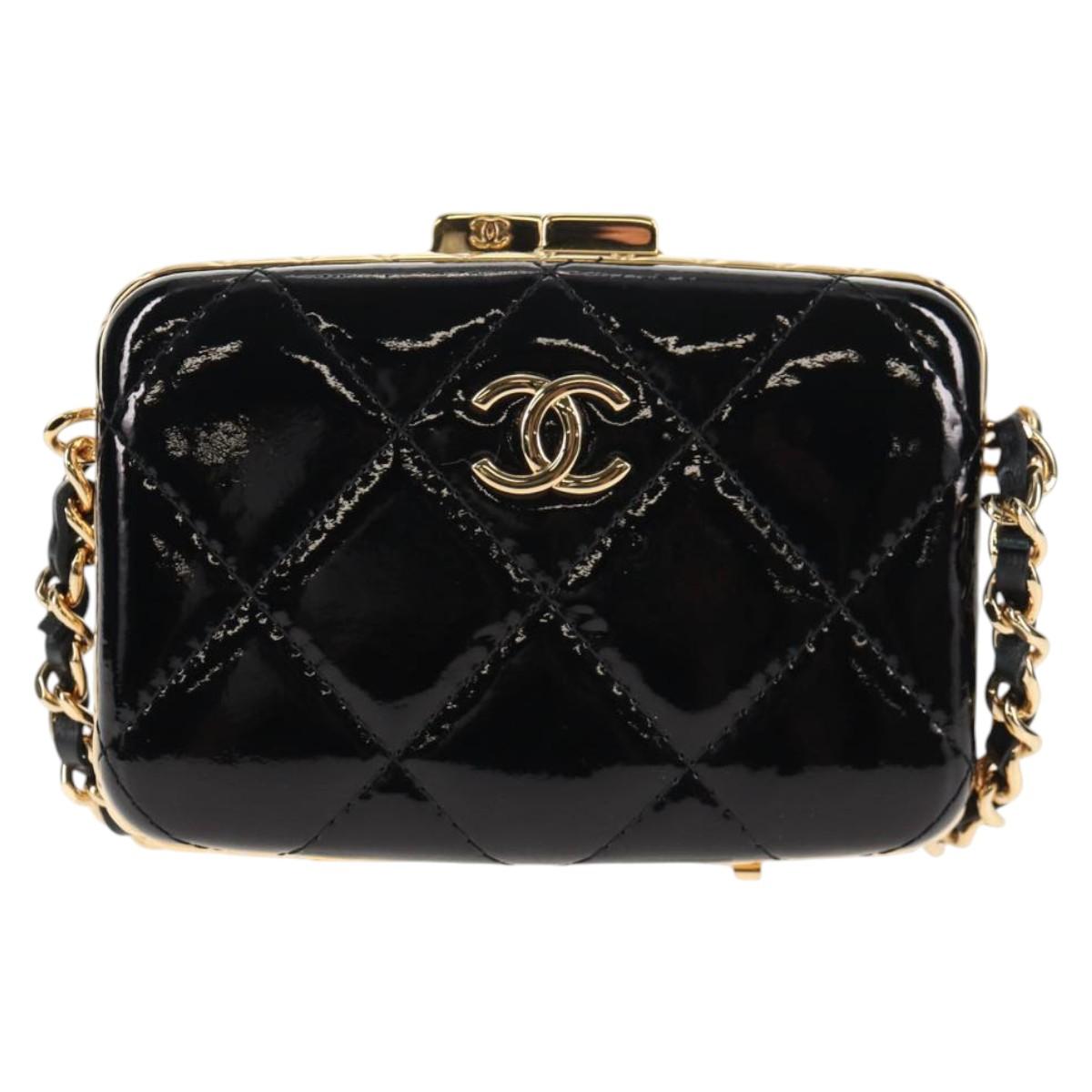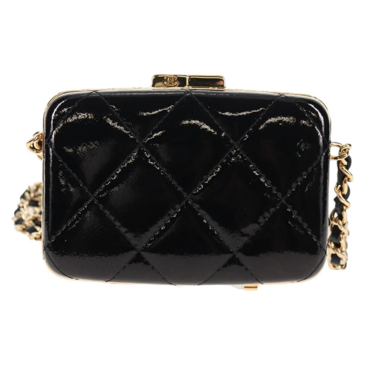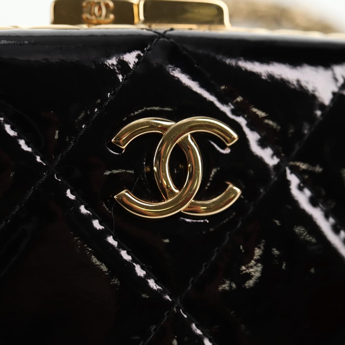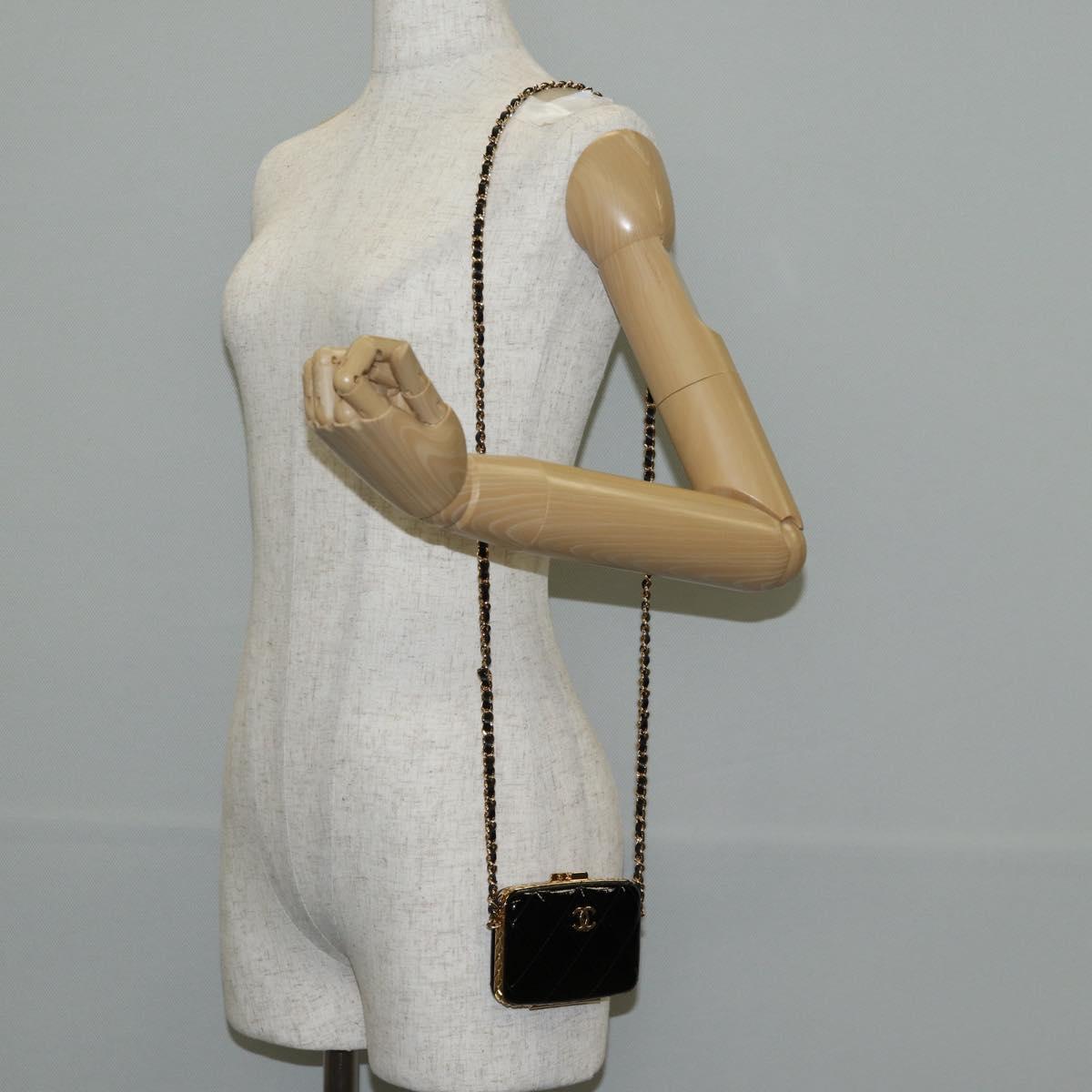CHANEL Chain Shoulder Bag Patent leather Black Gold CC Auth 134911M