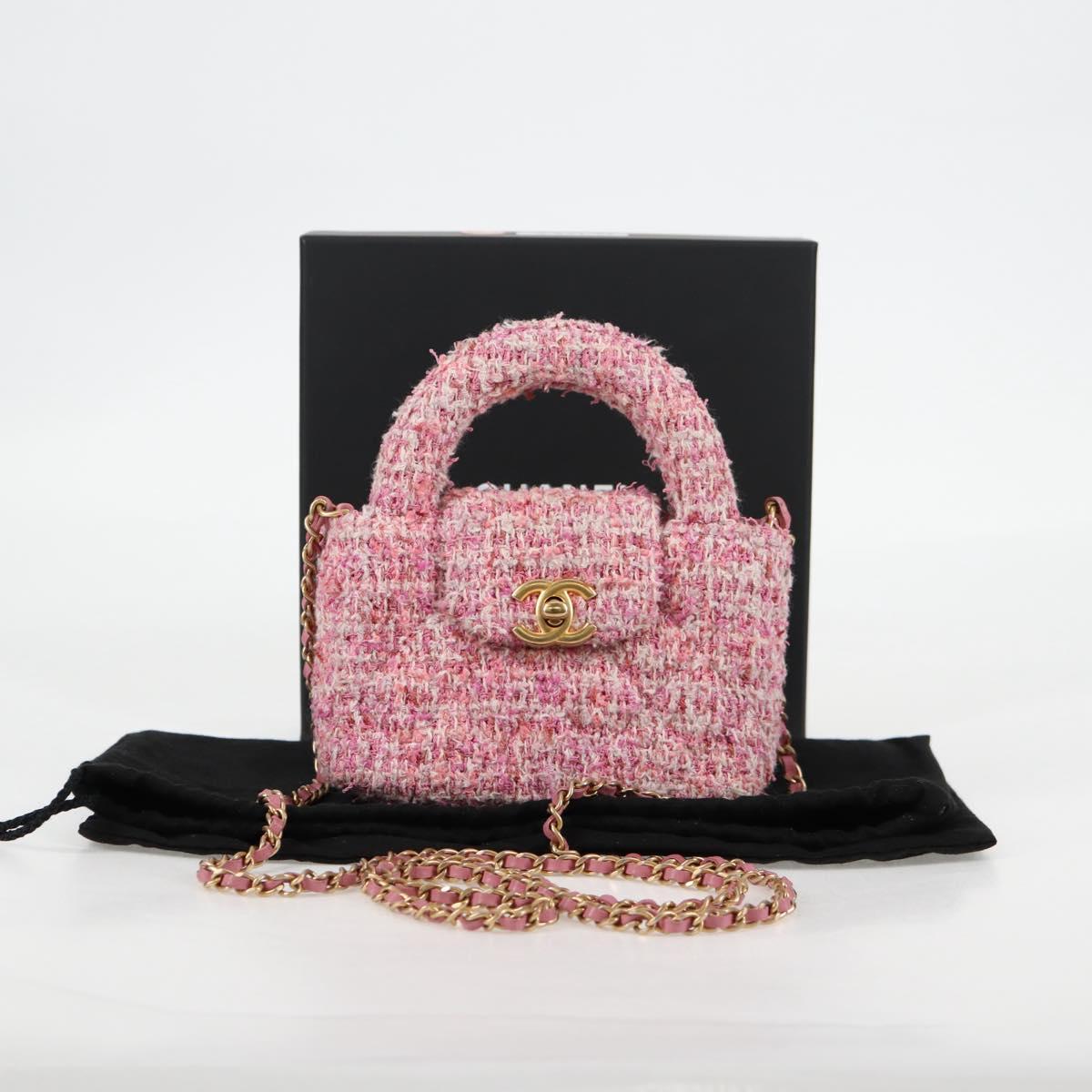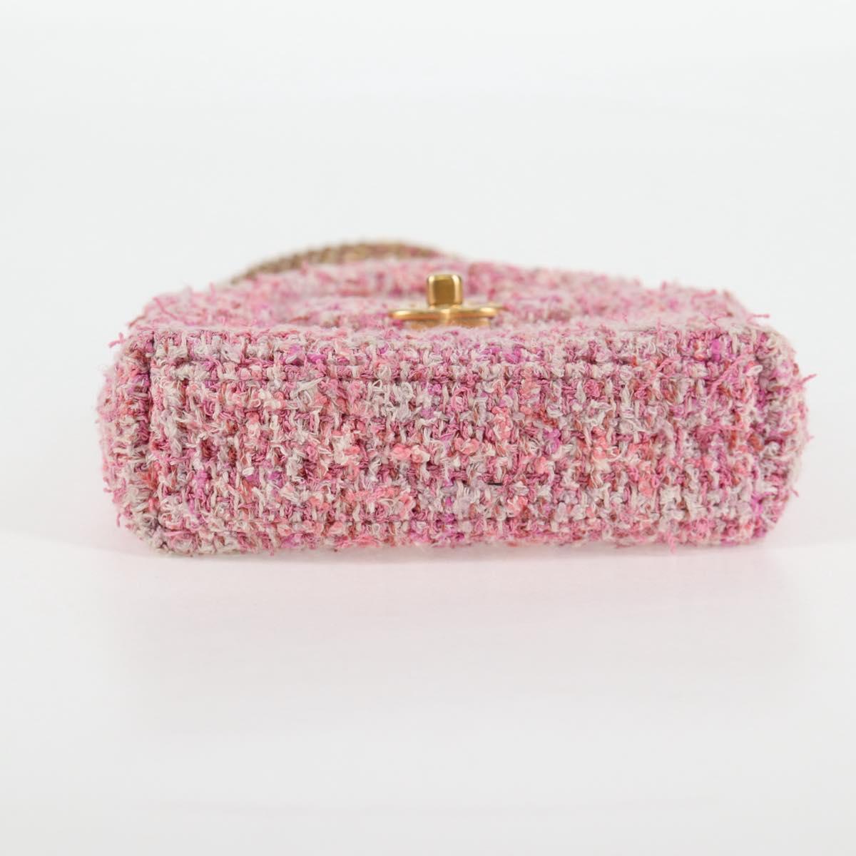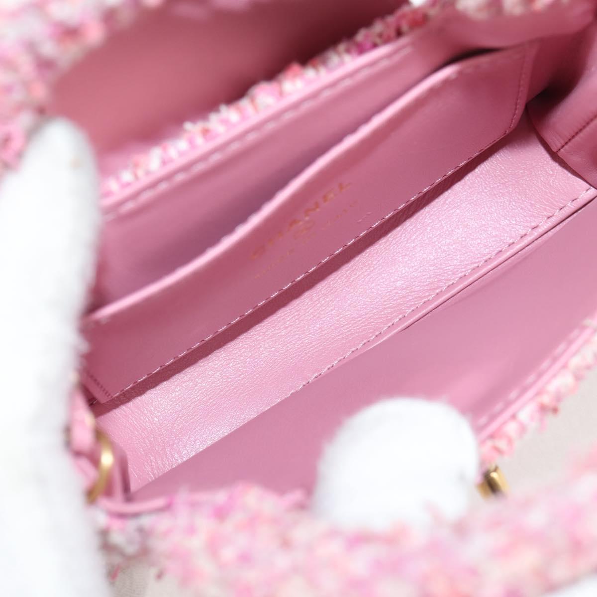 CHANEL Chain Shoulder Bag Tweed Pink Gold CC Auth 127553M