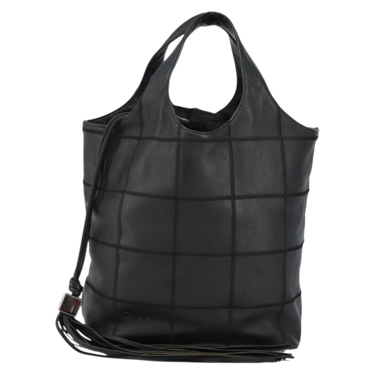 CHANEL Choco Bar Hand Bag Leather Black CC Auth BA6318V