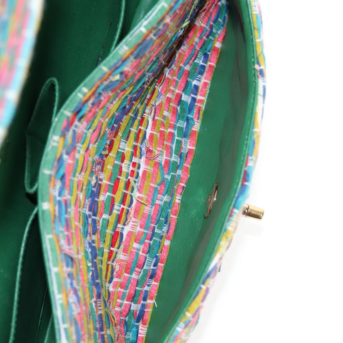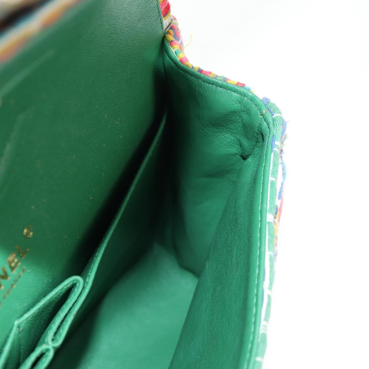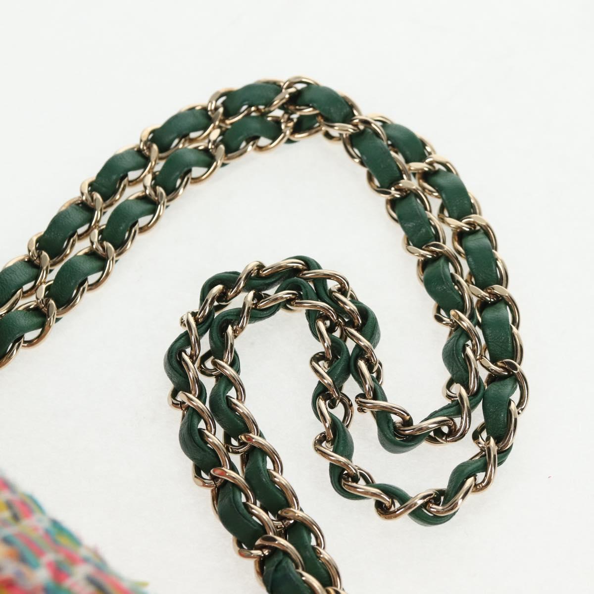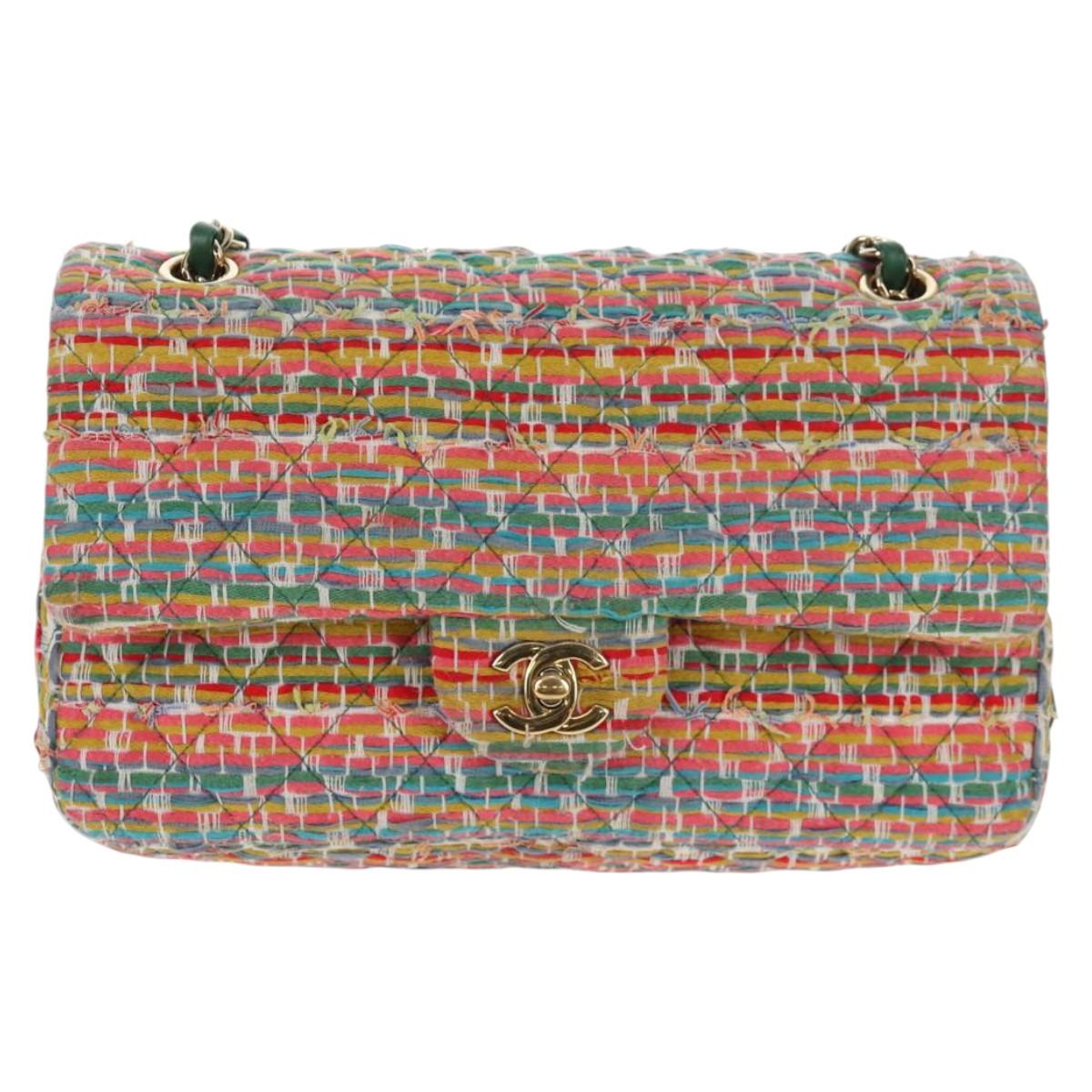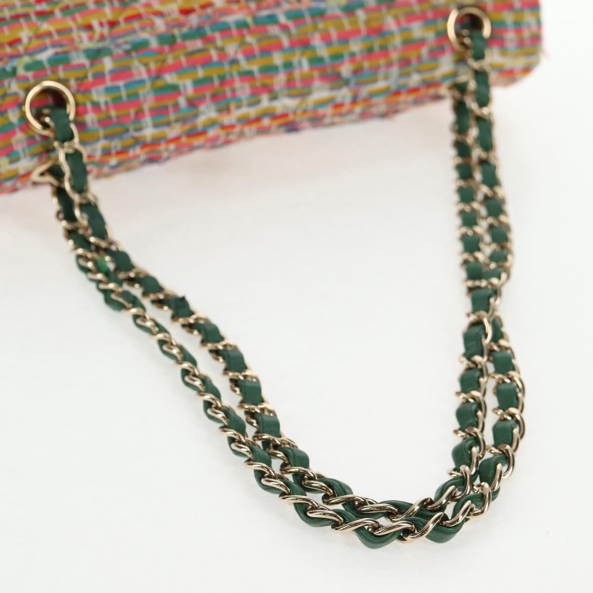 CHANEL Double Flap Matelasse 25 Chain Bag tweed Multicolor Gold CC Auth 142314M