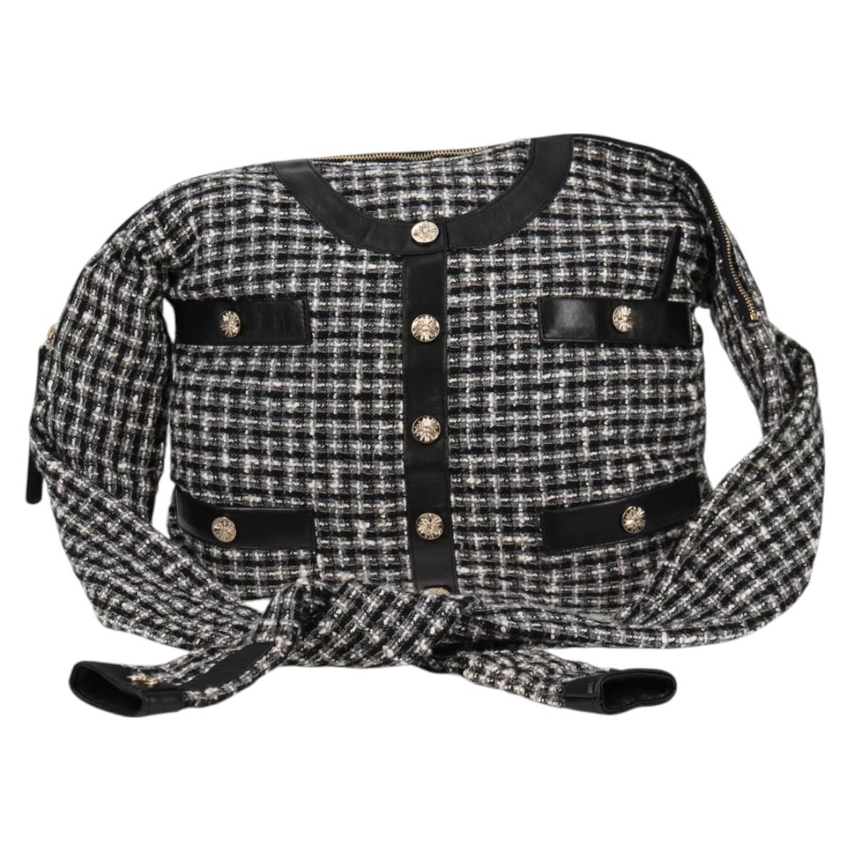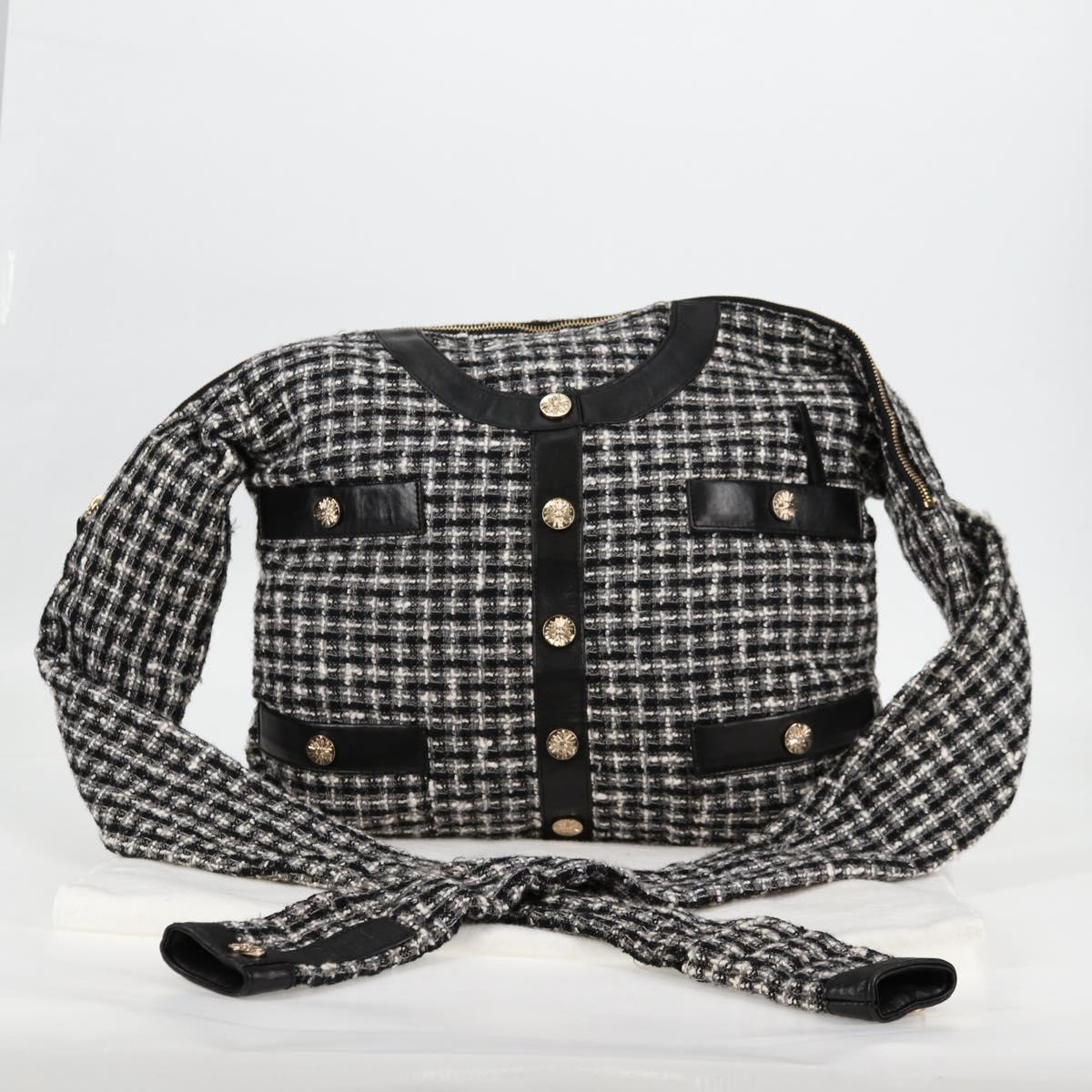 CHANEL Girl Chanel Jacket Shoulder Bag tweed Black White CC Auth 126244V