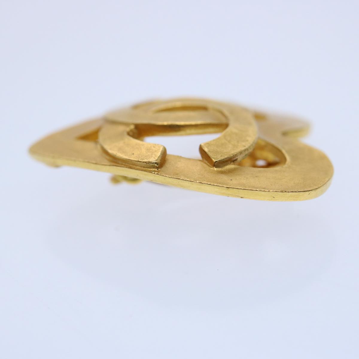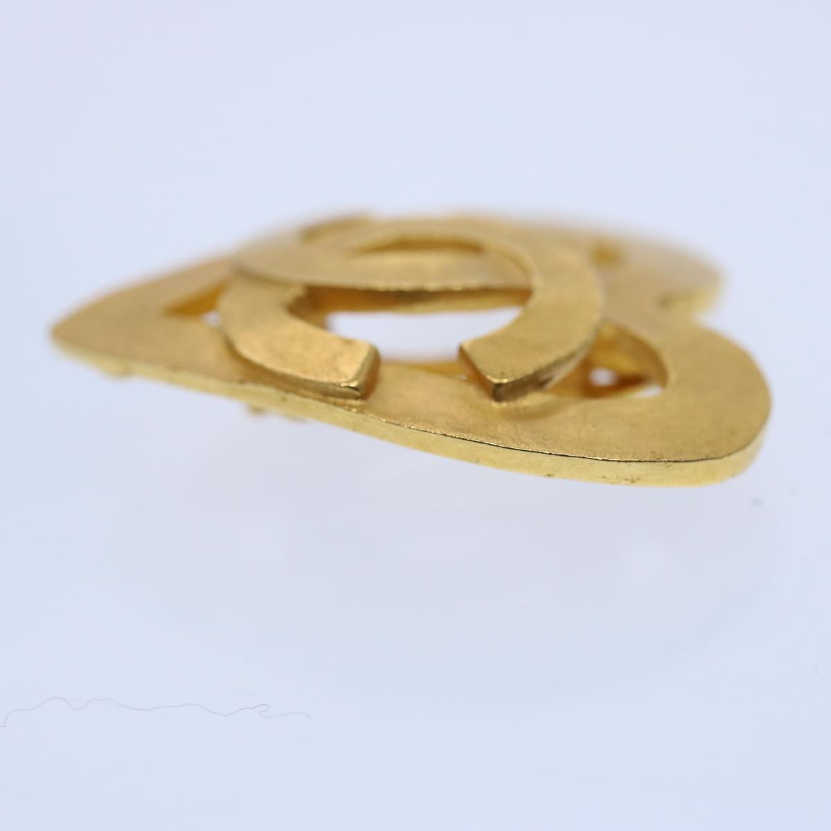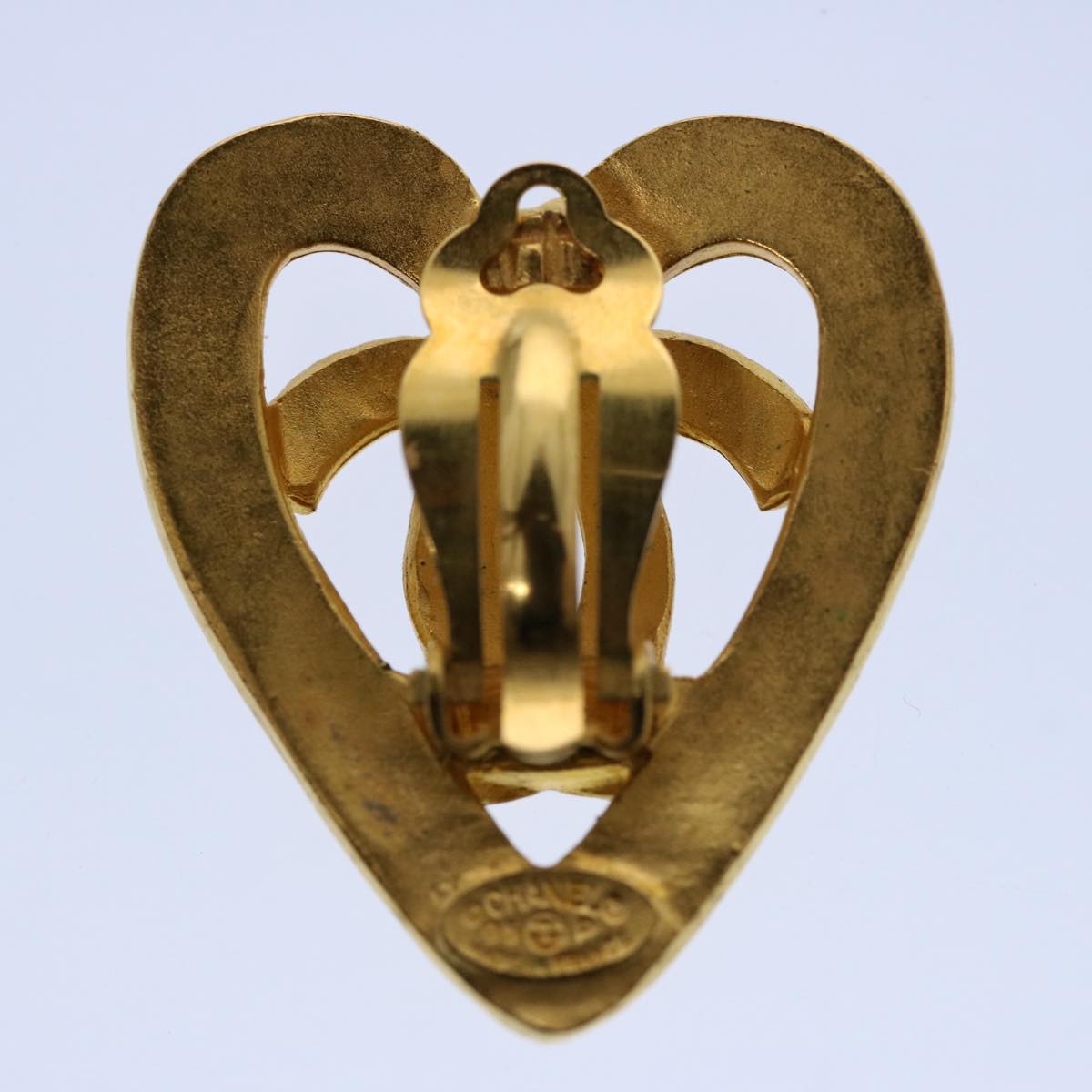 CHANEL heart Earring Gold Tone CC Auth 60077A