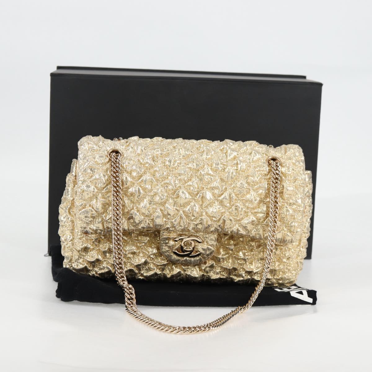 CHANEL Matelasse 23 Double Flap Chain Bag Cotton Leather Gold CC Auth 128126SV