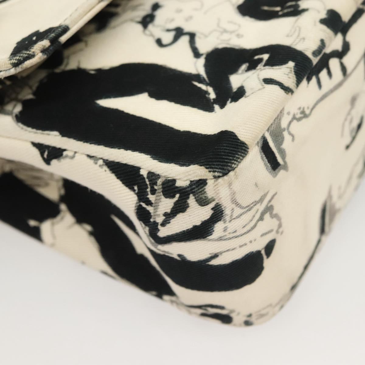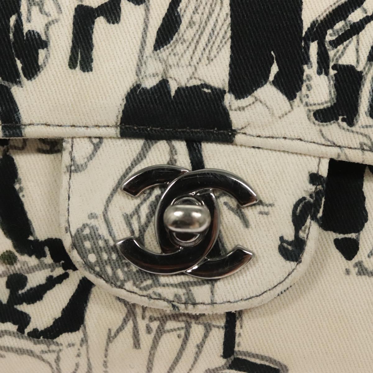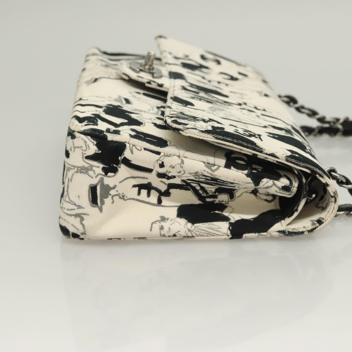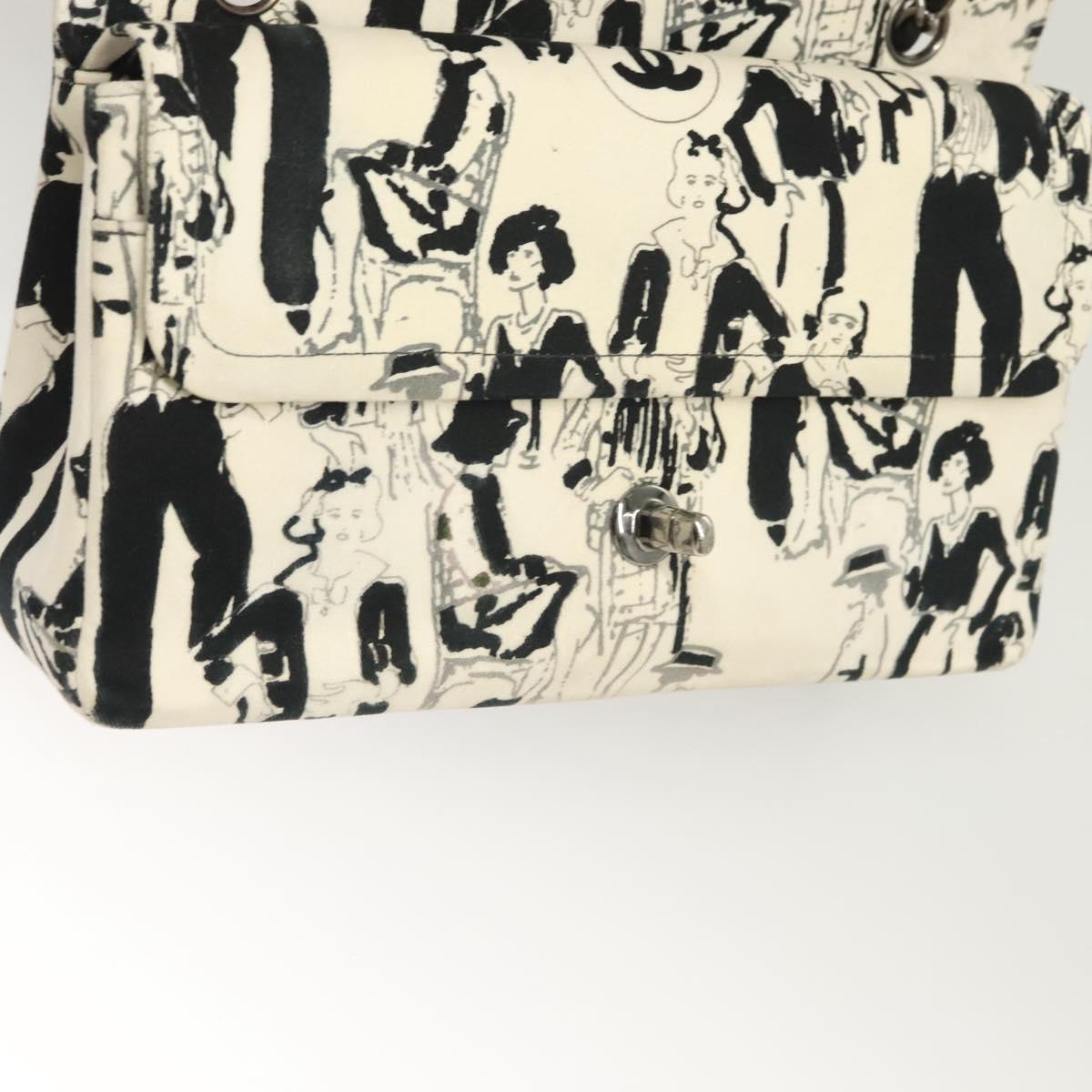 CHANEL Matelasse 25 Double Flap Chain Bag Canvas White Silver CC Auth 126243SV