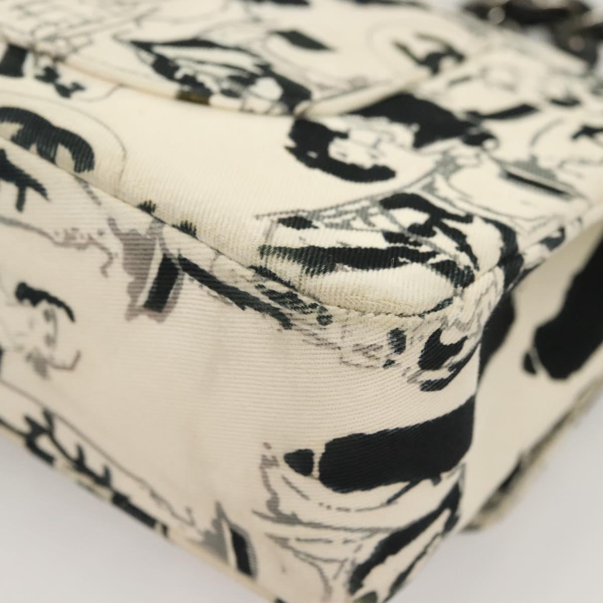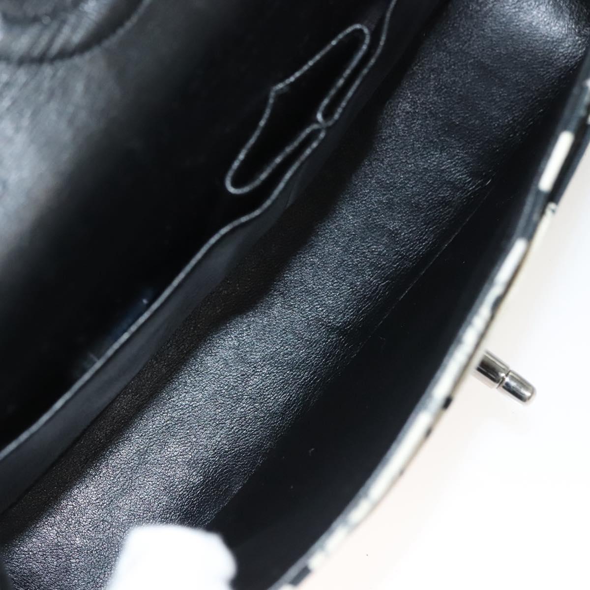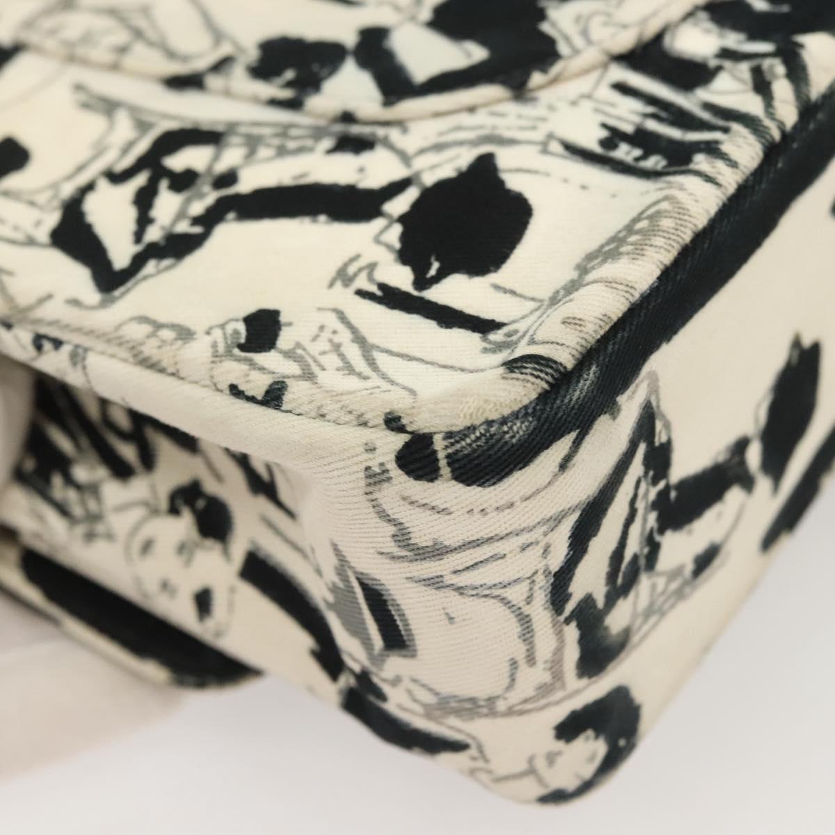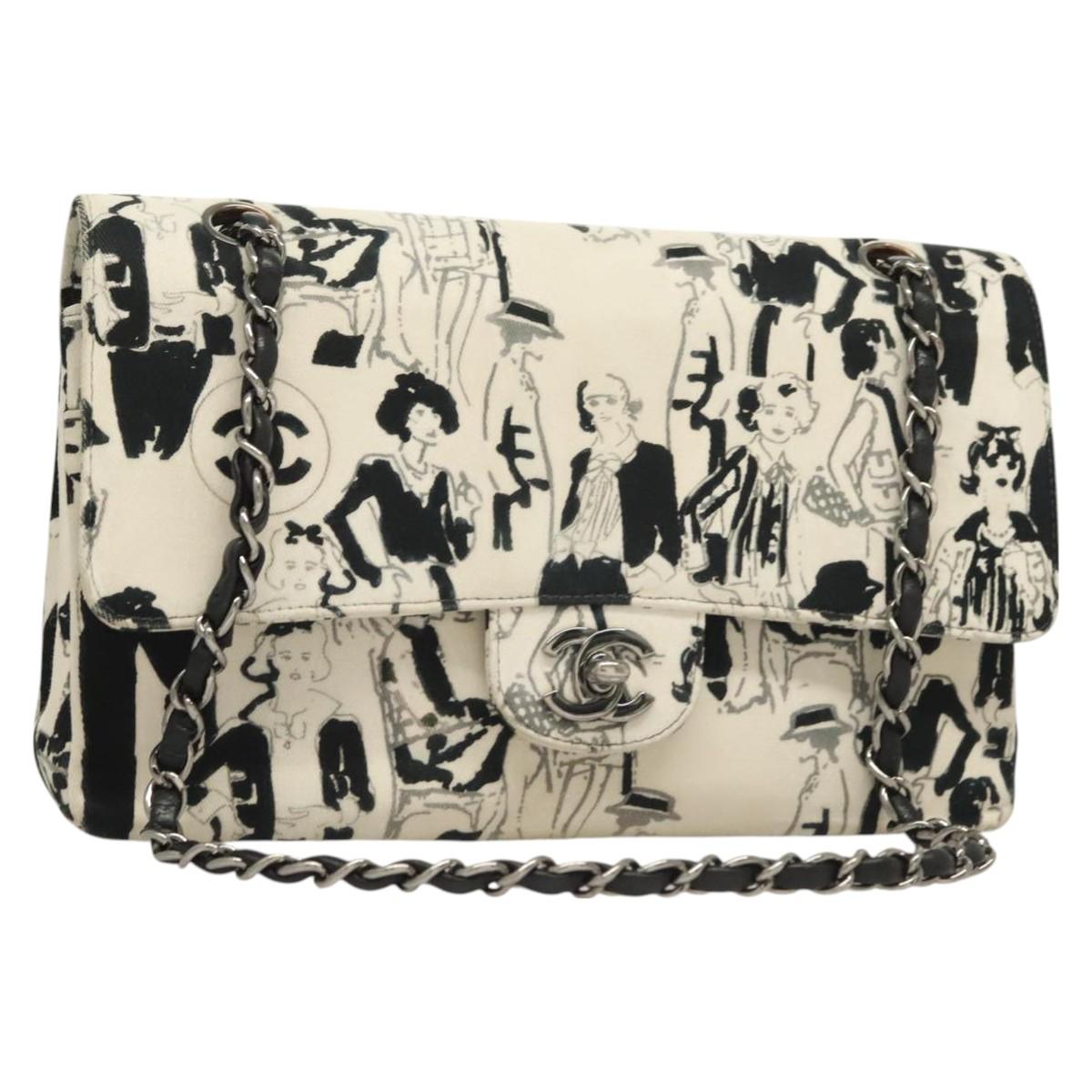 CHANEL Matelasse 25 Double Flap Chain Bag Canvas White Silver CC Auth 126243SV