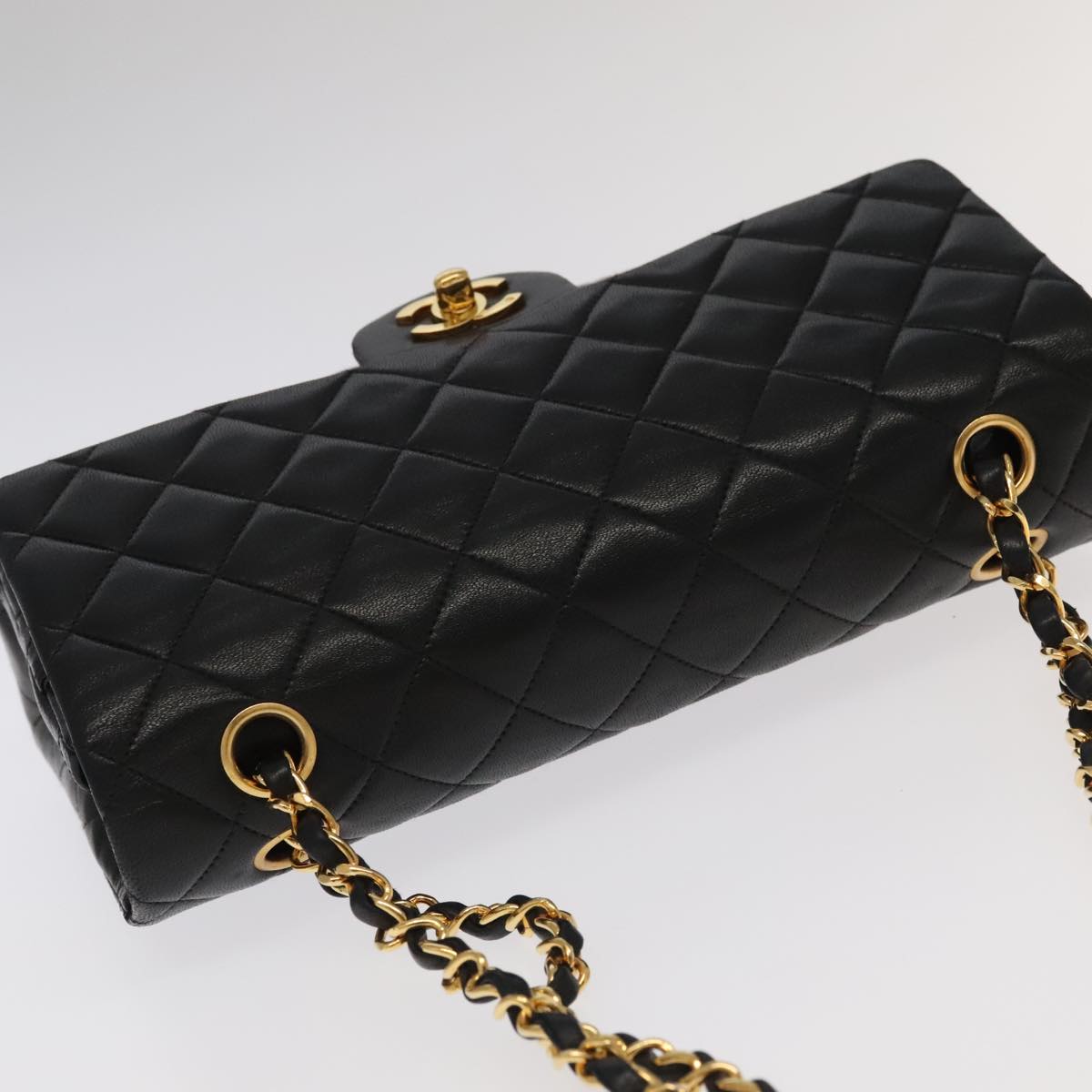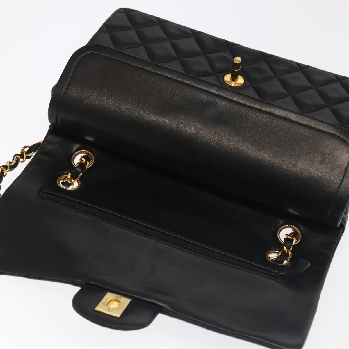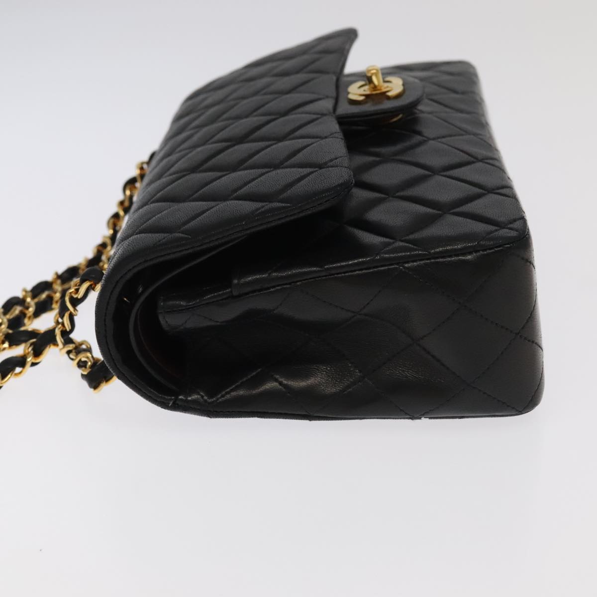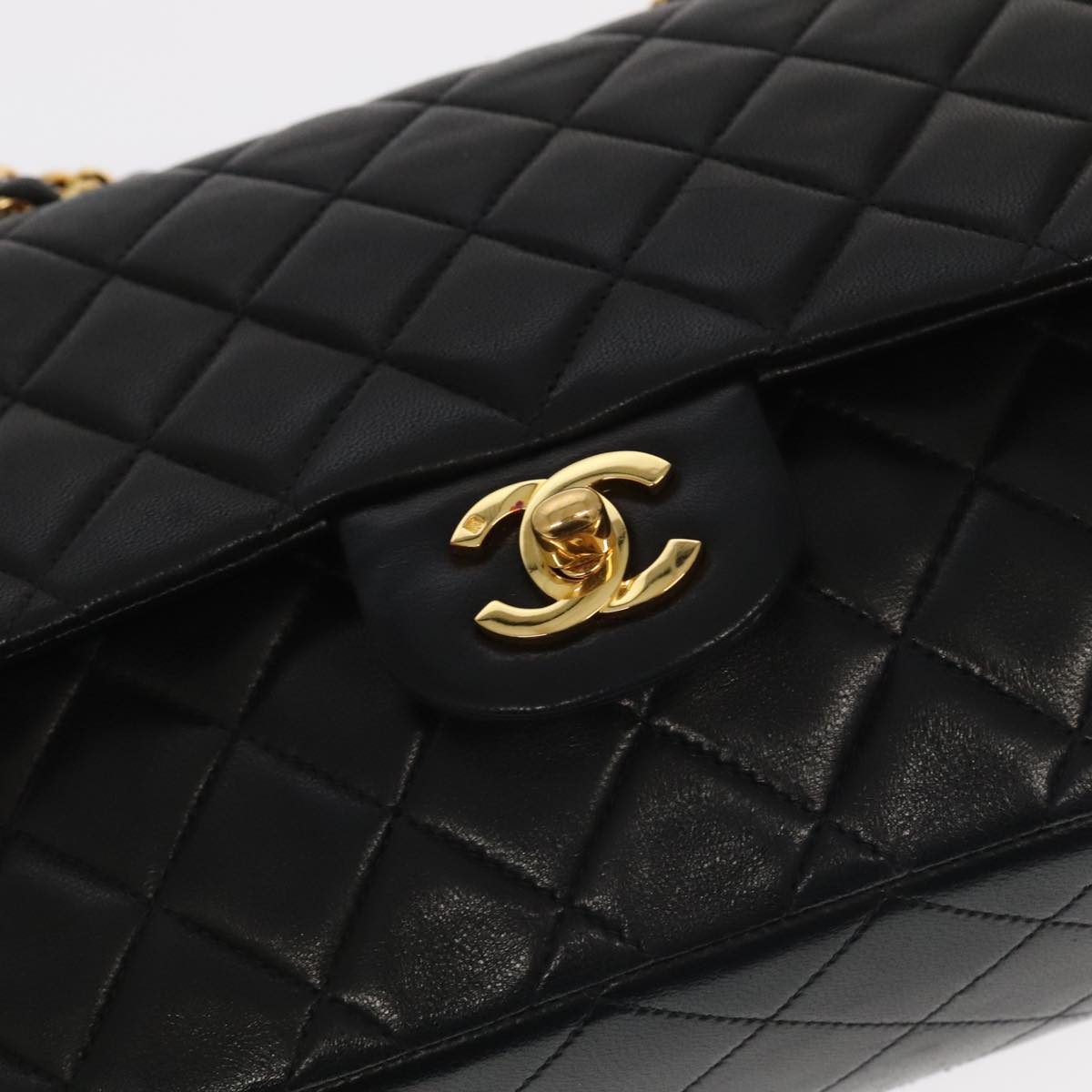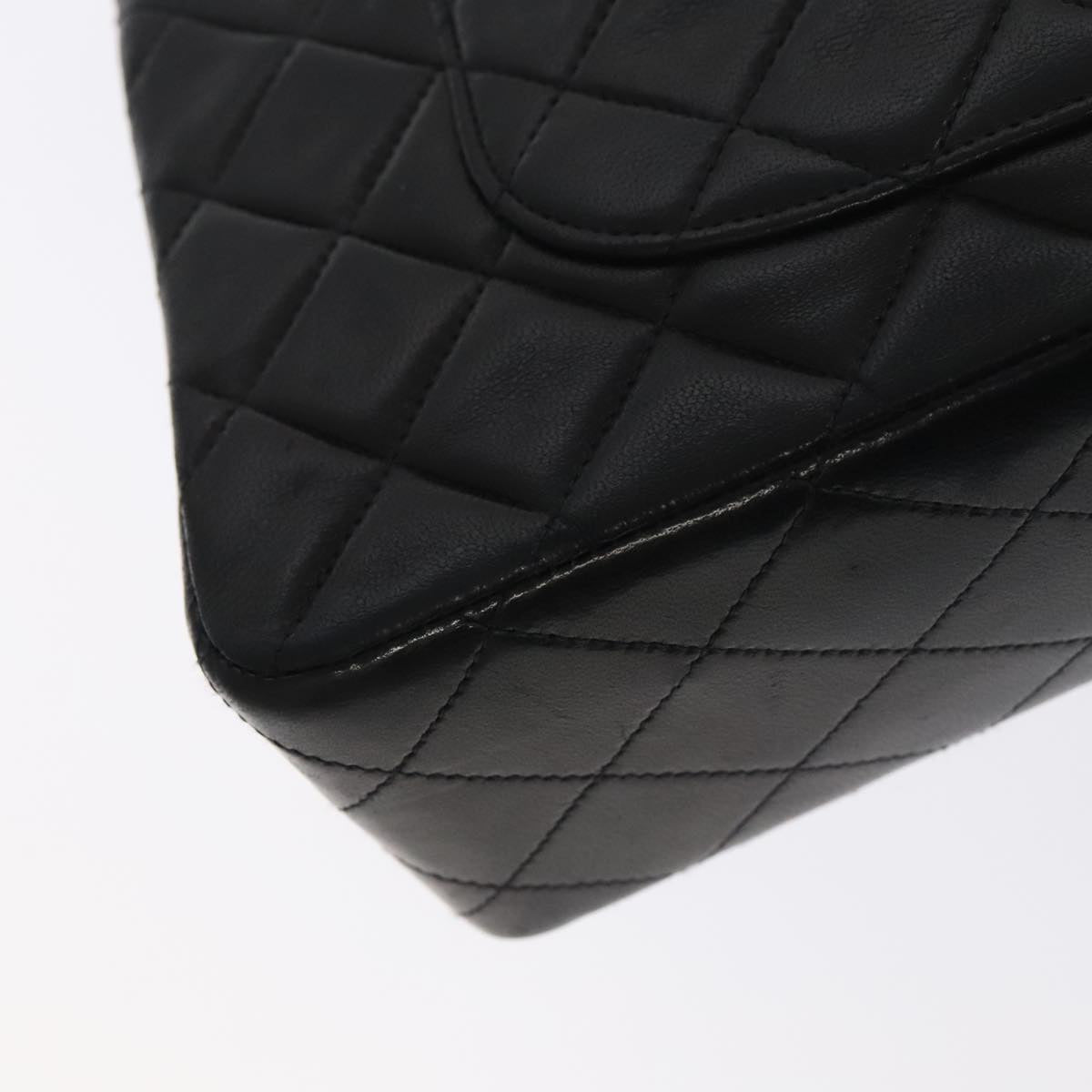 CHANEL Matelasse 25 Double Flap Hand Bag Lamb Skin Black Gold CC Auth yk16193AV