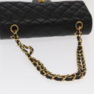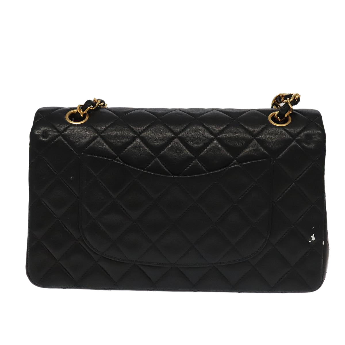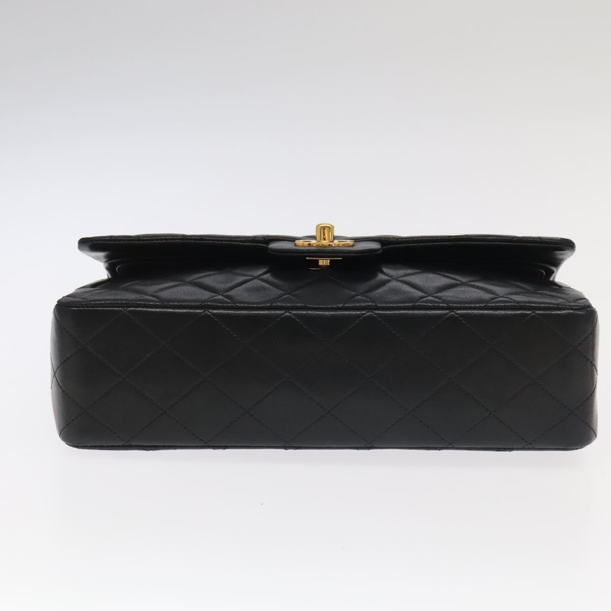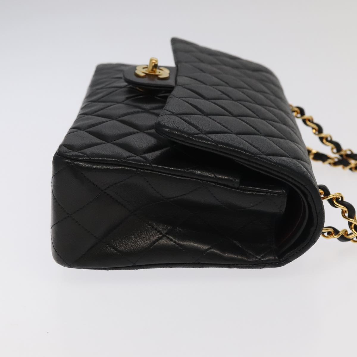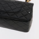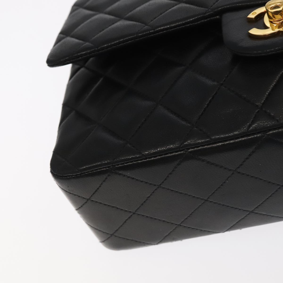 CHANEL Matelasse 25 Double Flap Hand Bag Lamb Skin Black Gold CC Auth yk16193AV