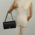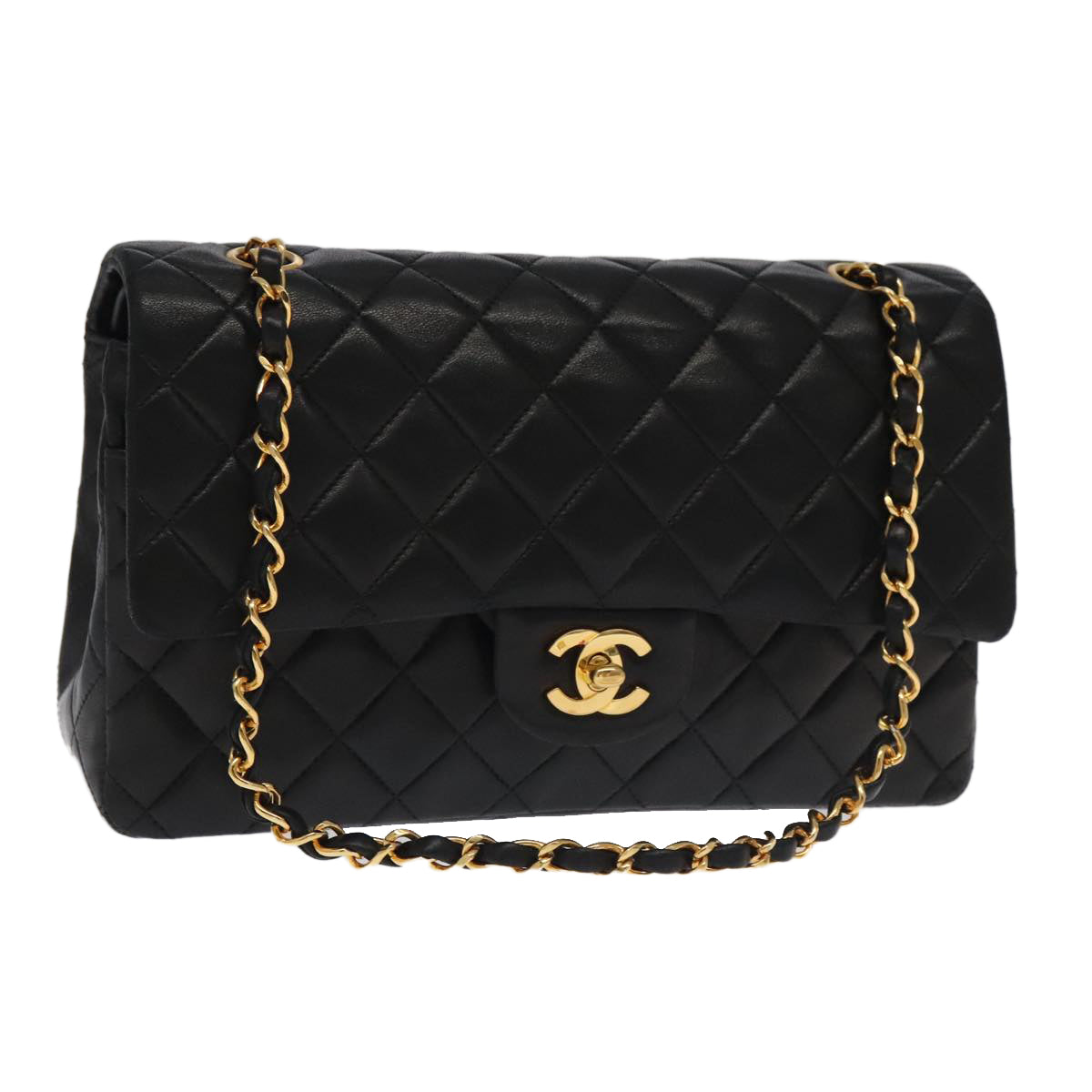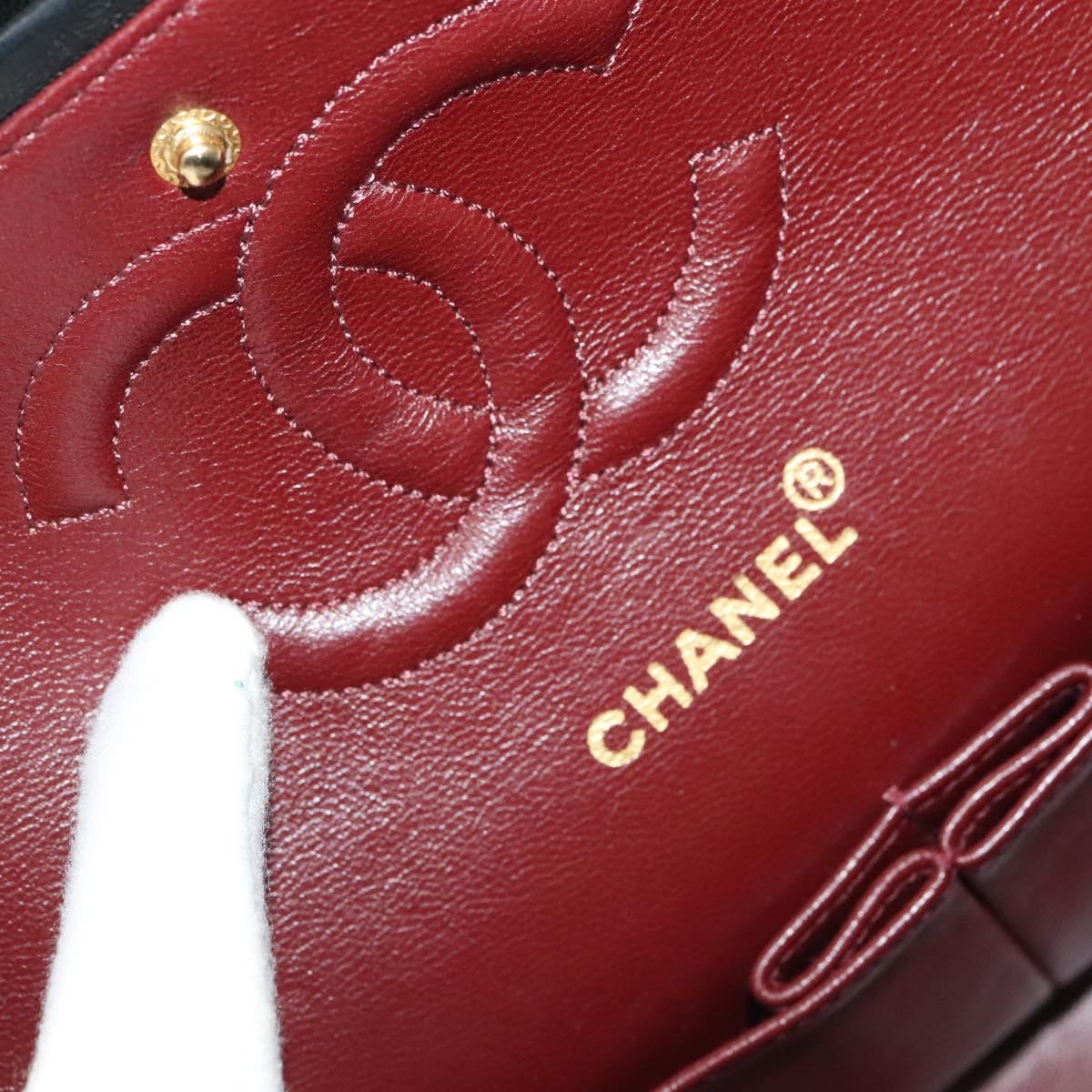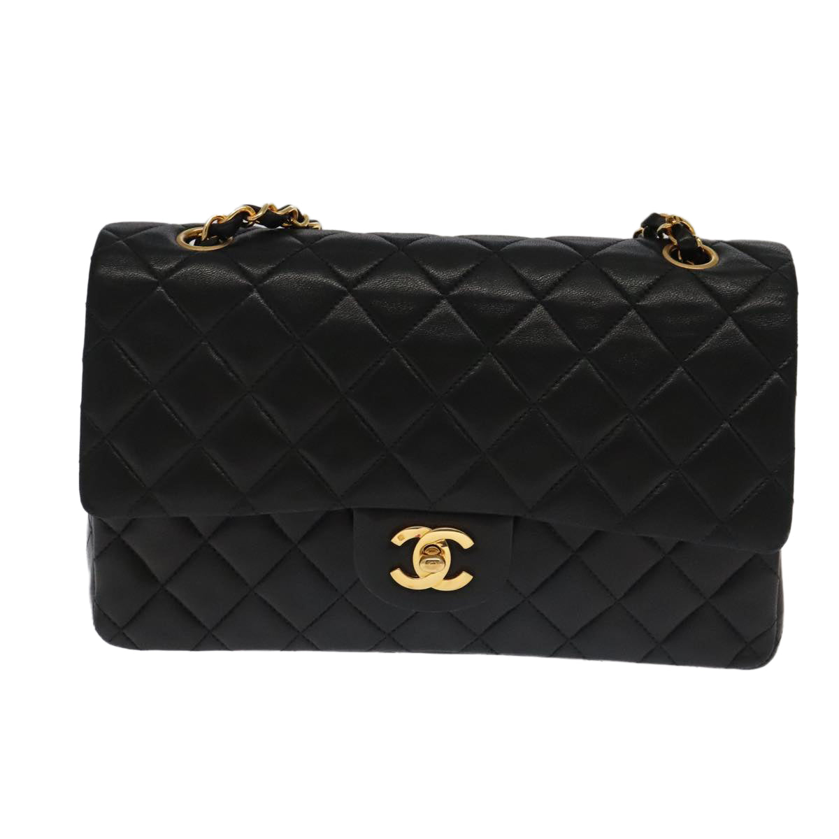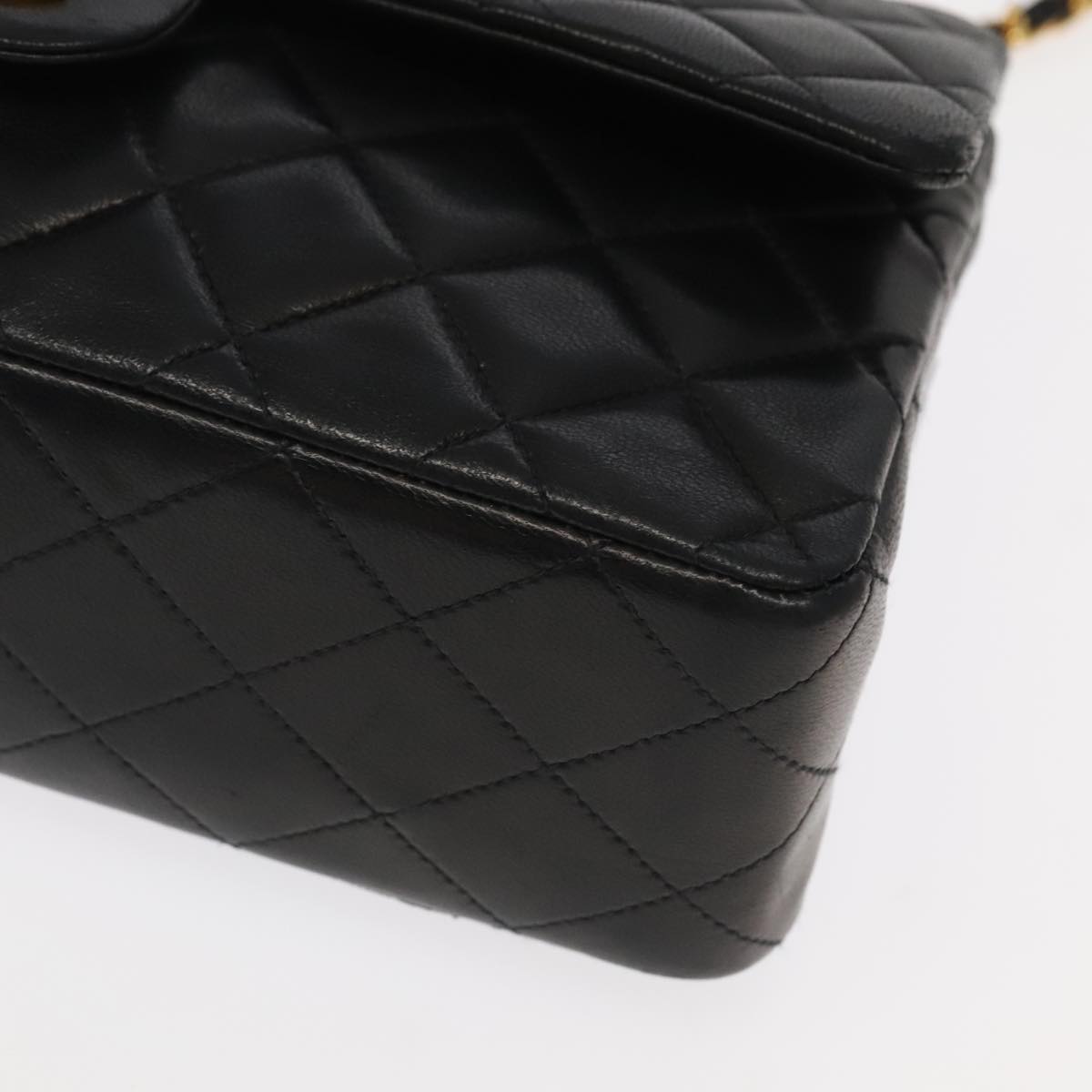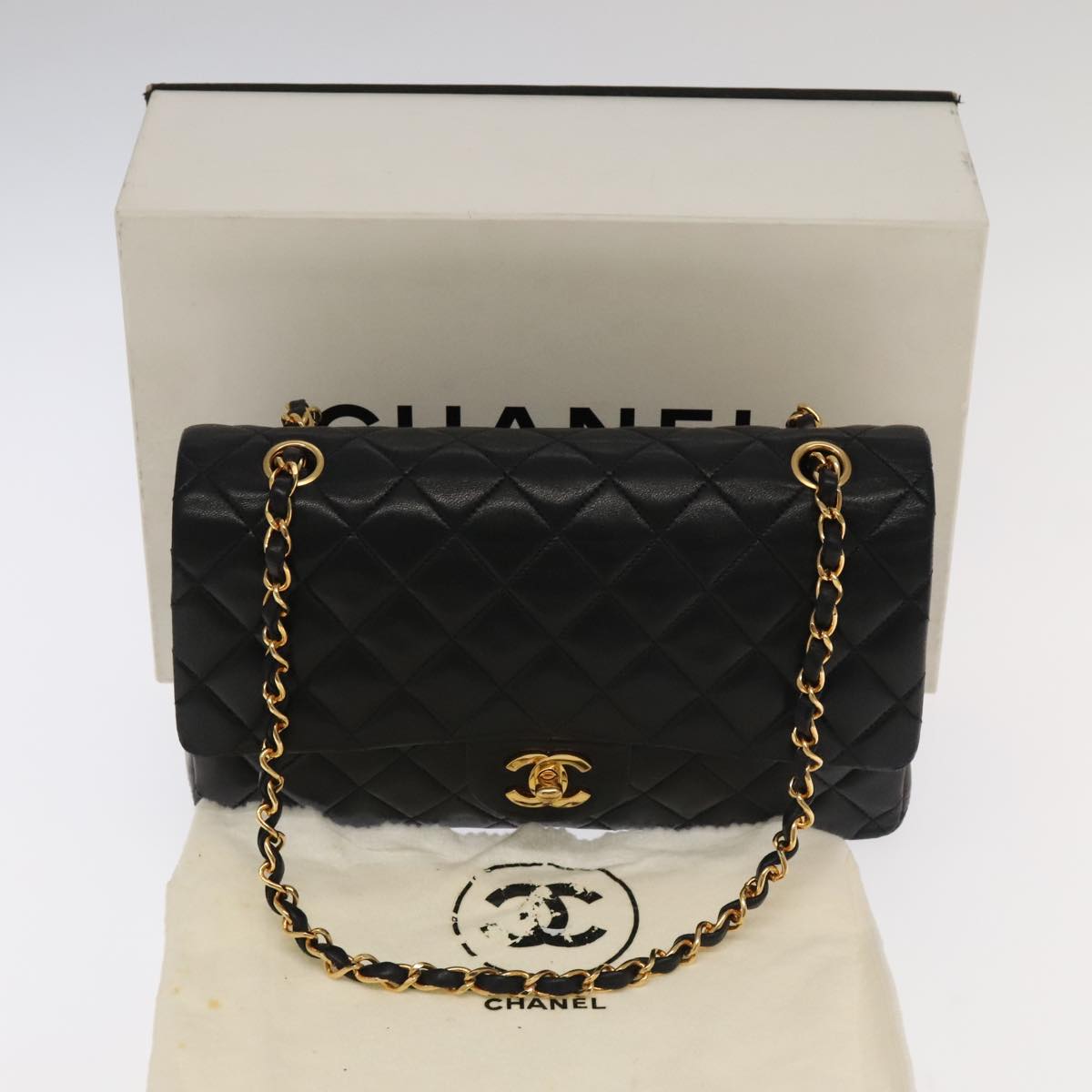 CHANEL Matelasse 25 Double Flap Hand Bag Lamb Skin Black Gold CC Auth yk16193AV