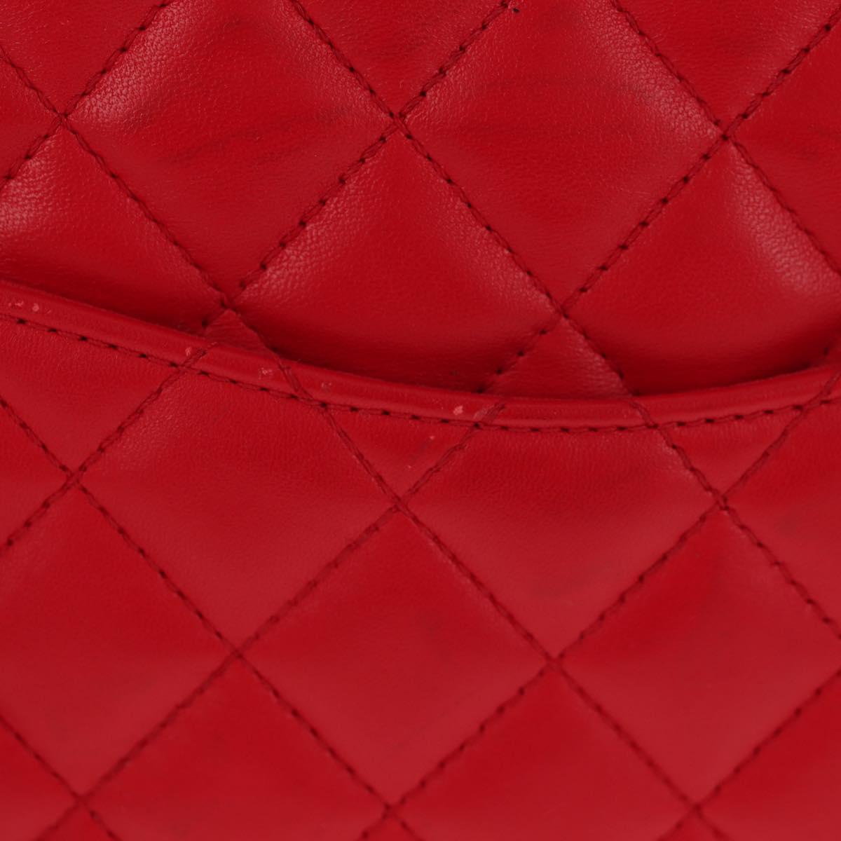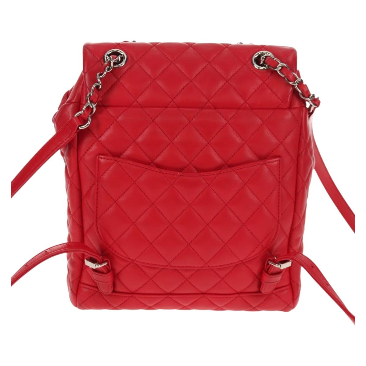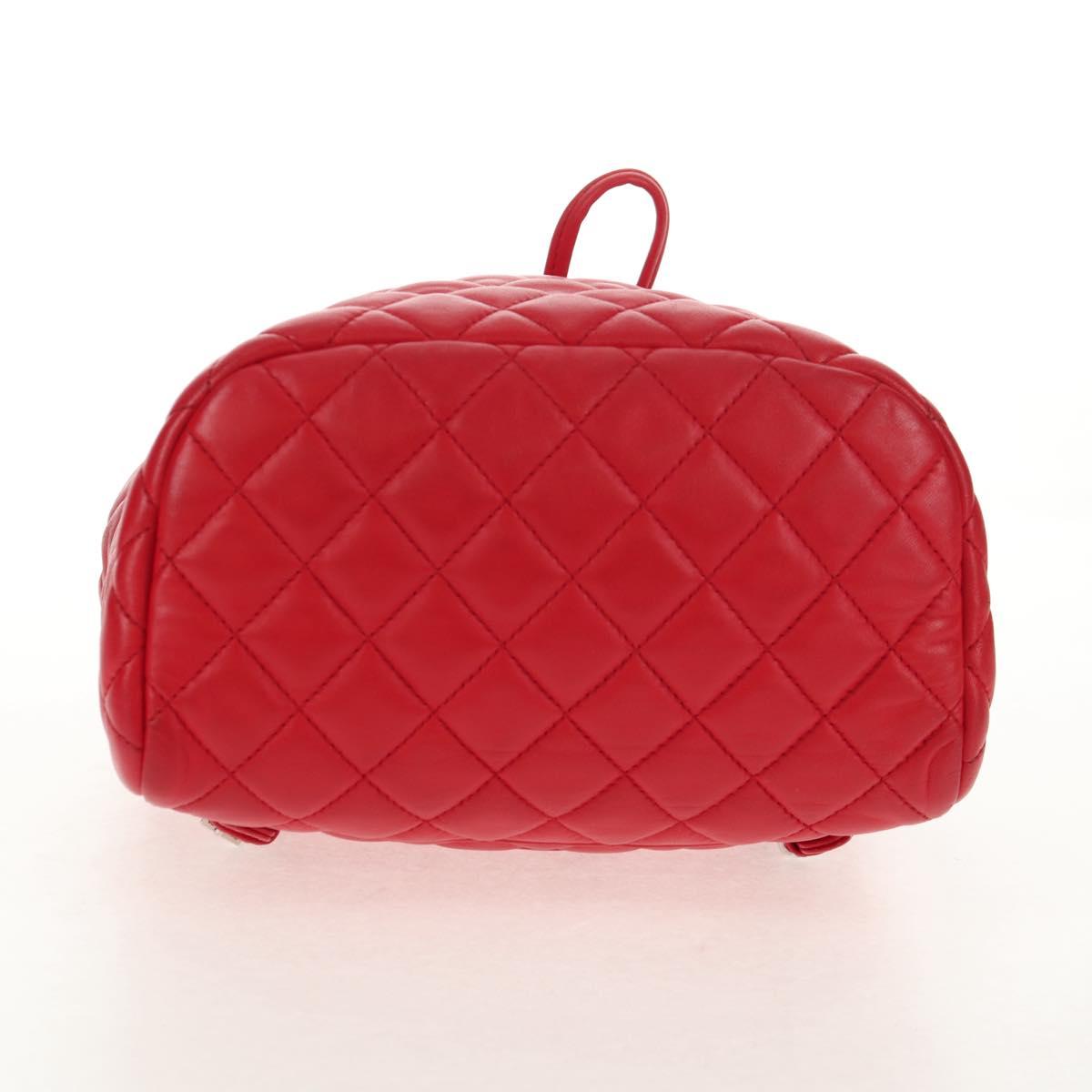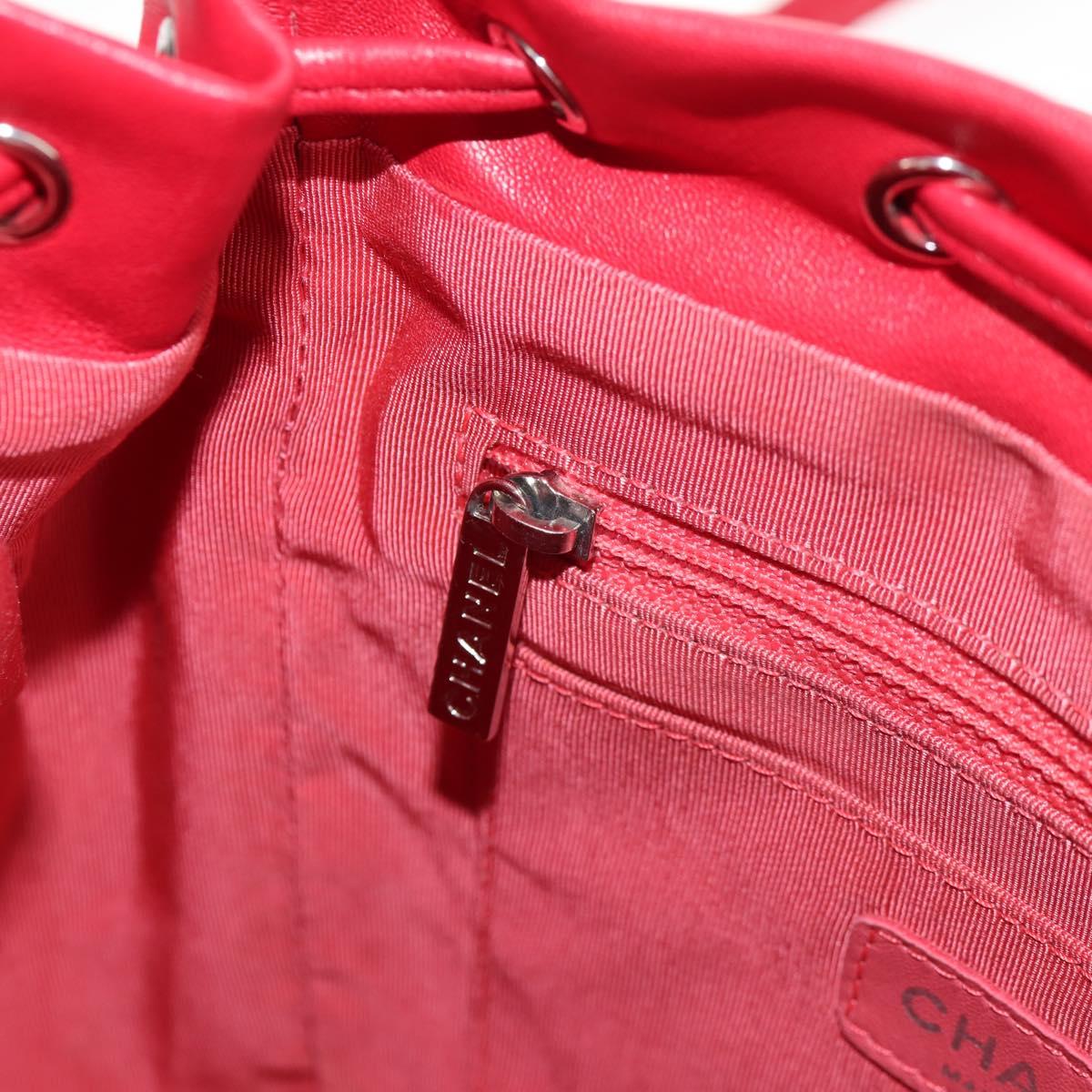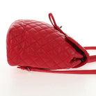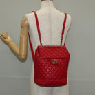 CHANEL Matelasse Backpack Lamb Skin Red Silver CC Auth 145253M