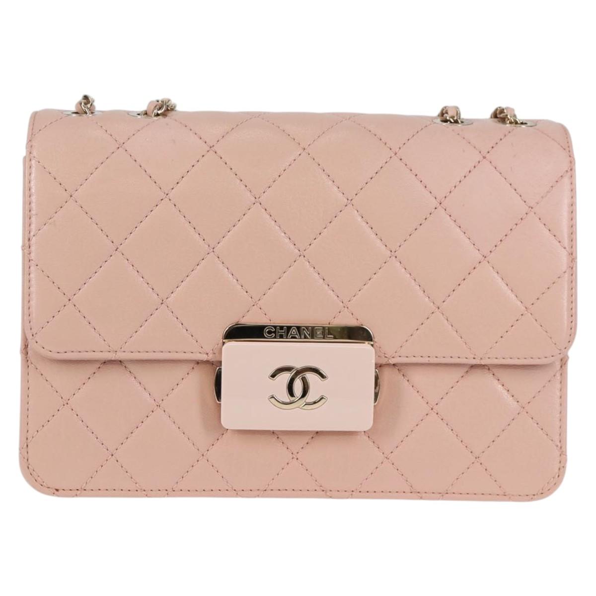 CHANEL Matelasse Beauty Rock Chain Bag Leather Pink Gold CC Auth hk2930M