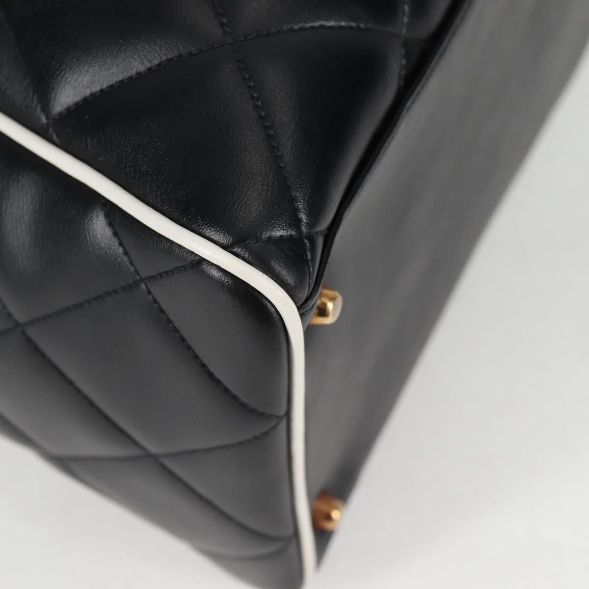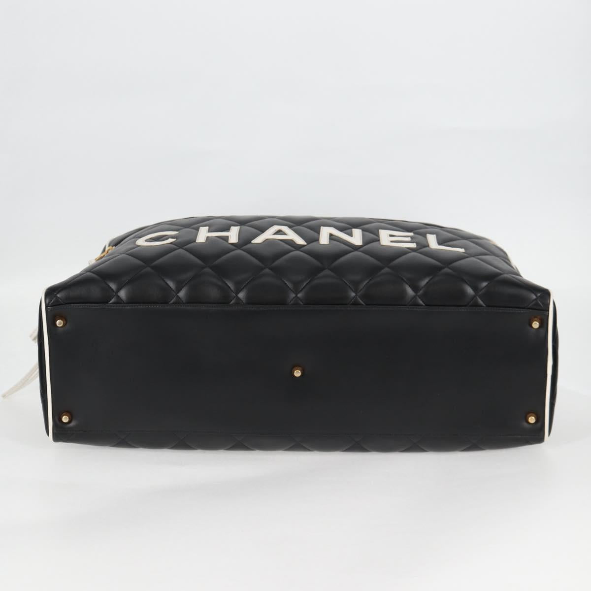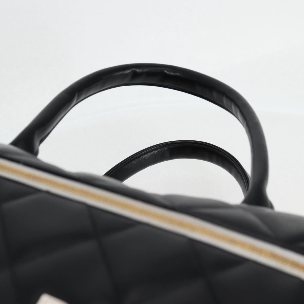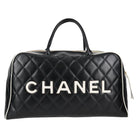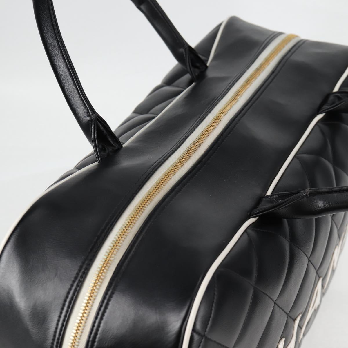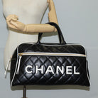 CHANEL Matelasse Boston Bag Calf Skin Black CC Auth 127925V