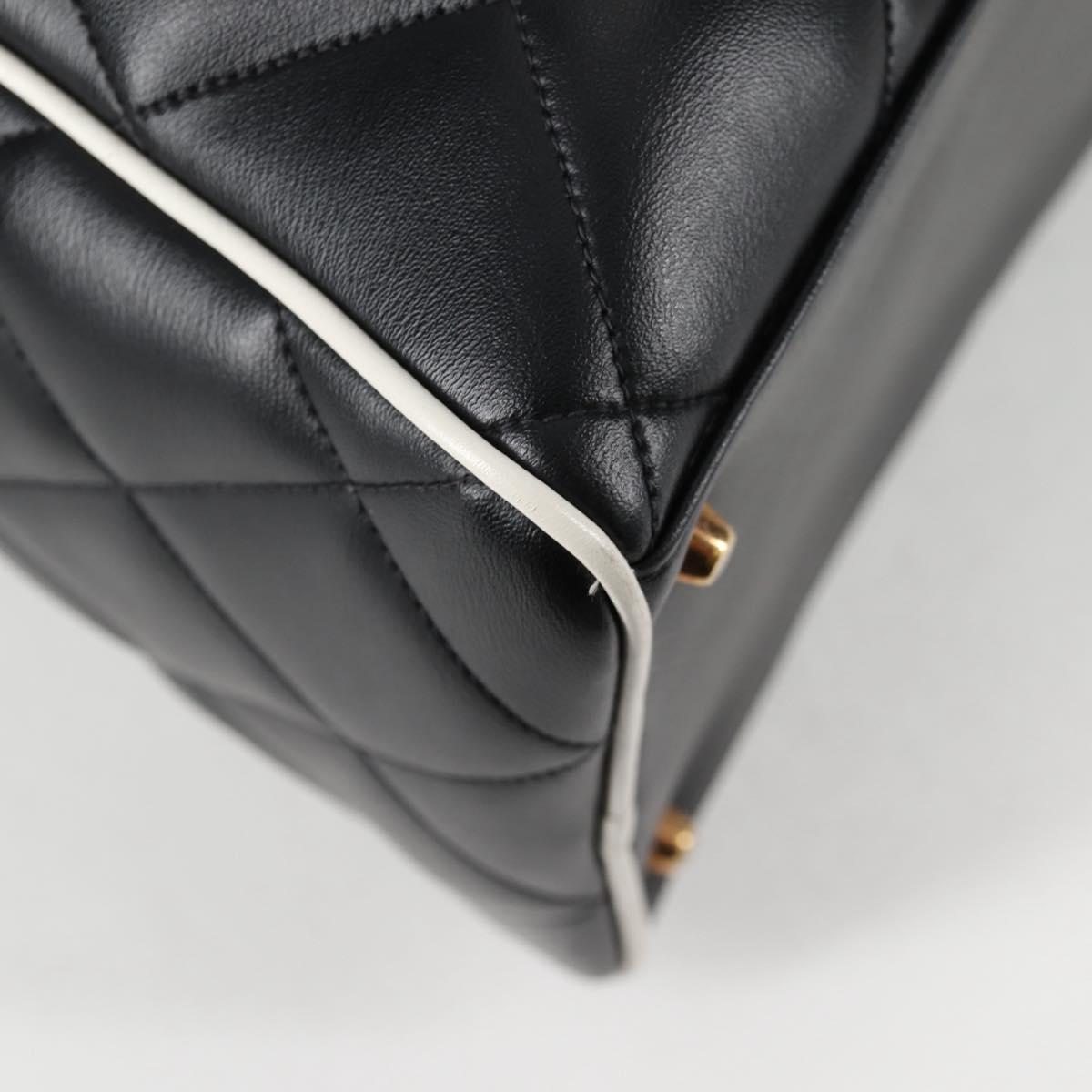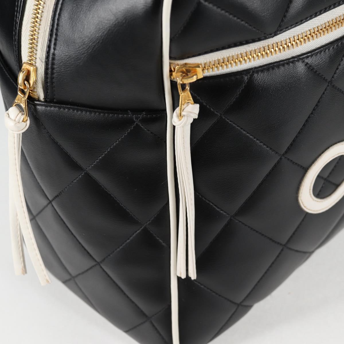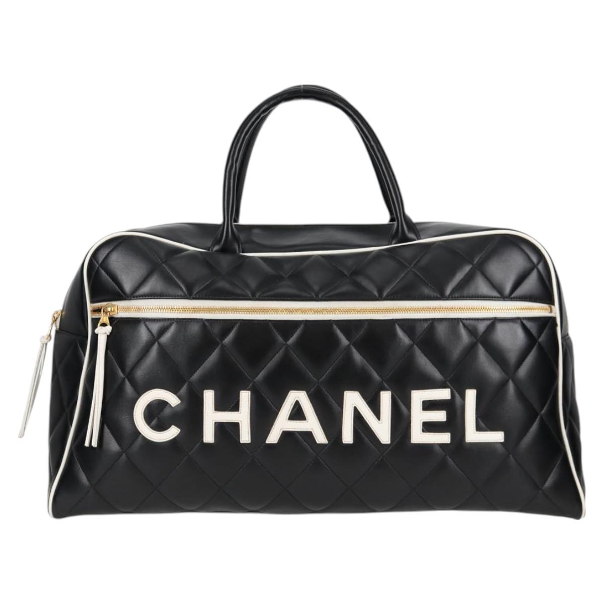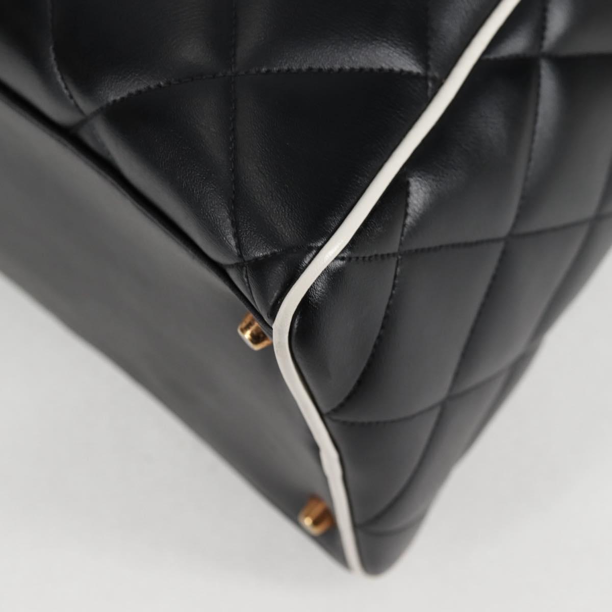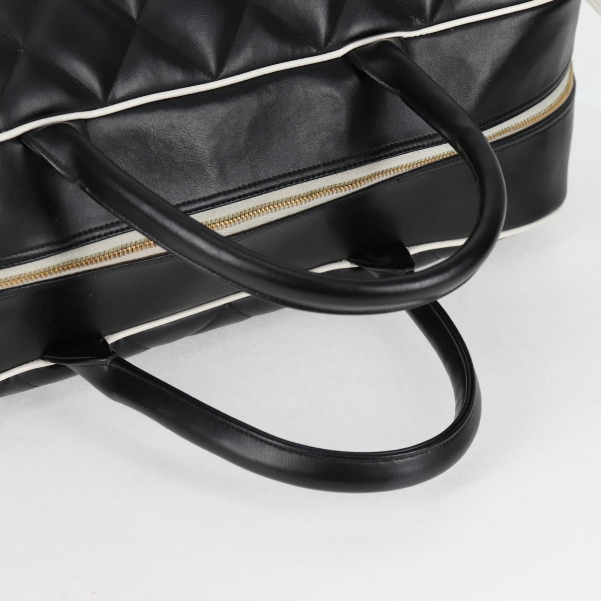 CHANEL Matelasse Boston Bag Calf Skin Black CC Auth 127925V