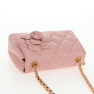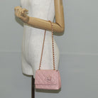 CHANEL Matelasse Camellia Chain Shoulder Bag Leather Pink Gold CC Auth 144882V