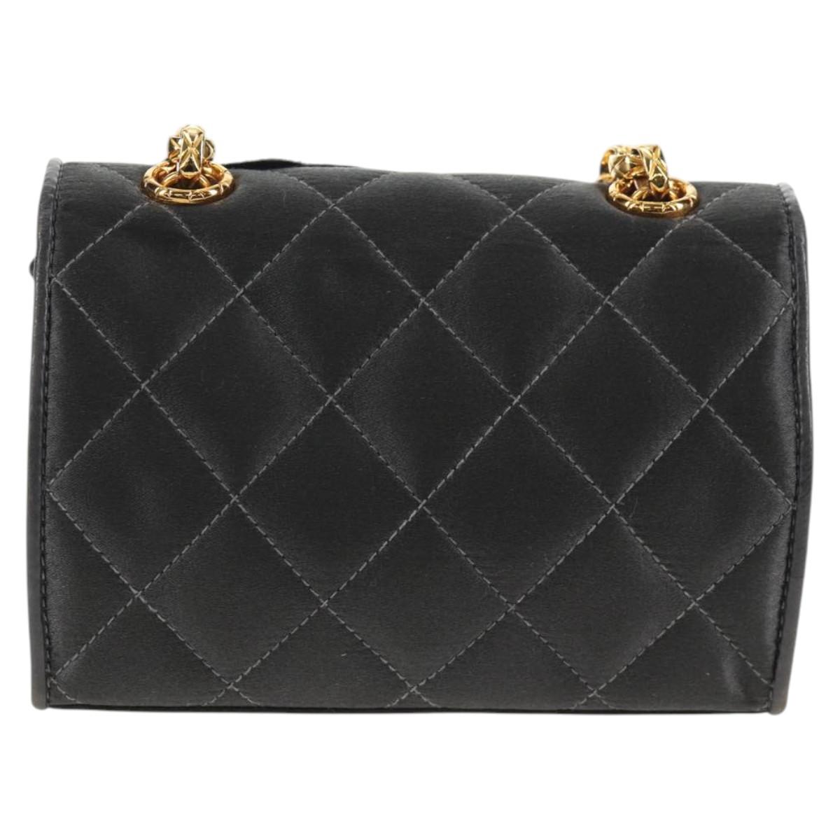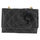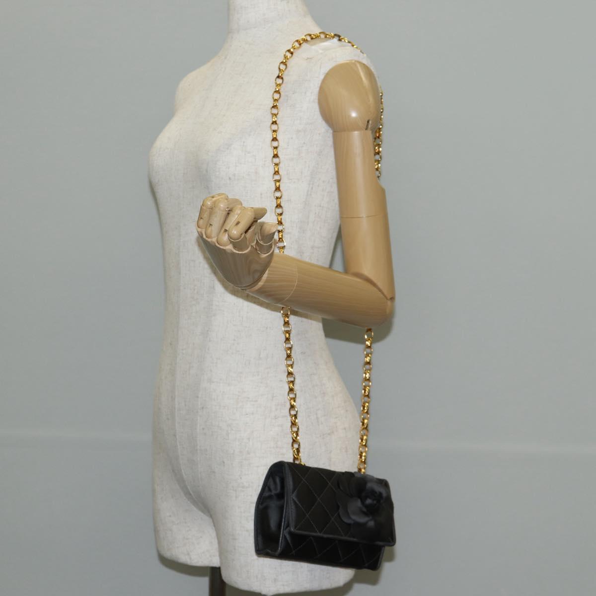 CHANEL Matelasse Camellia Chain Shoulder Bag Satin Gray Gold CC Auth 143981V