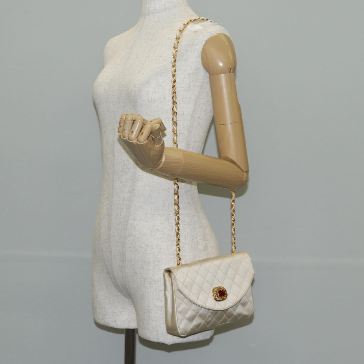 CHANEL Matelasse Chain Gribois Shoulder Bag Satin Gold CC Auth 142689V