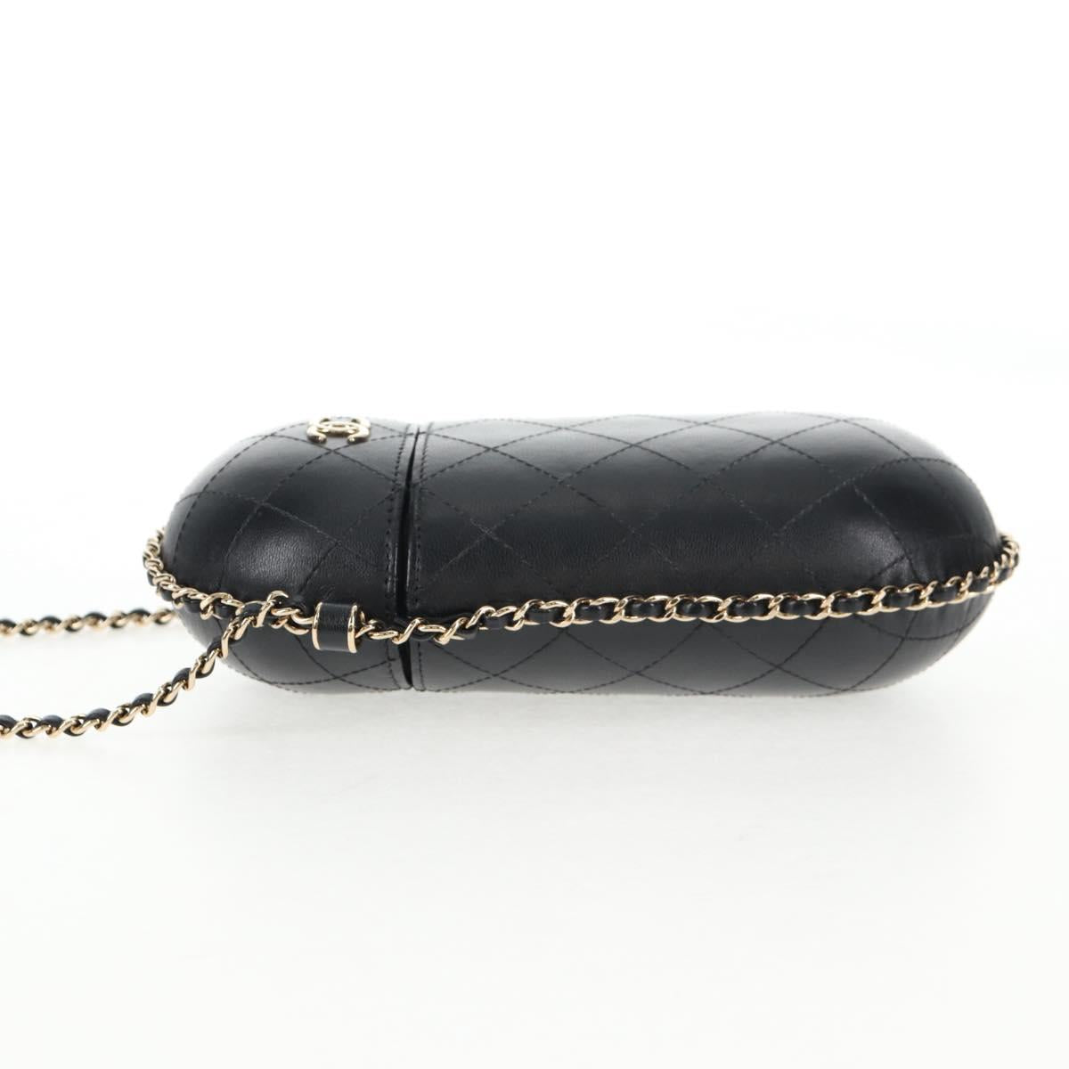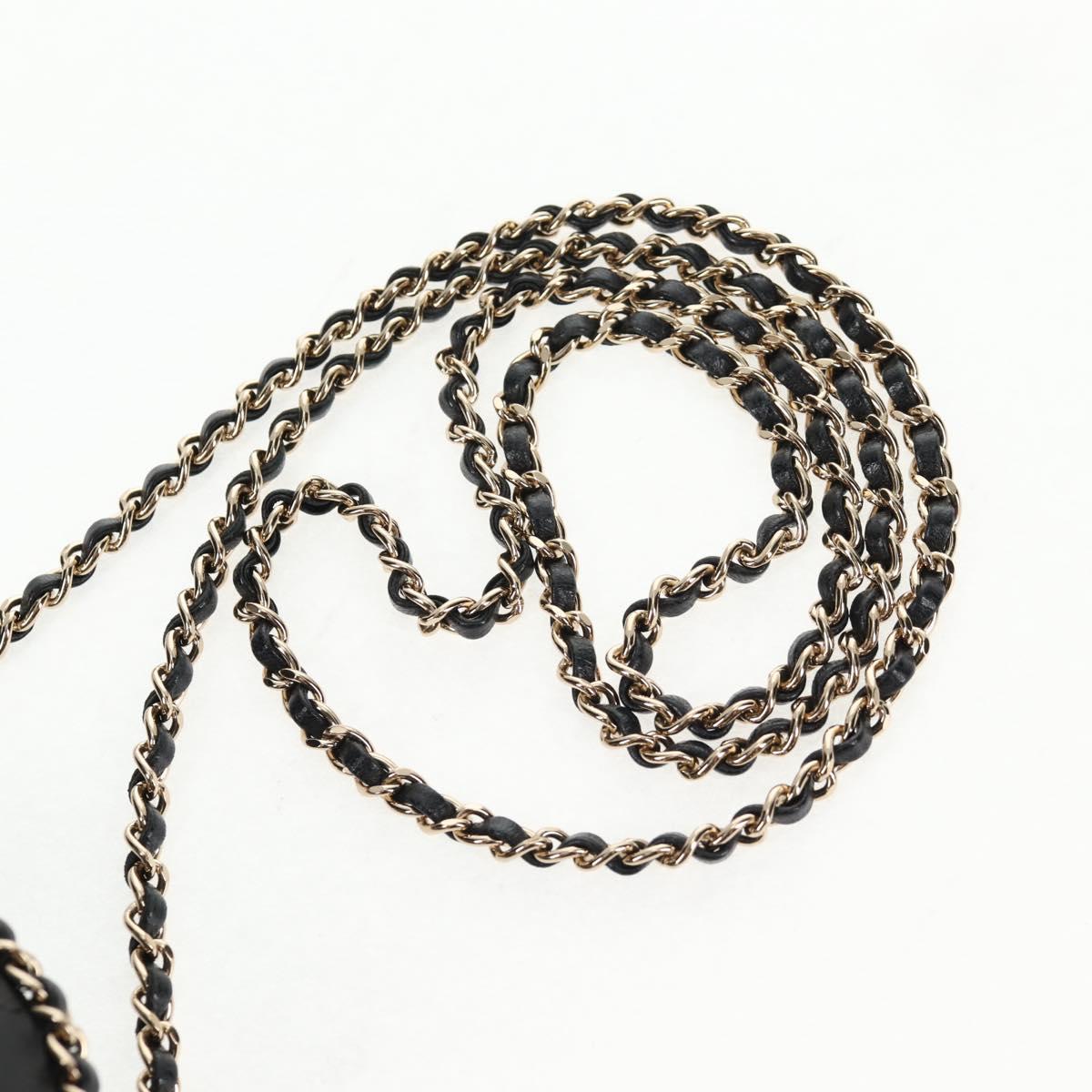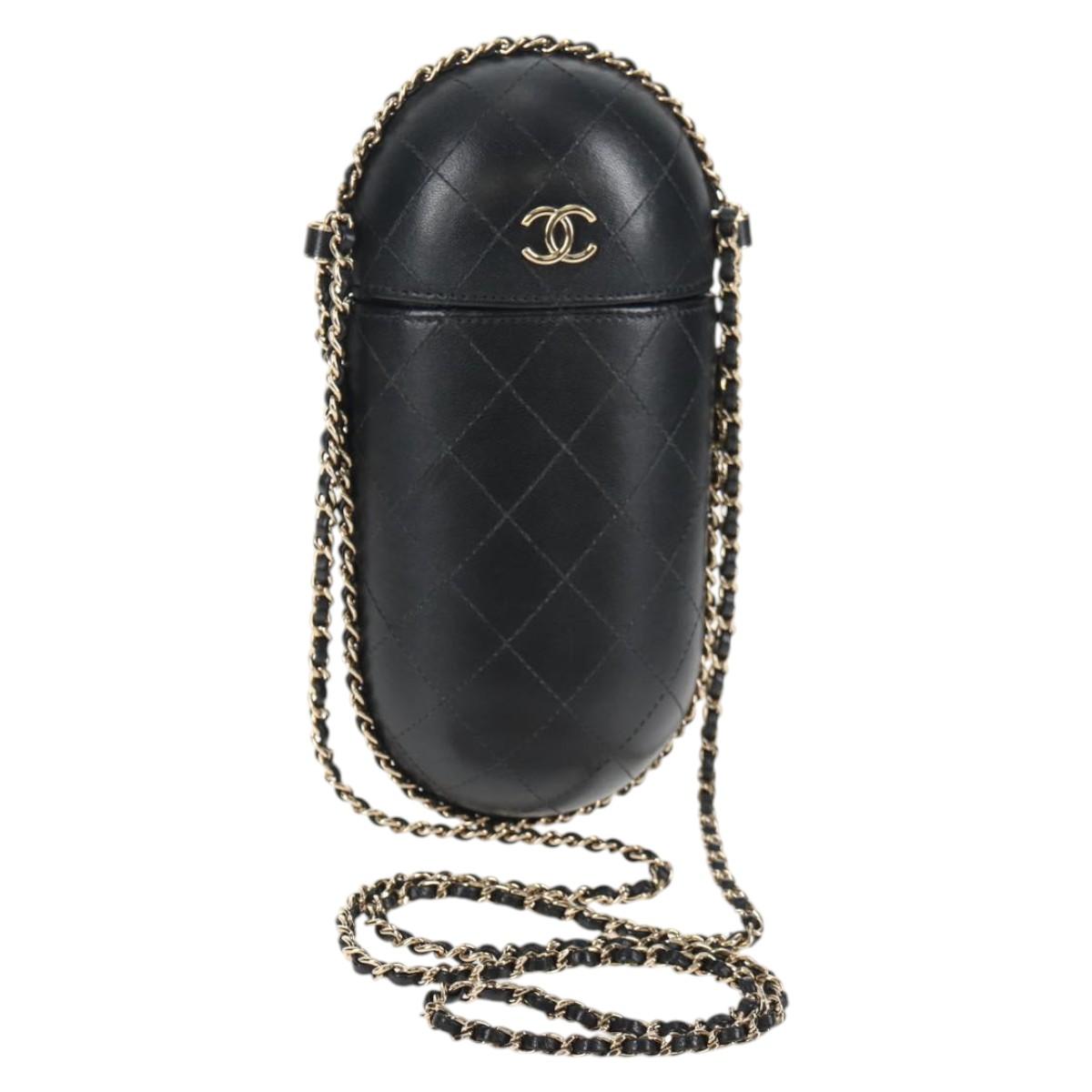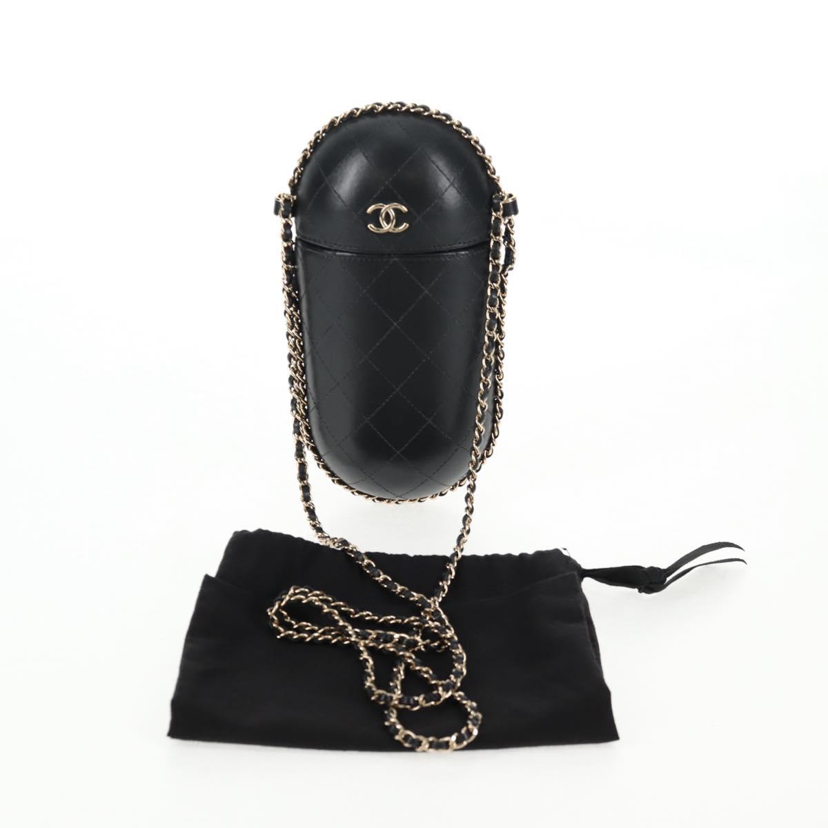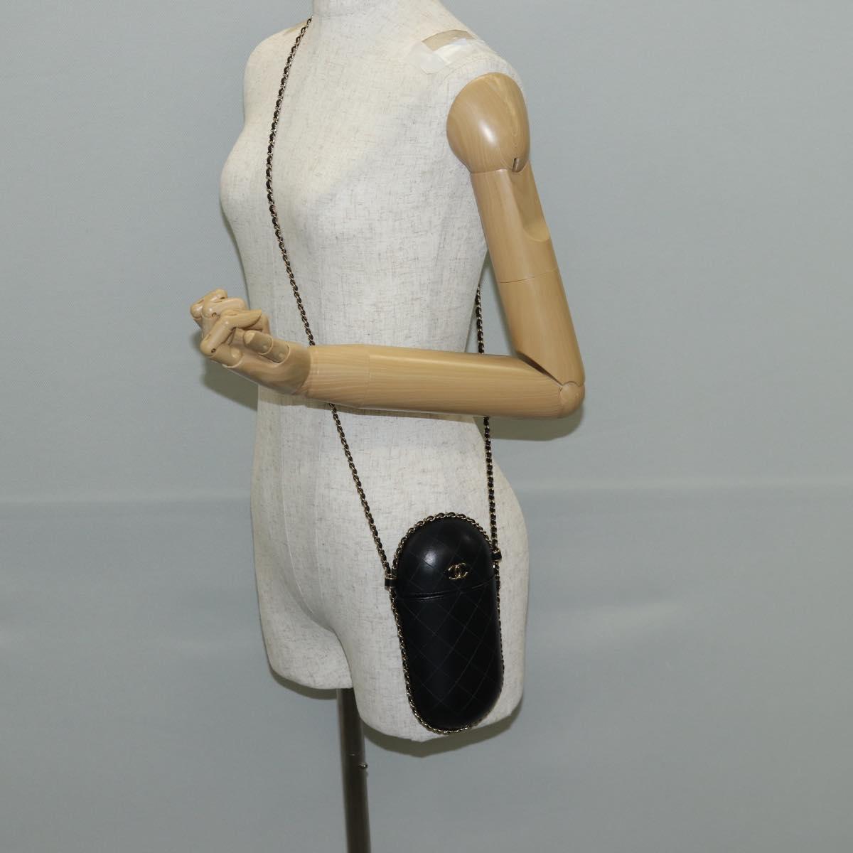 CHANEL Matelasse Chain Phone Case Cell Lamb Skin Black Gold CC Auth 141452M