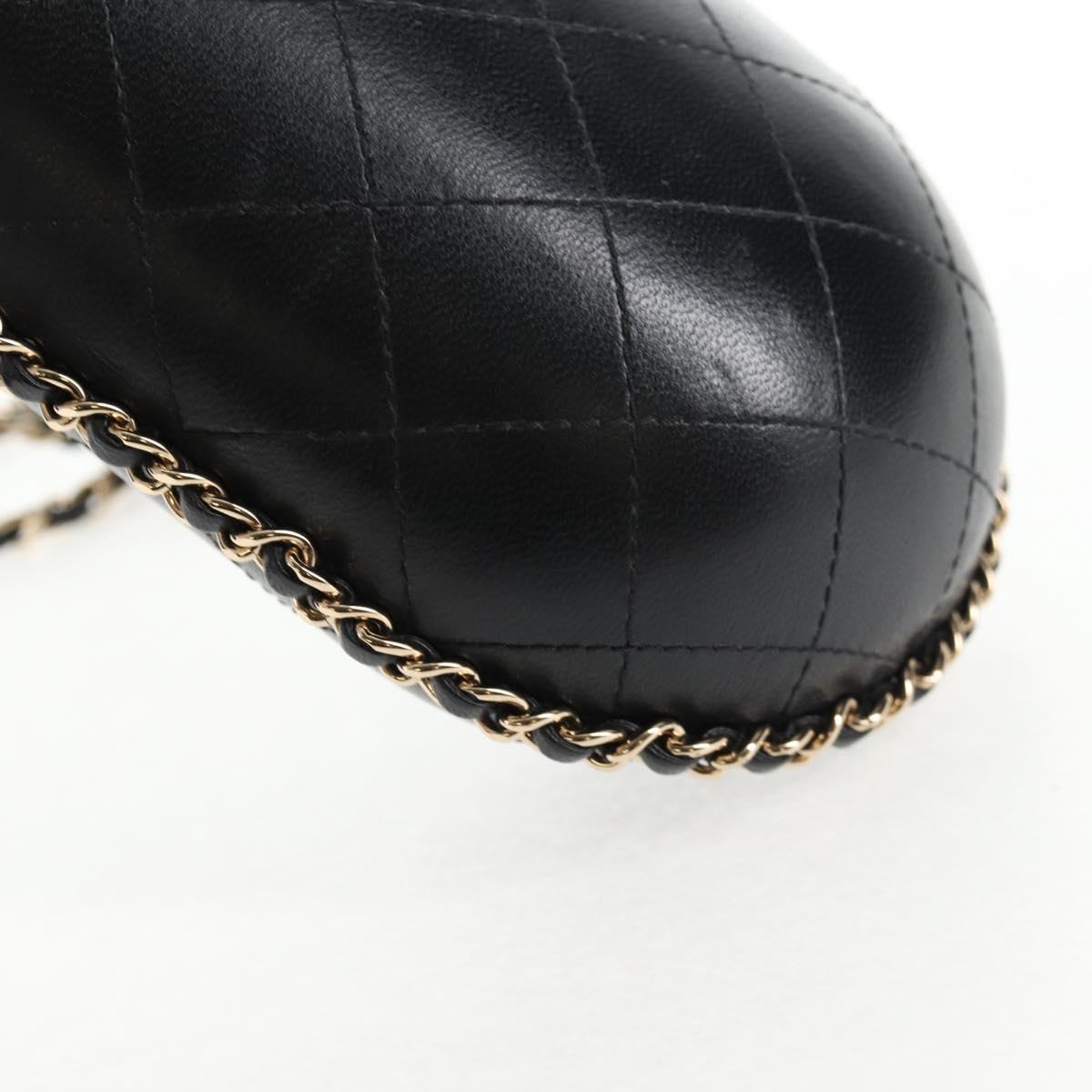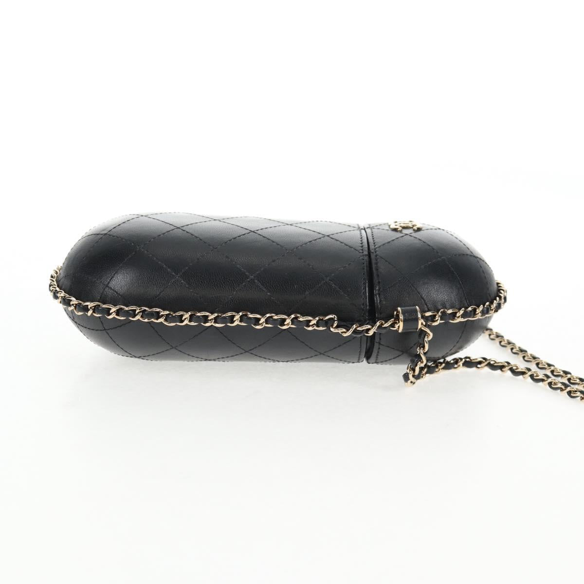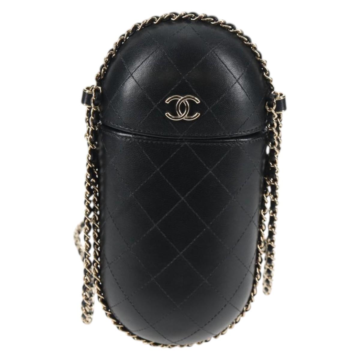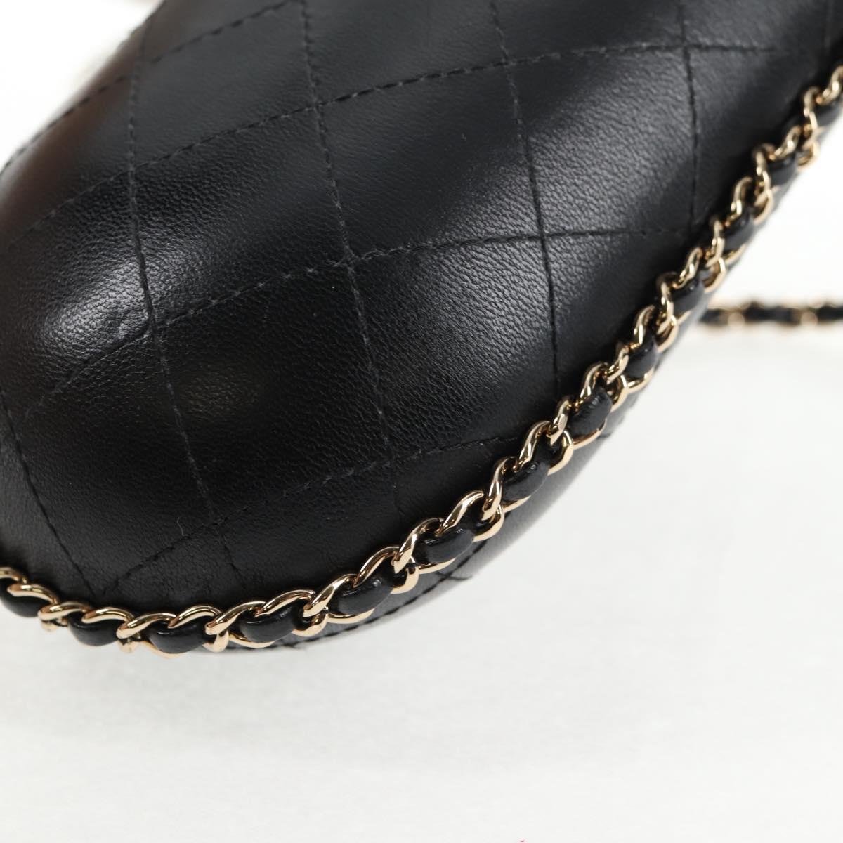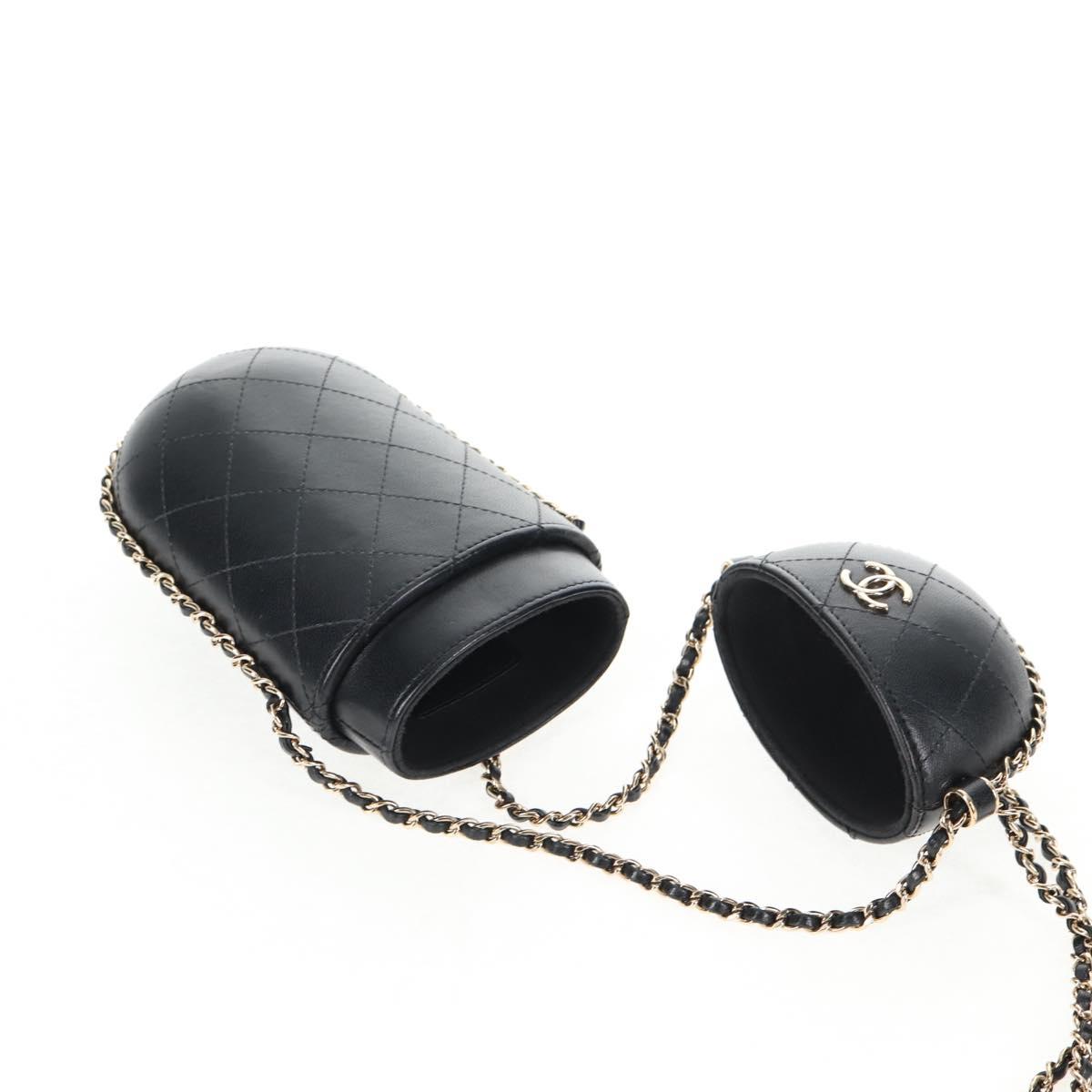 CHANEL Matelasse Chain Phone Case Cell Lamb Skin Black Gold CC Auth 141452M