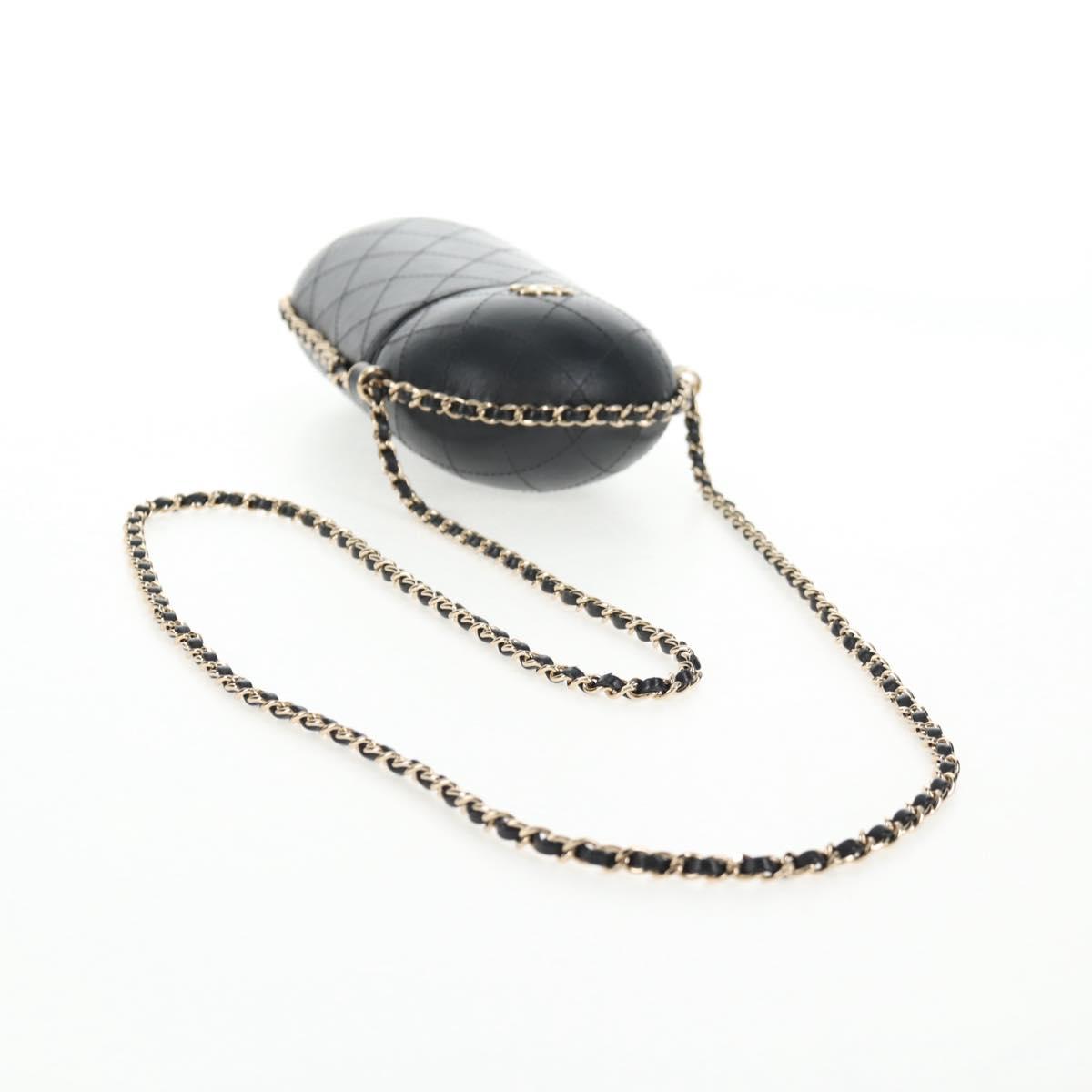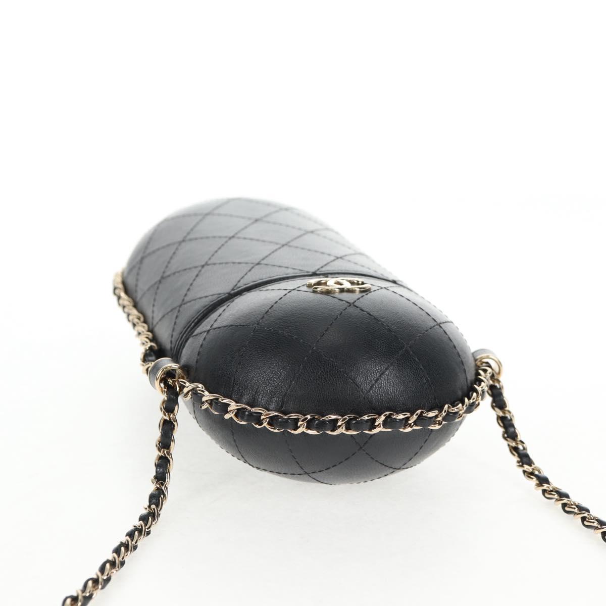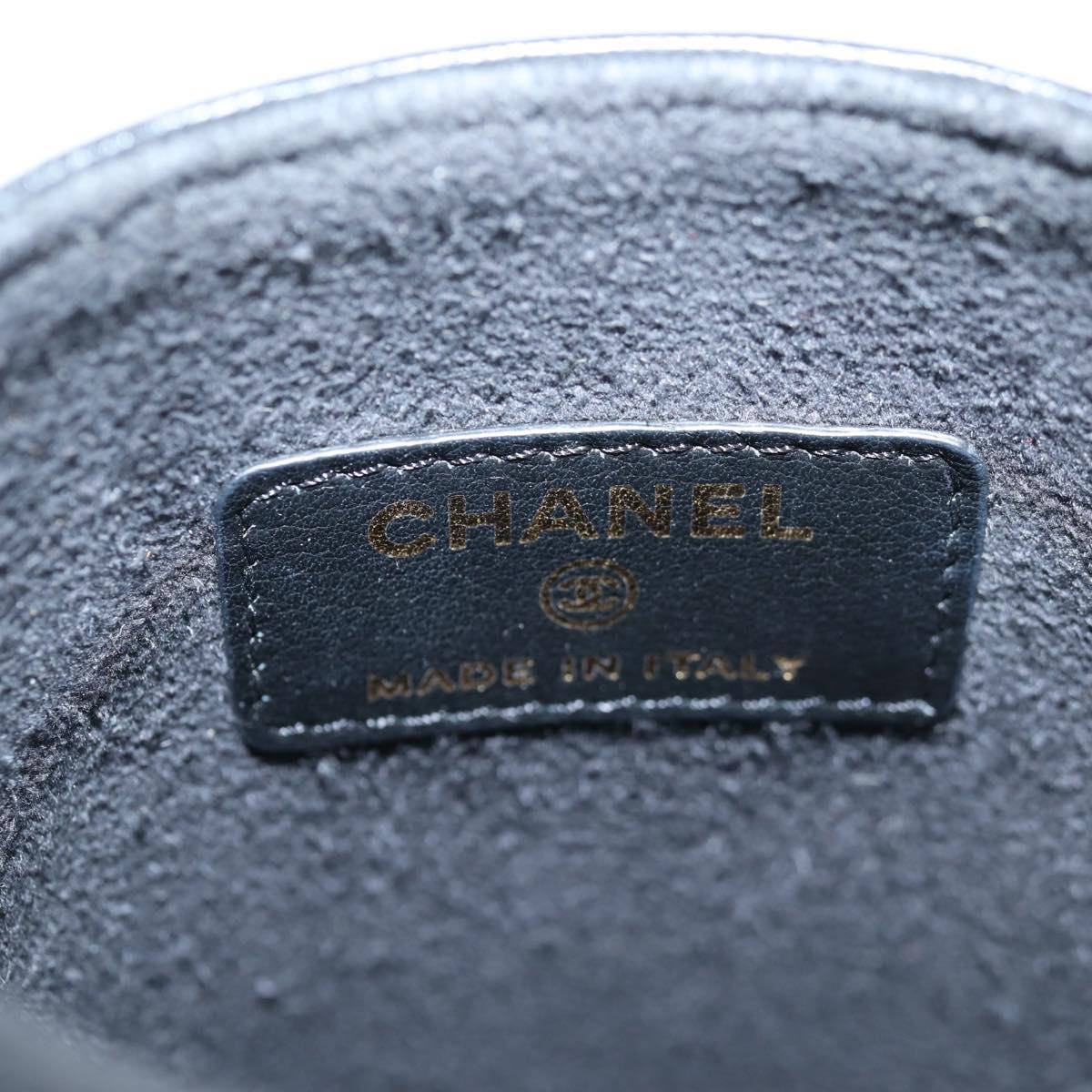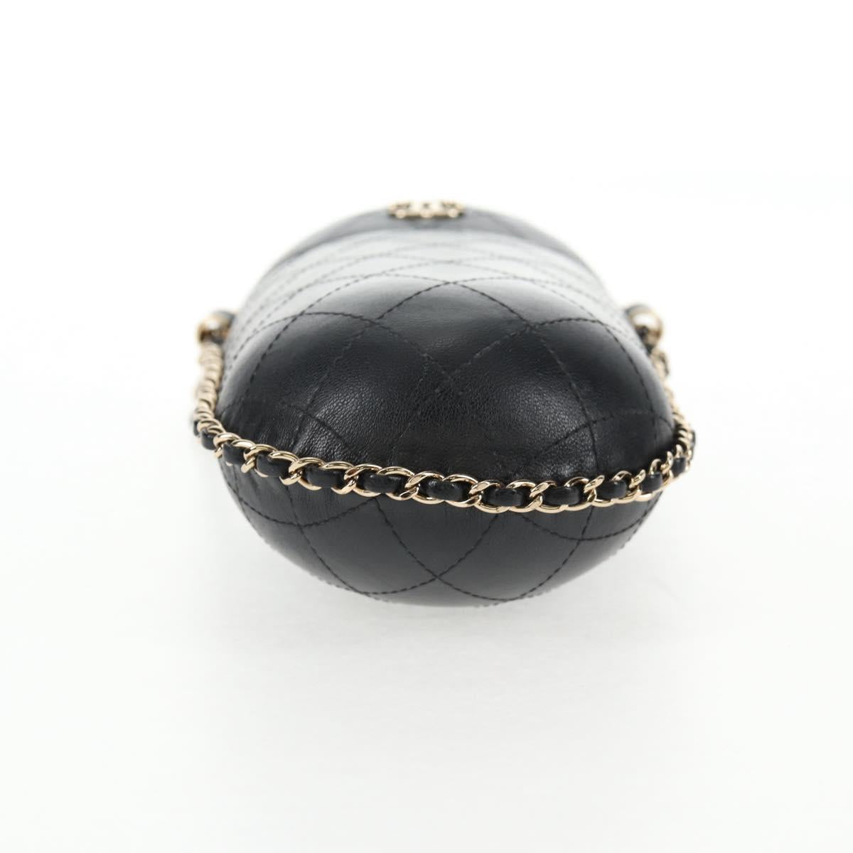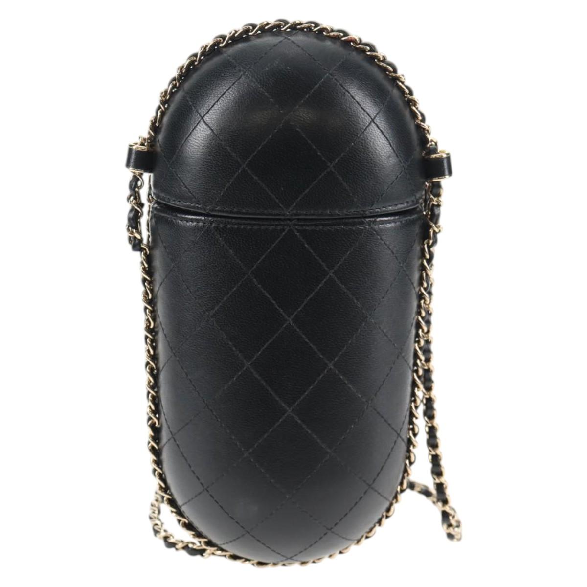 CHANEL Matelasse Chain Phone Case Cell Lamb Skin Black Gold CC Auth 141452M