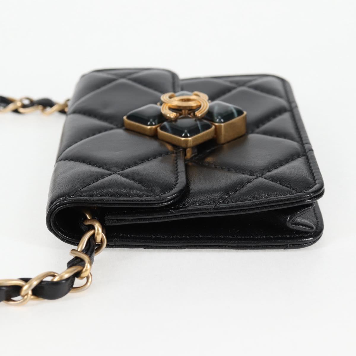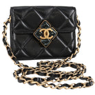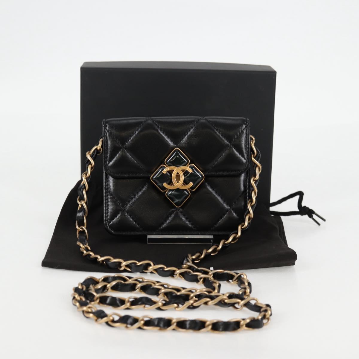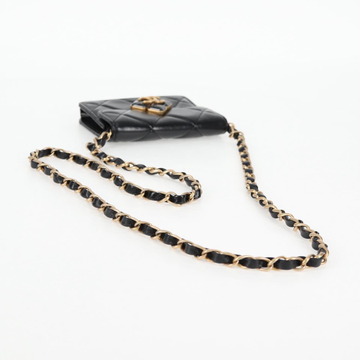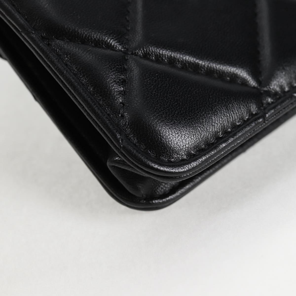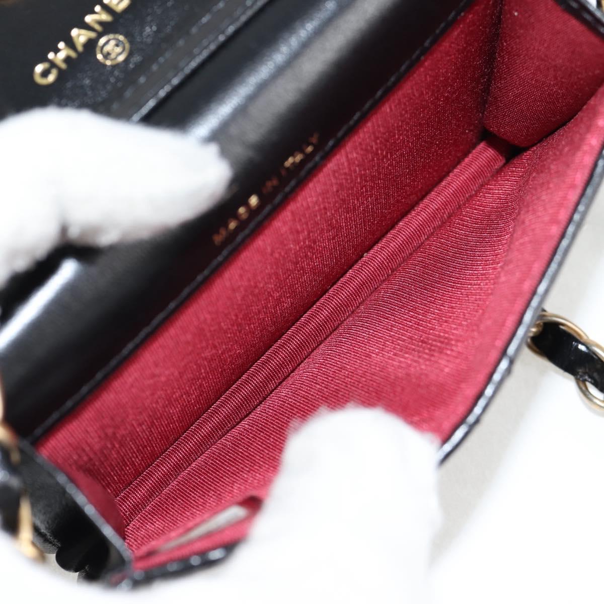 CHANEL Matelasse Chain Pouch Shoulder Bag Lamb Skin Black Gold CC Auth 127795M