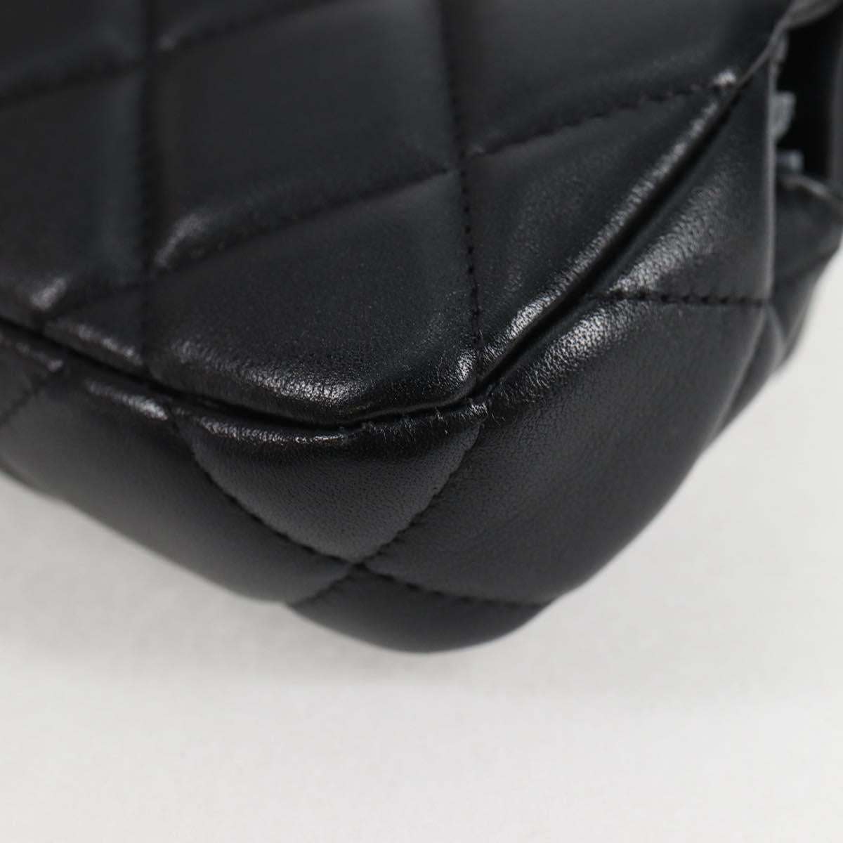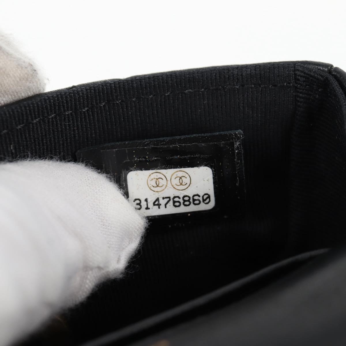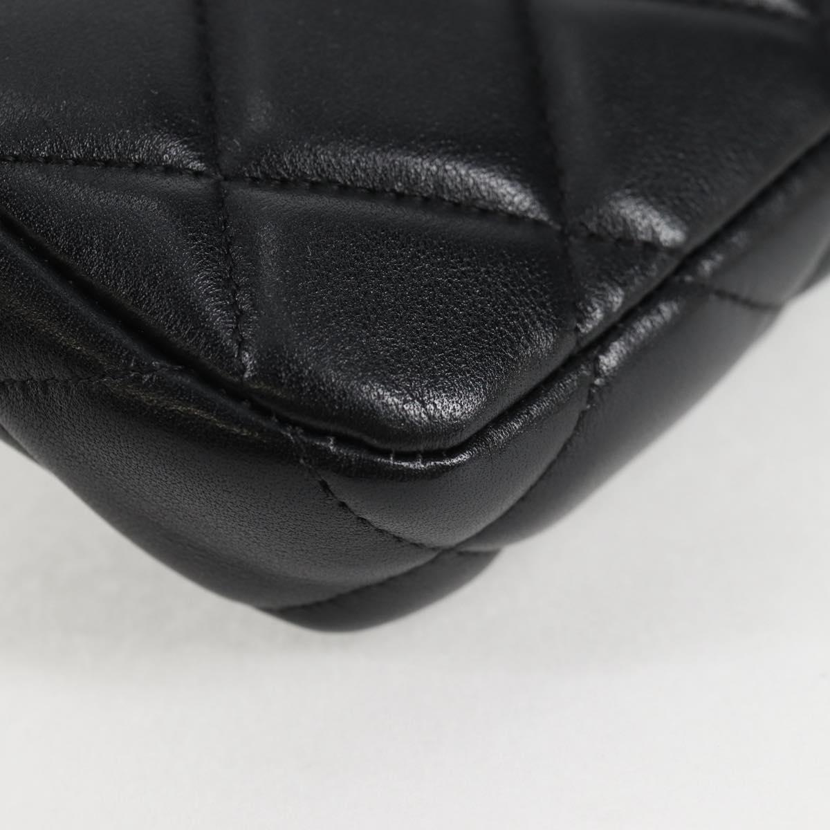 CHANEL Matelasse Chain Pouch Shoulder Bag Lamb Skin Black Gold CC Auth BD2191M