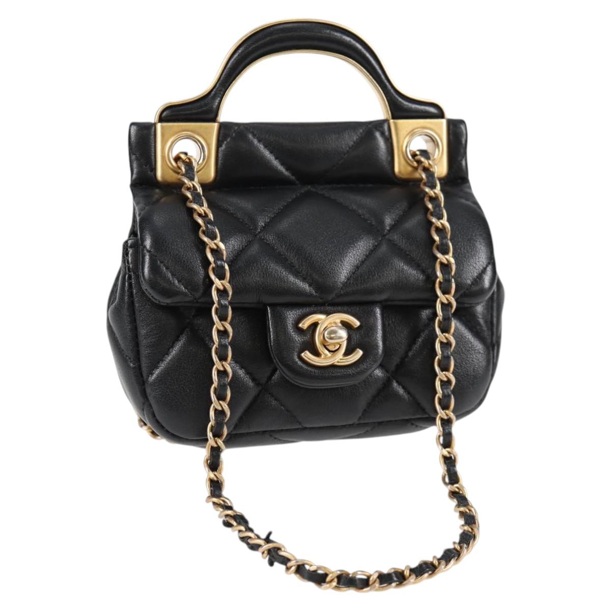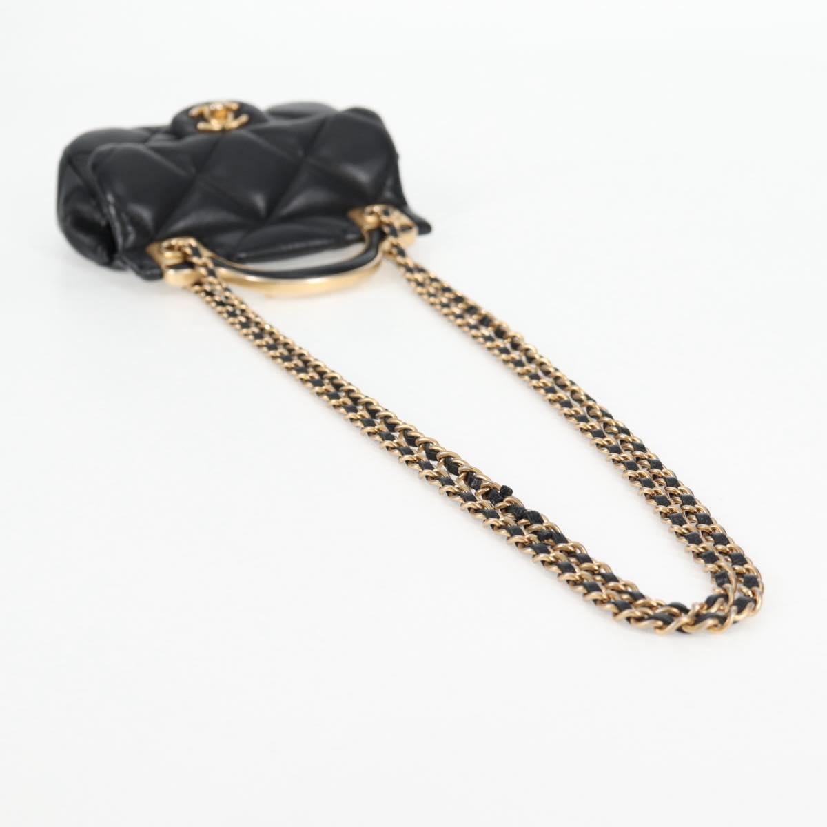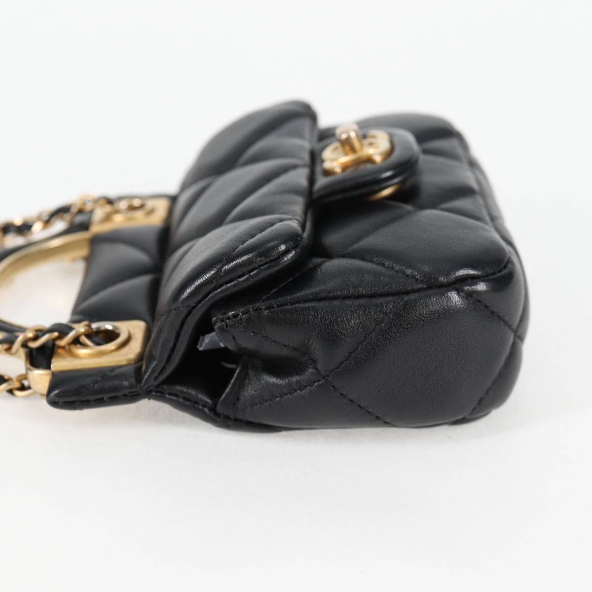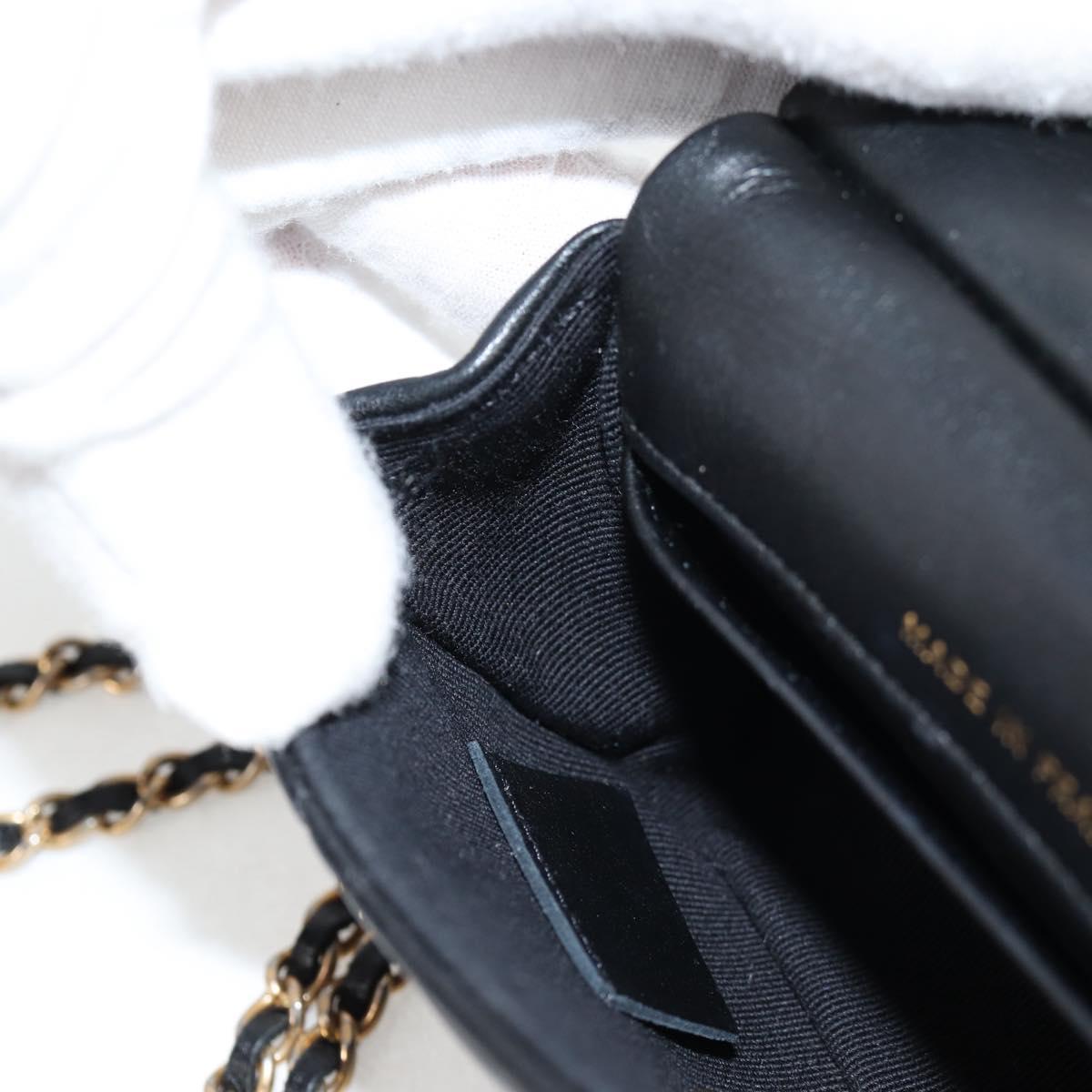 CHANEL Matelasse Chain Pouch Shoulder Bag Lamb Skin Black Gold CC Auth BD2191M