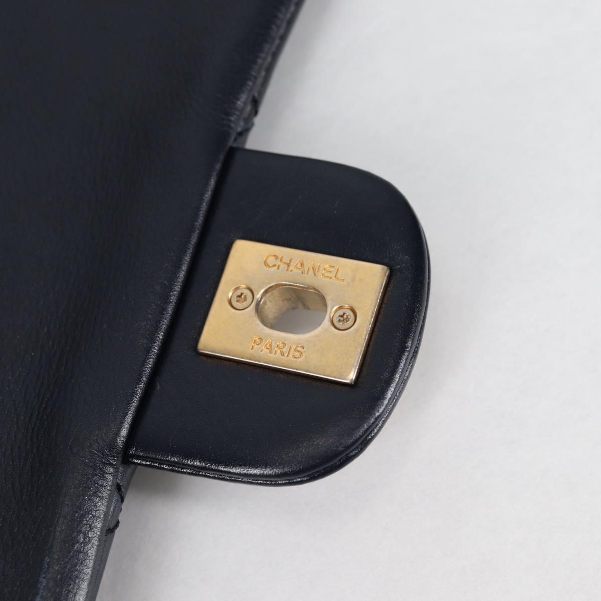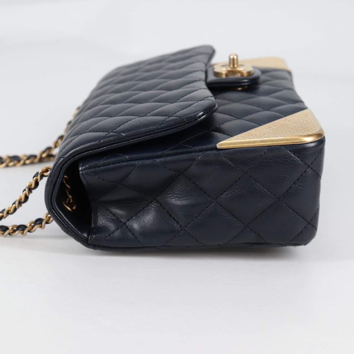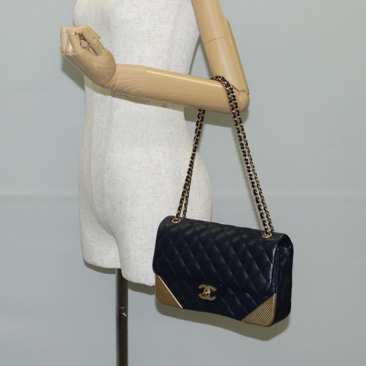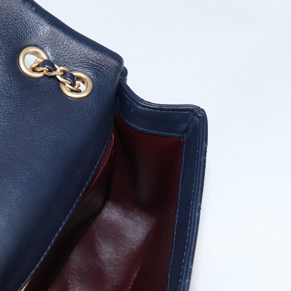 CHANEL Matelasse Chain Shoulder Bag Calf Skin Navy Gold CC Auth 132852M