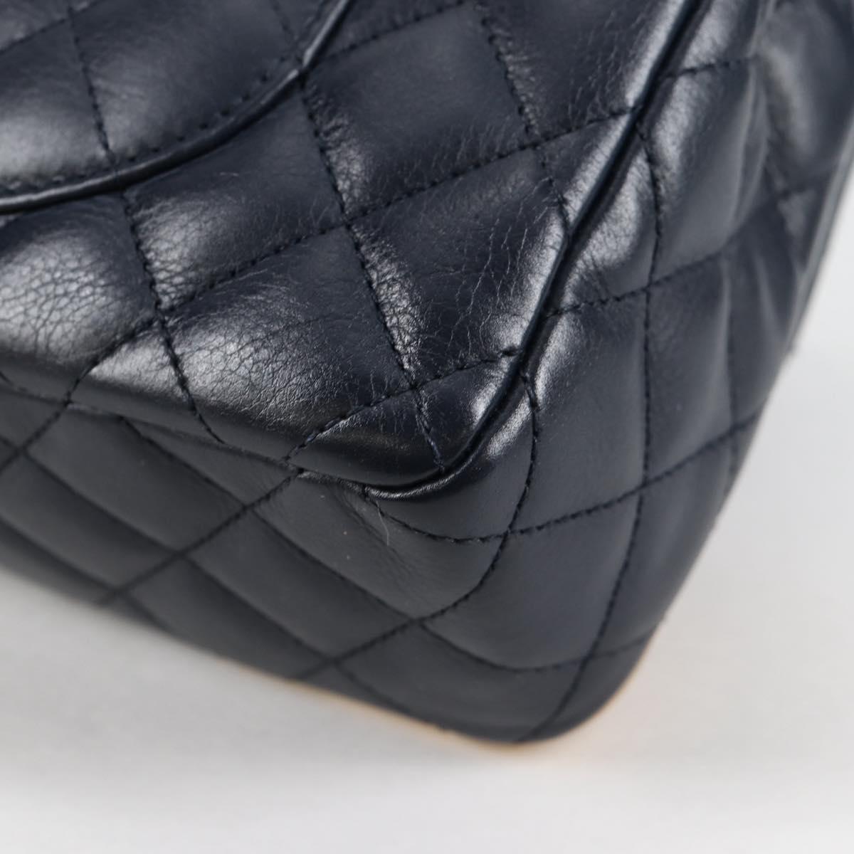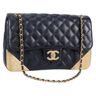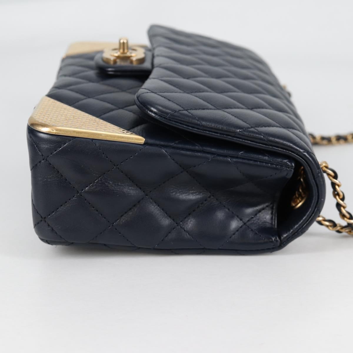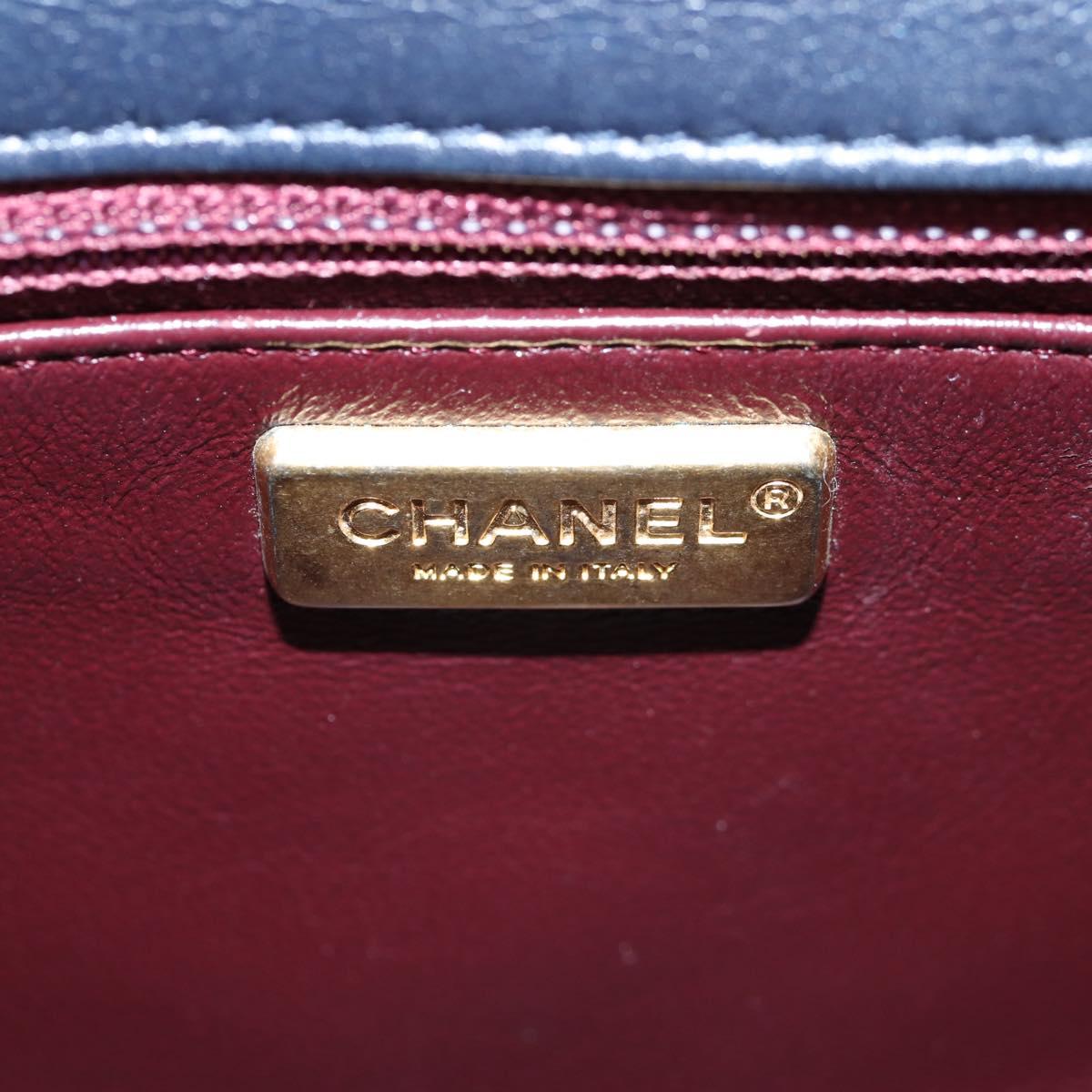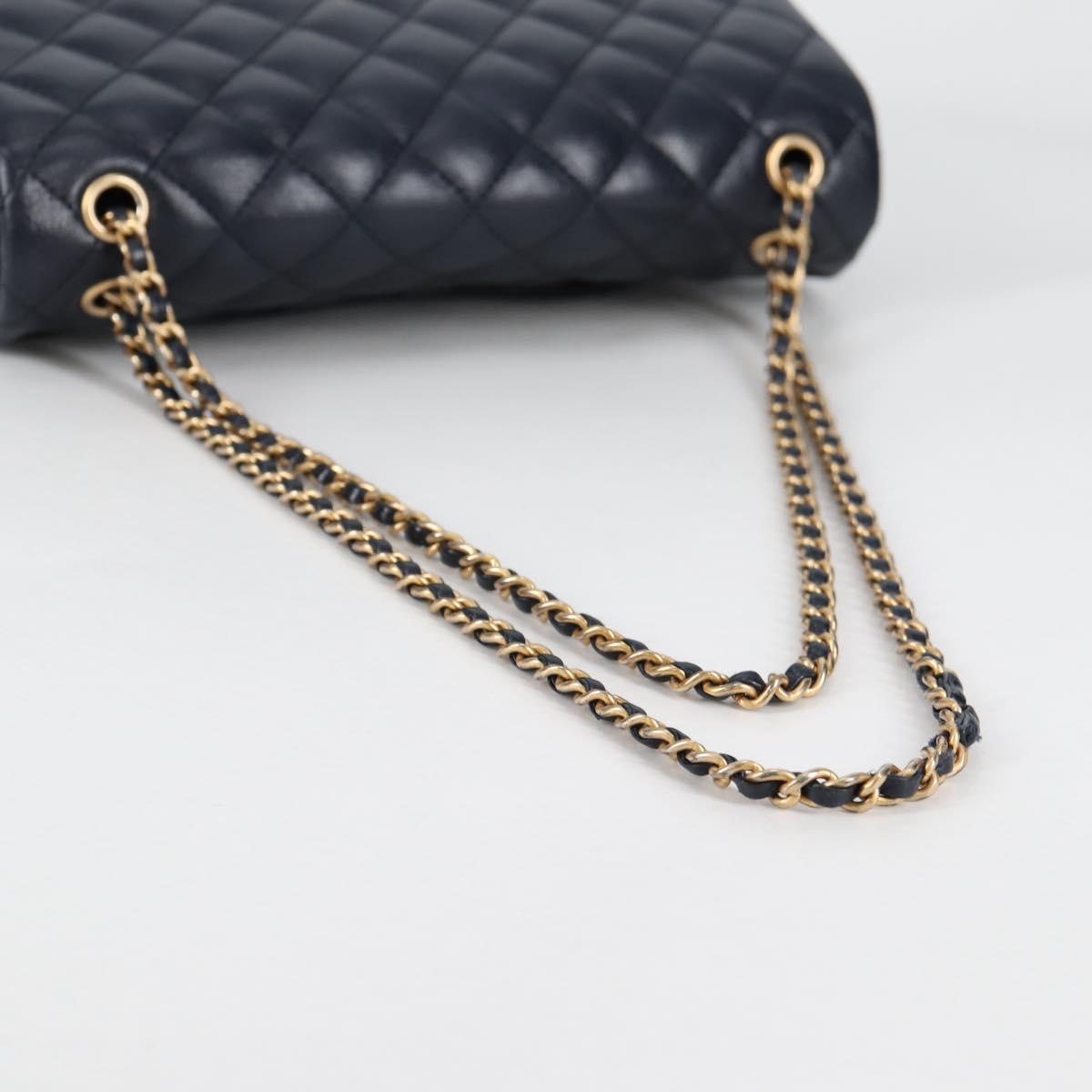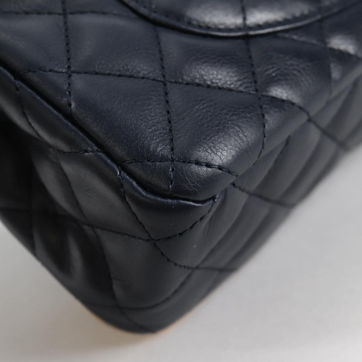 CHANEL Matelasse Chain Shoulder Bag Calf Skin Navy Gold CC Auth 132852M