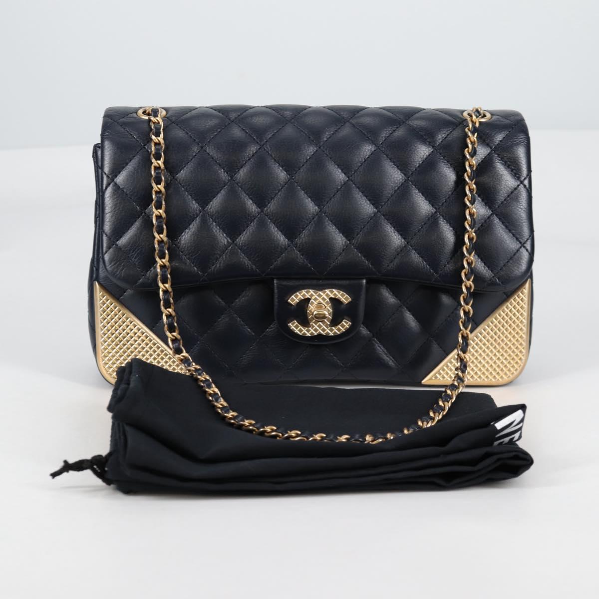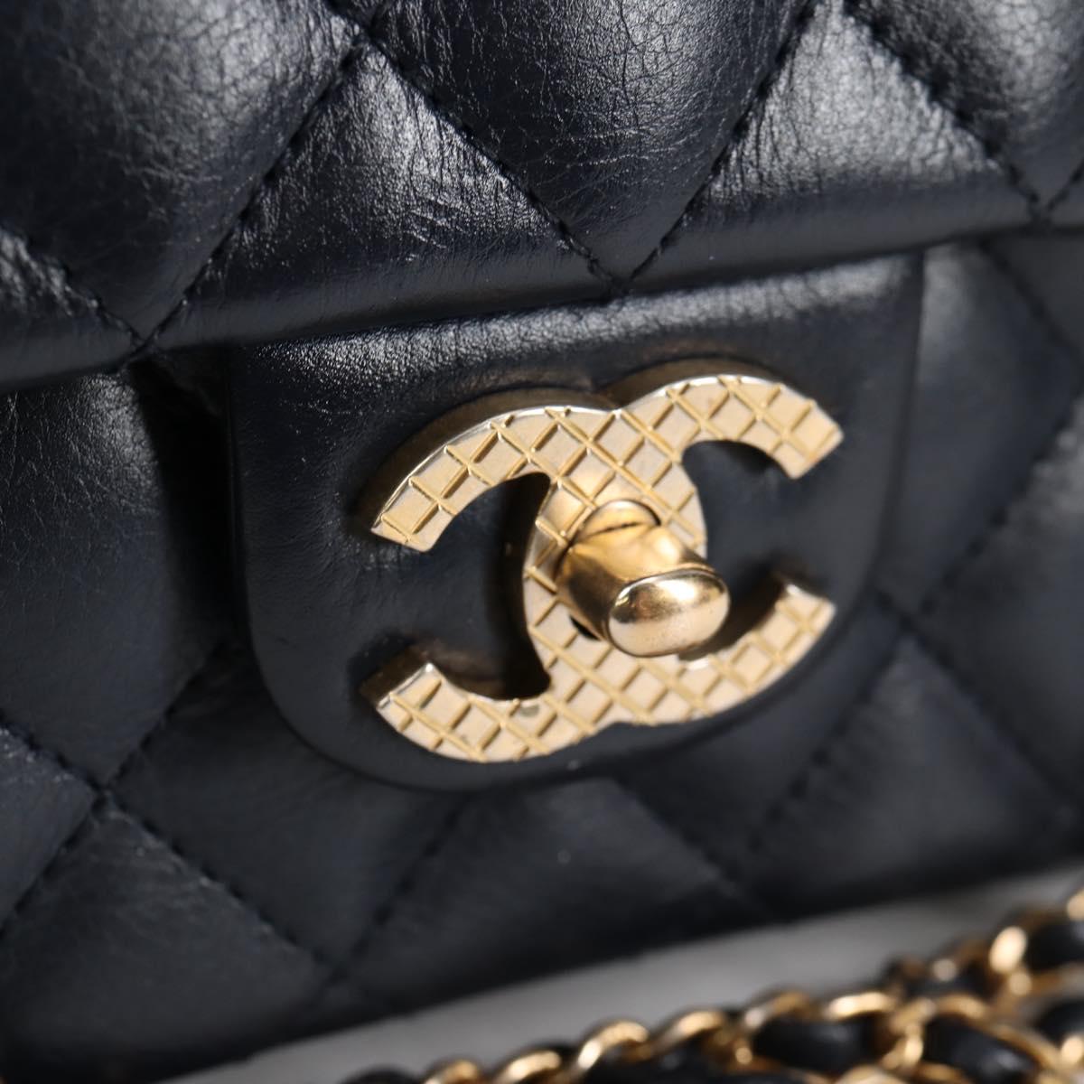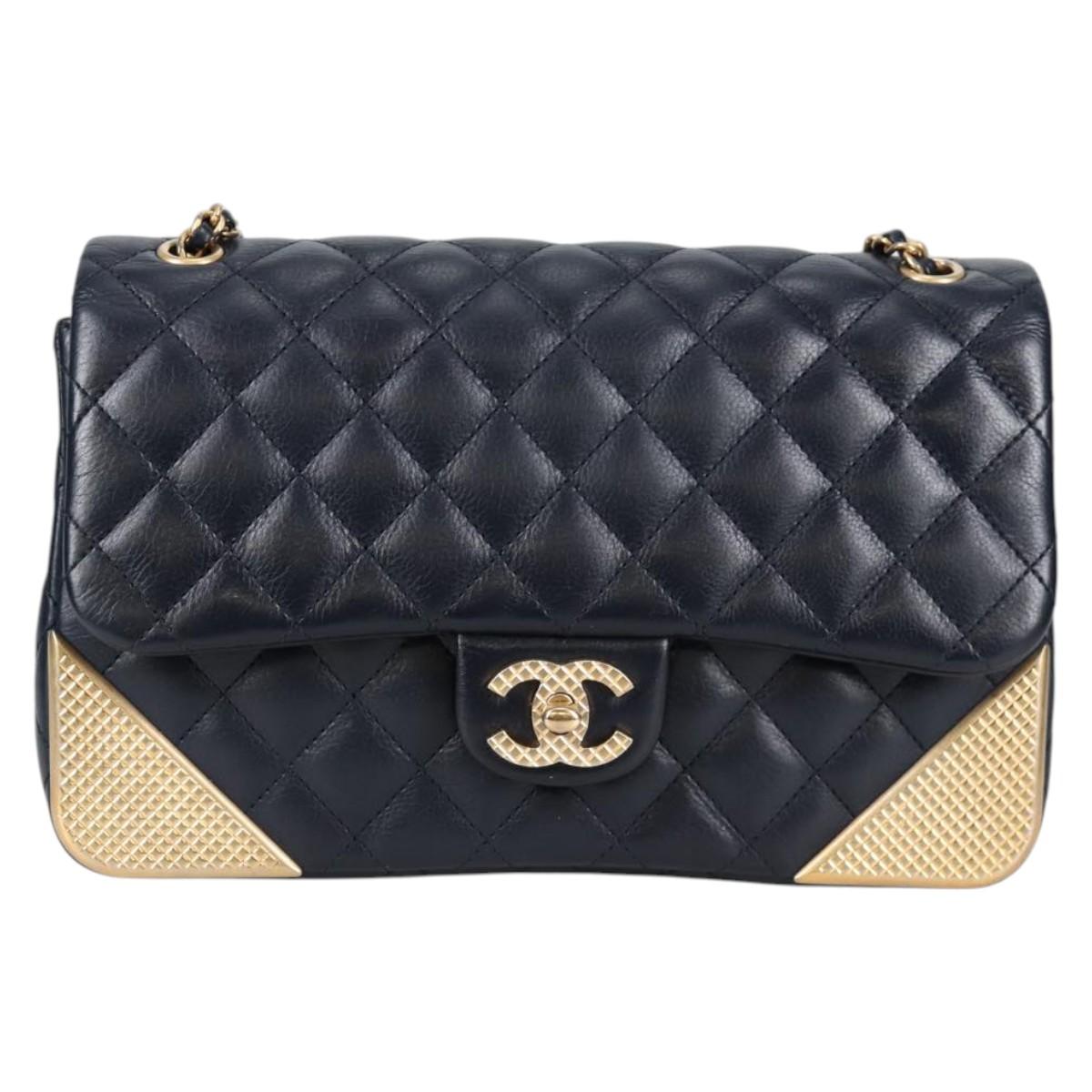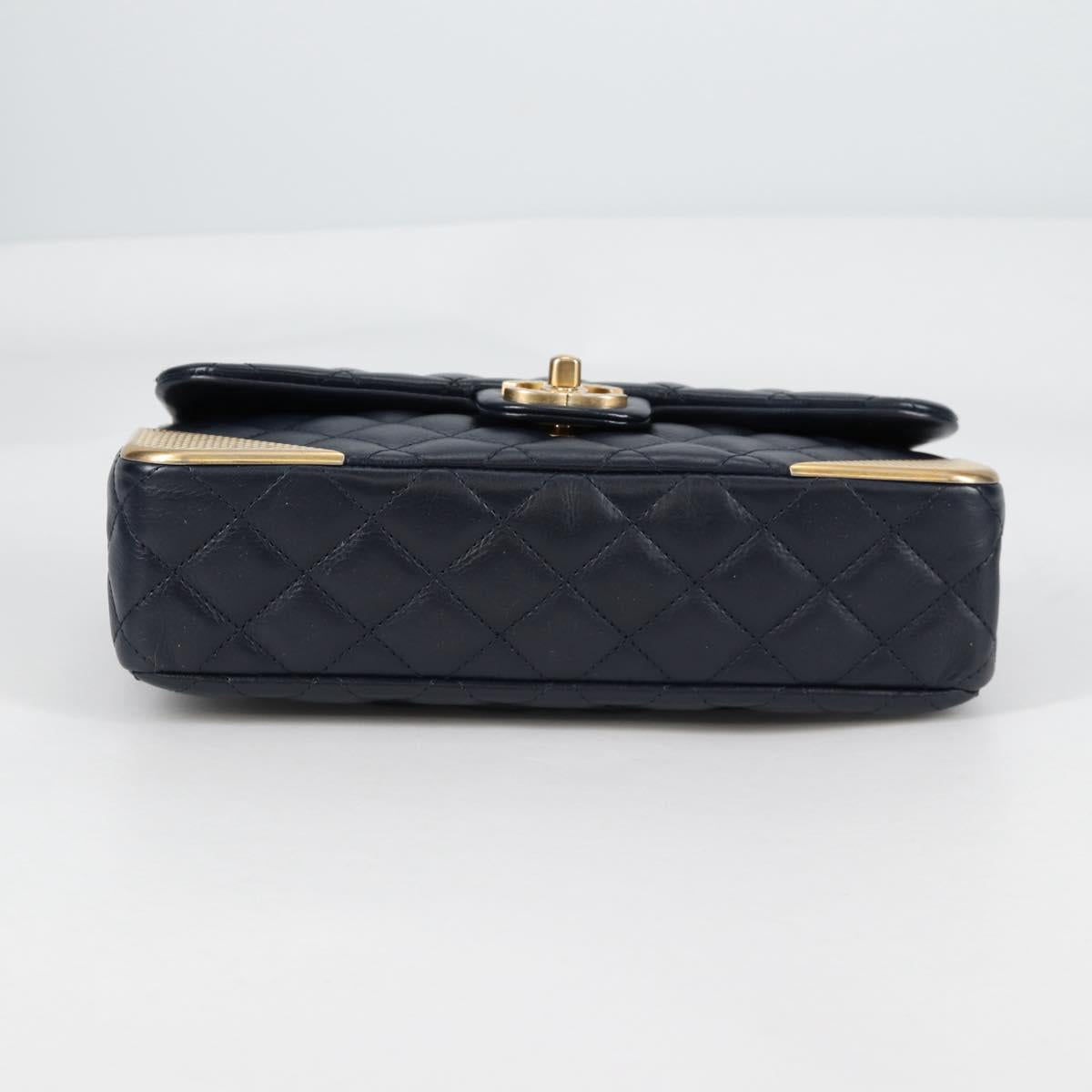 CHANEL Matelasse Chain Shoulder Bag Calf Skin Navy Gold CC Auth 132852M