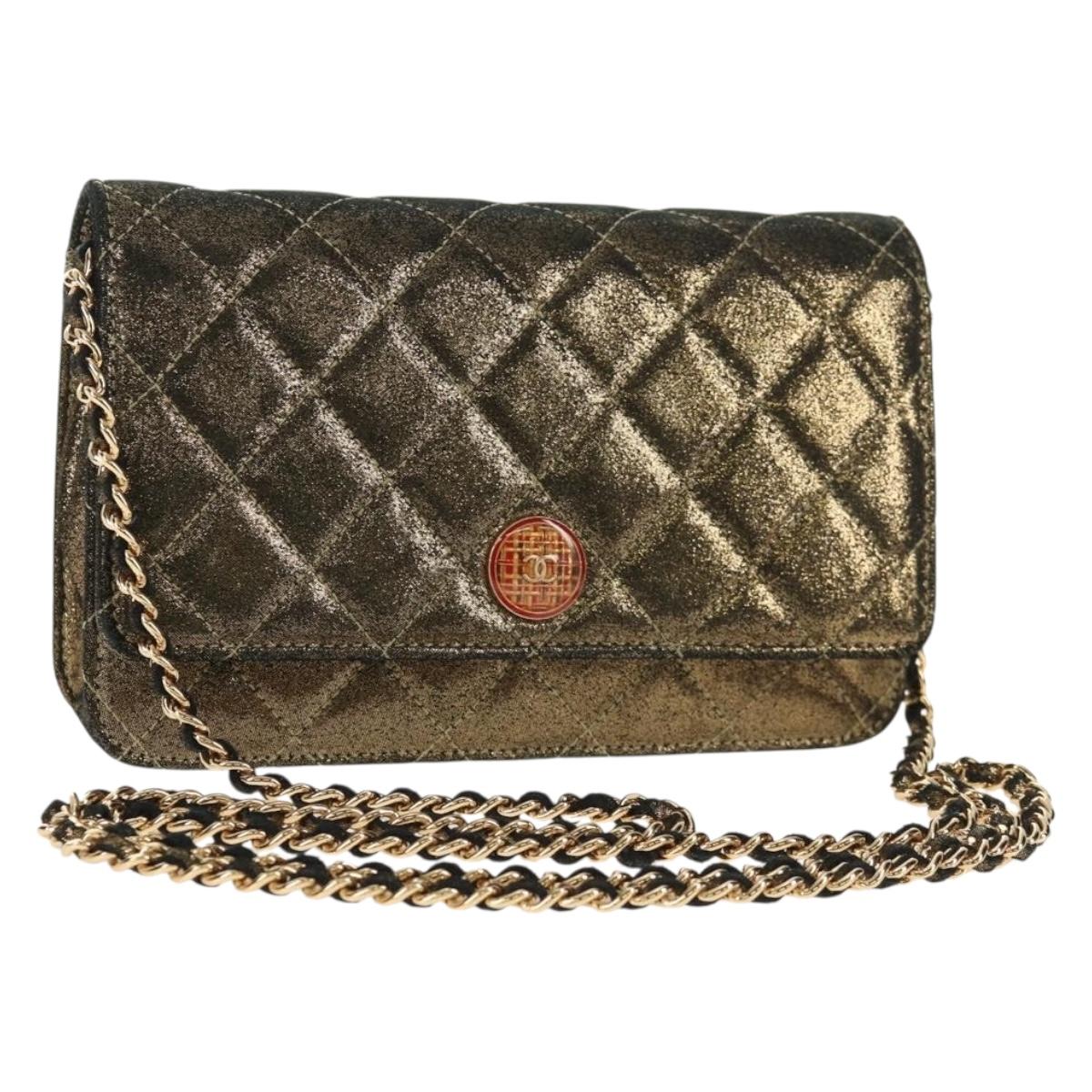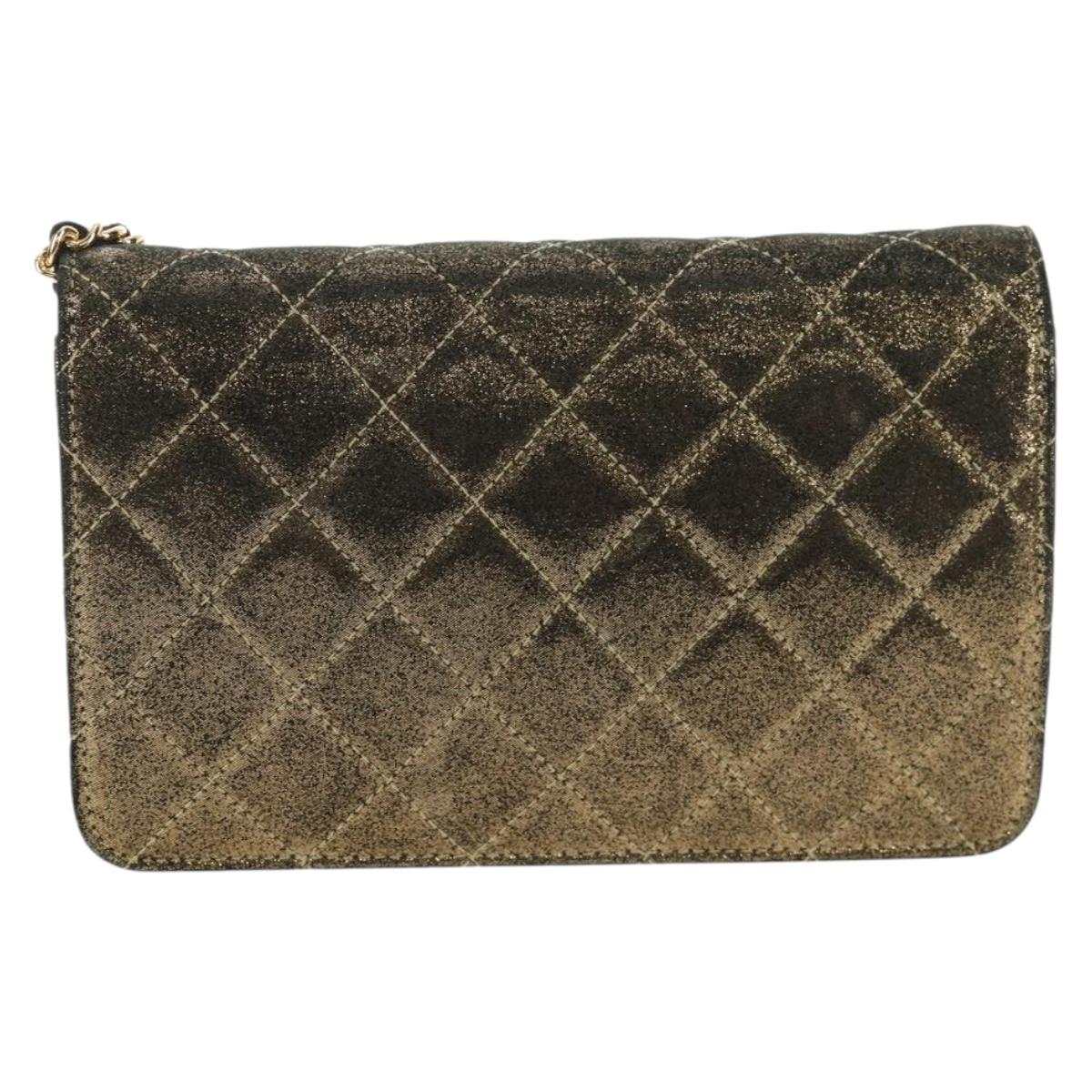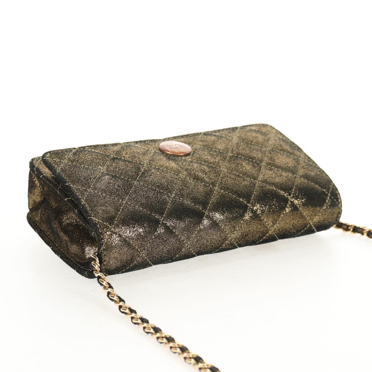 CHANEL Matelasse Chain Shoulder Bag Canvas Gold CC Auth 139094V