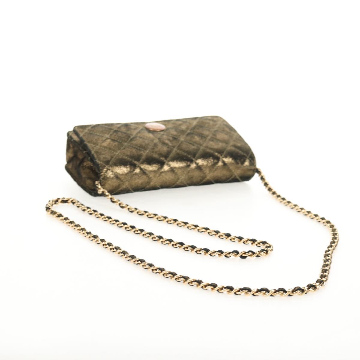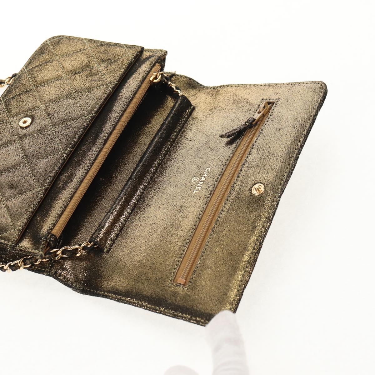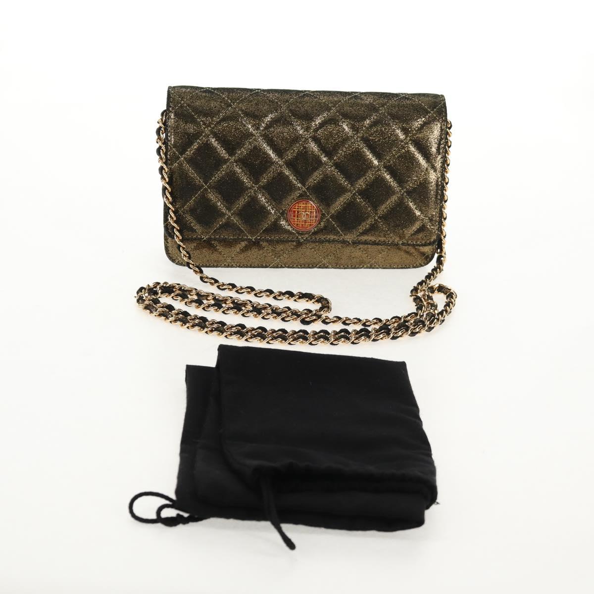 CHANEL Matelasse Chain Shoulder Bag Canvas Gold CC Auth 139094V