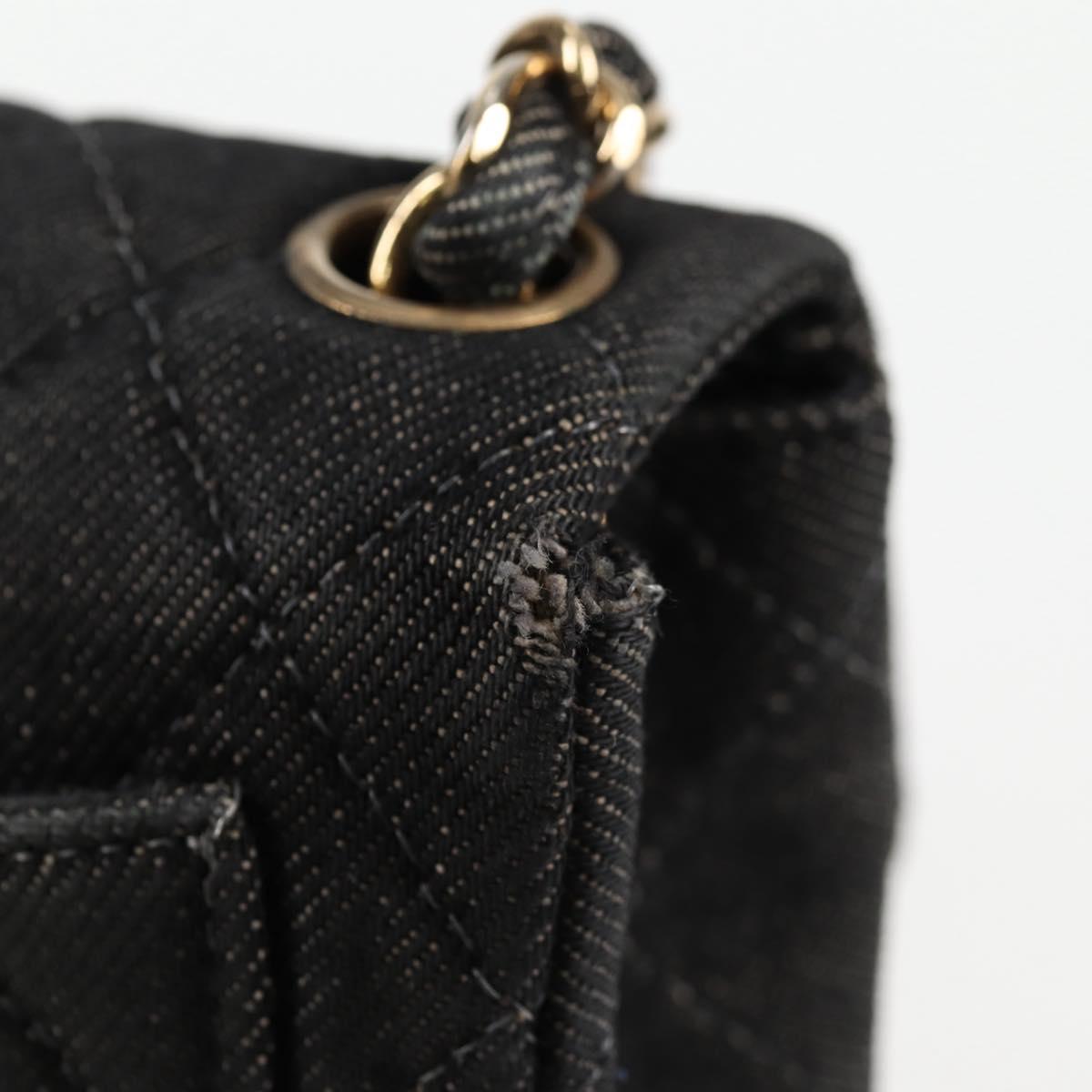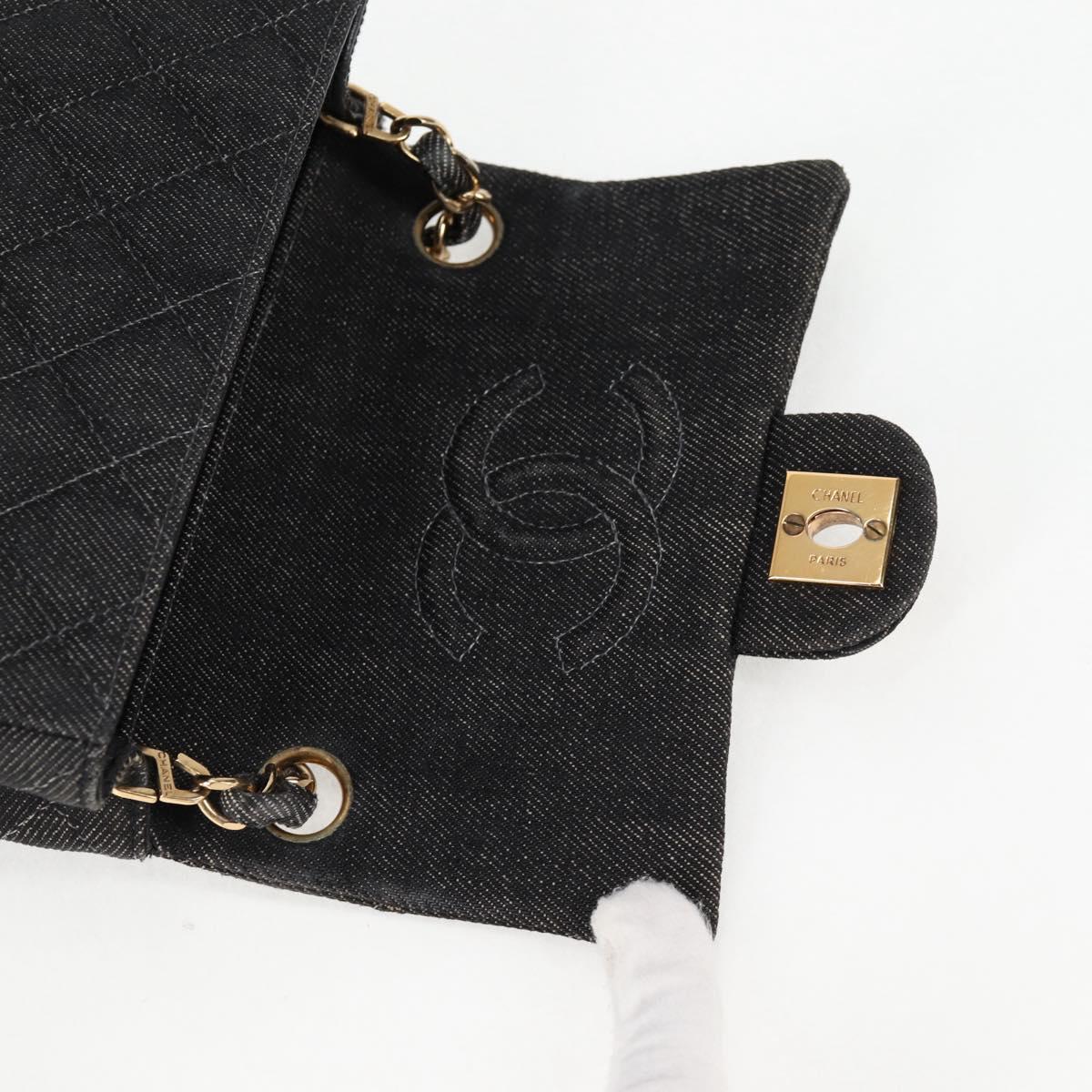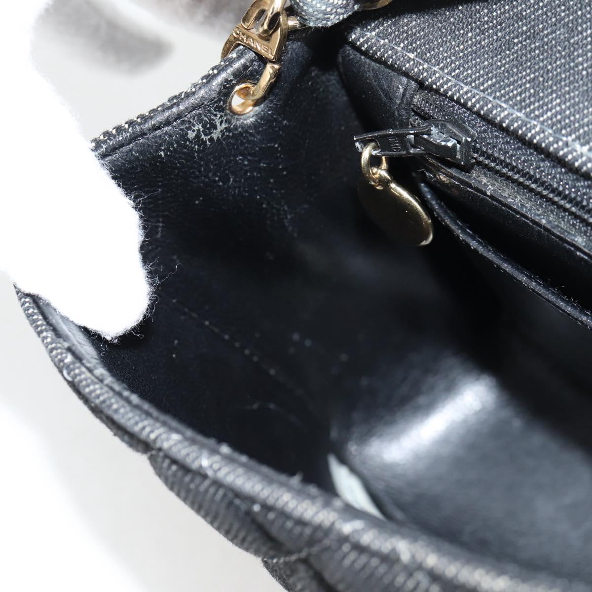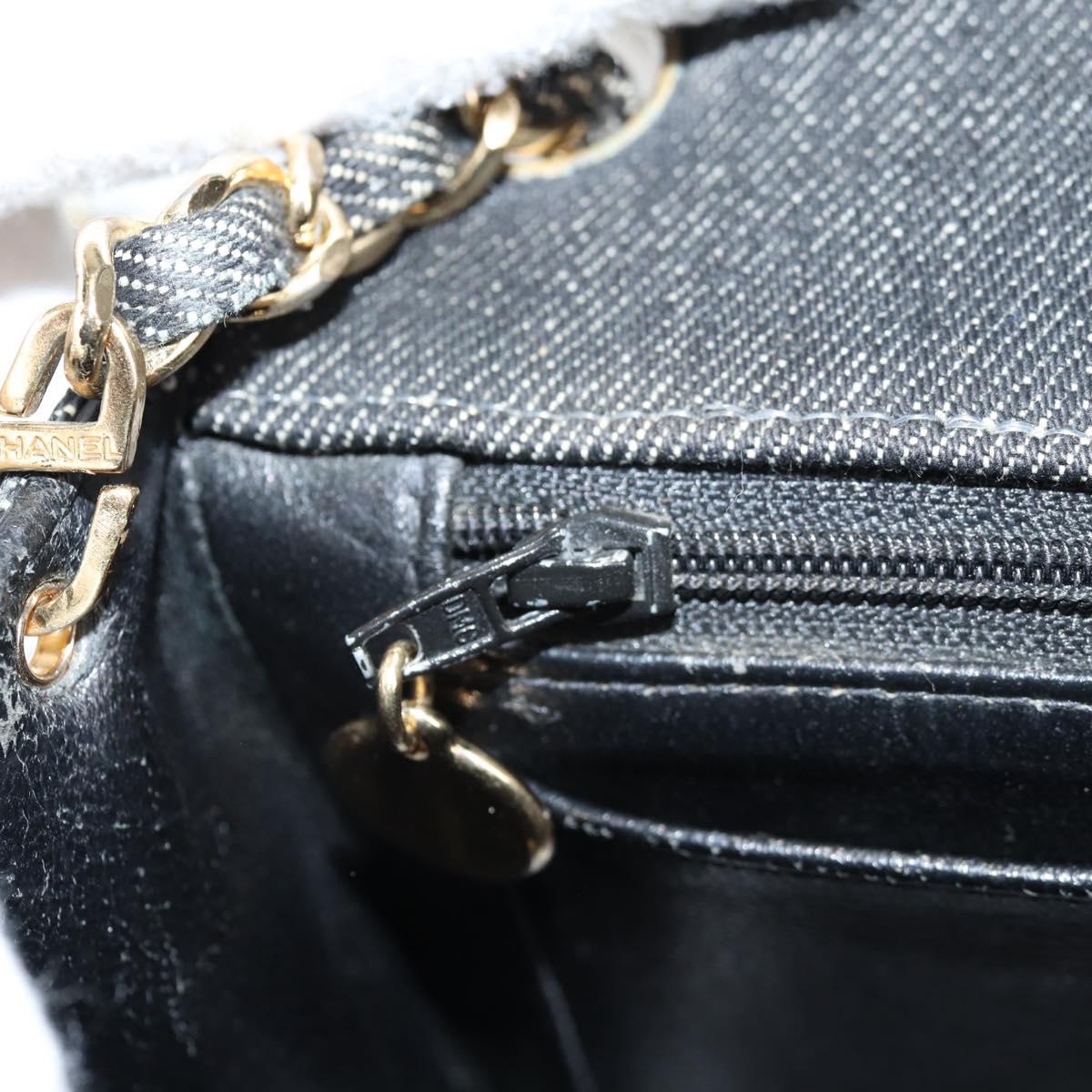 CHANEL Matelasse Chain Shoulder Bag Denim Black Gold CC Auth PP702V