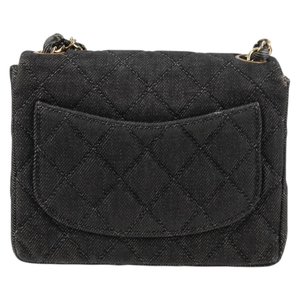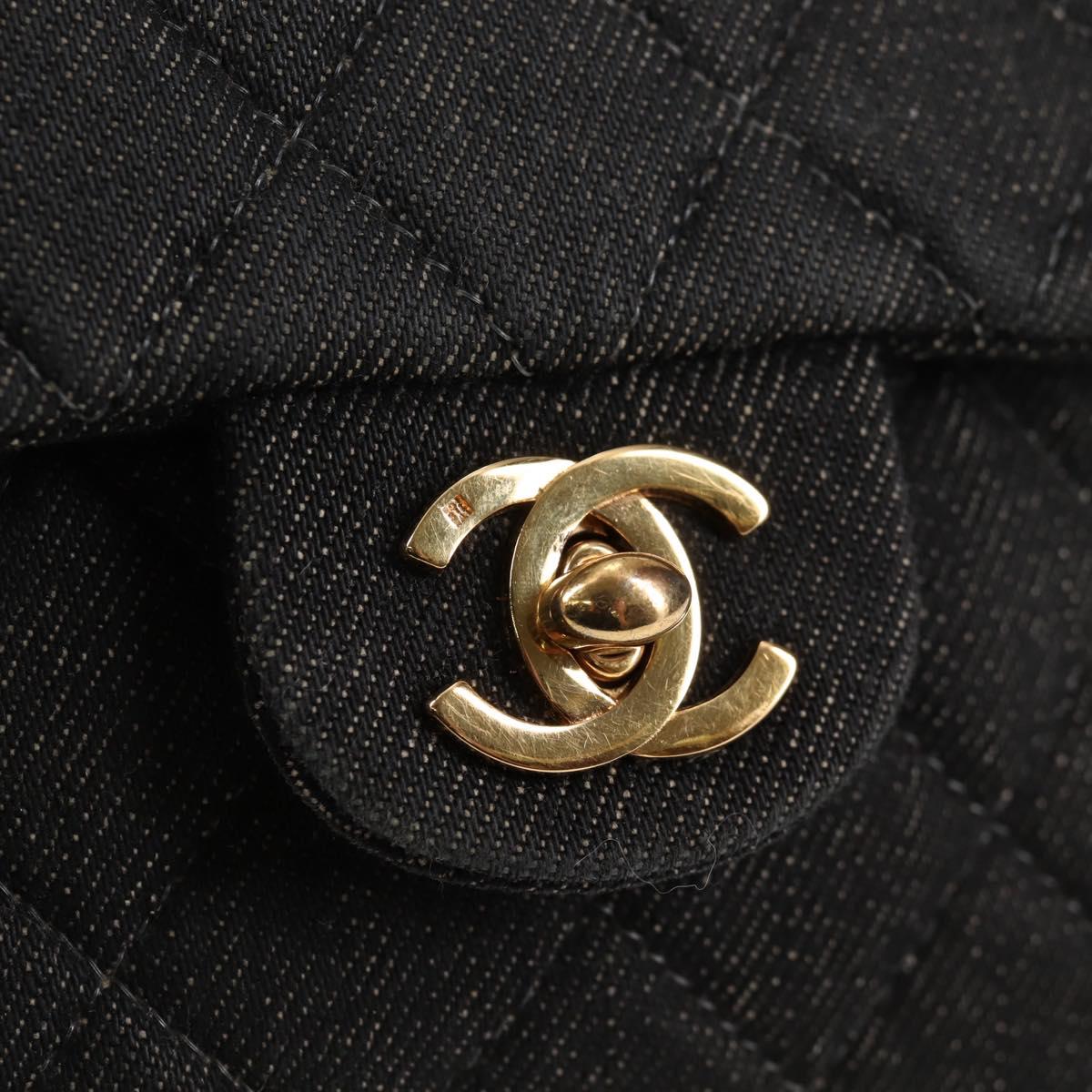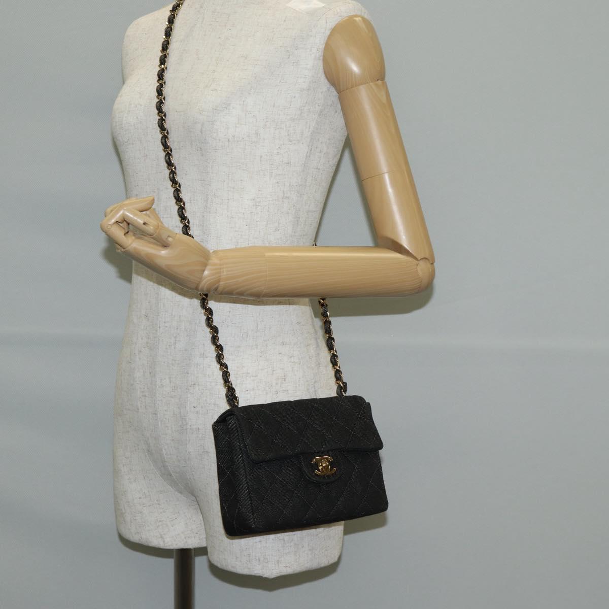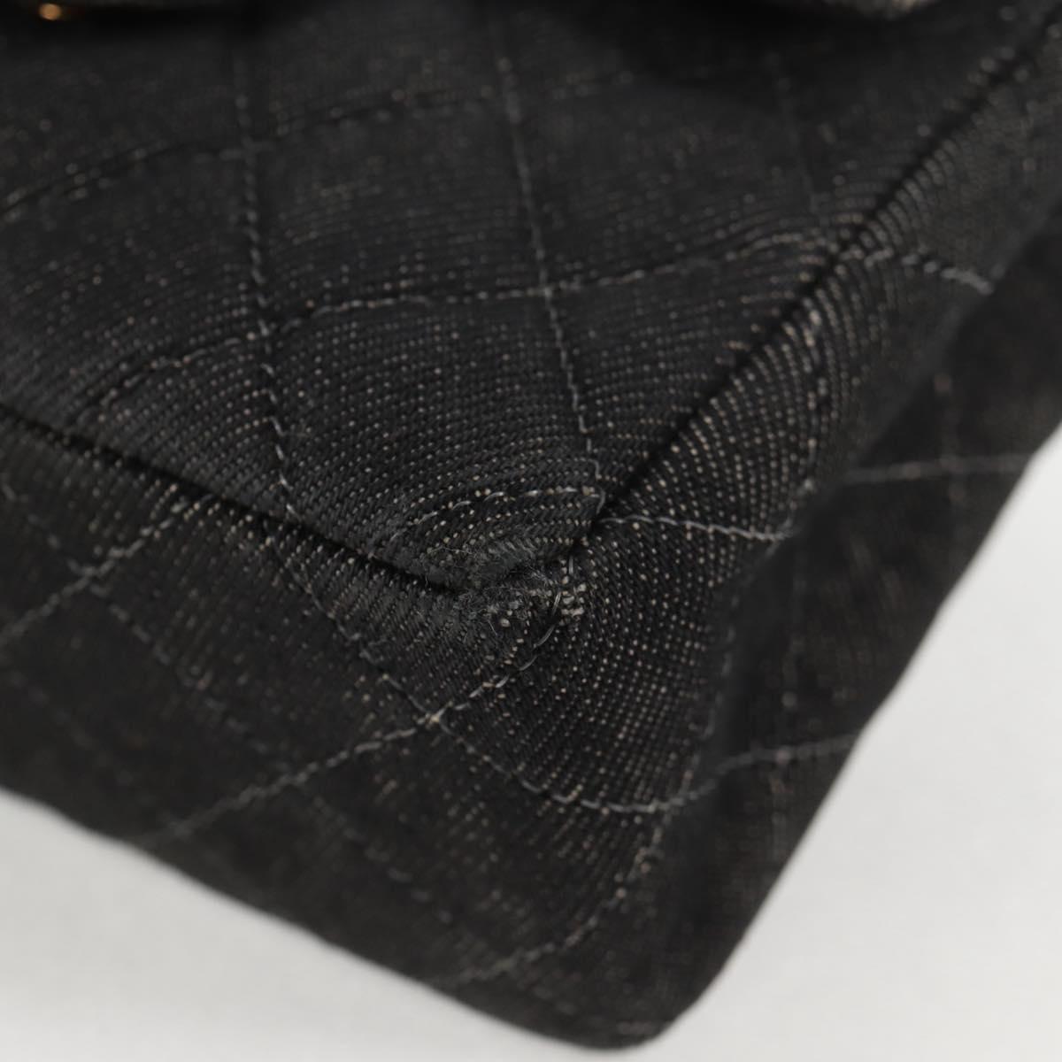 CHANEL Matelasse Chain Shoulder Bag Denim Black Gold CC Auth PP702V