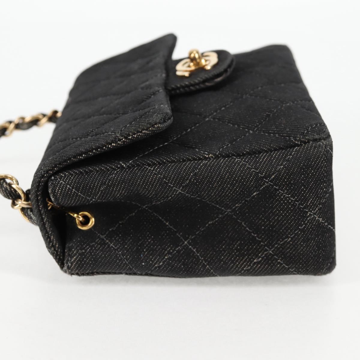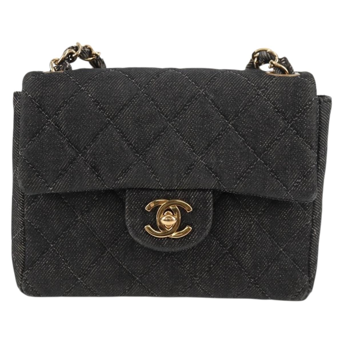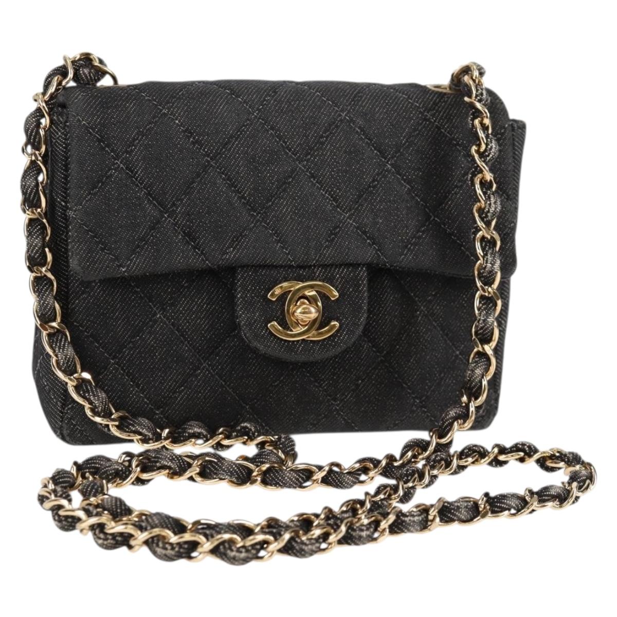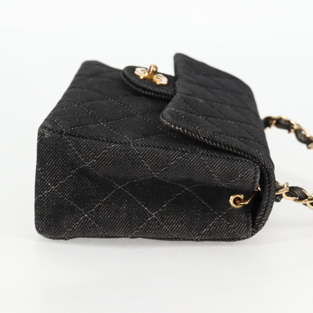 CHANEL Matelasse Chain Shoulder Bag Denim Black Gold CC Auth PP702V