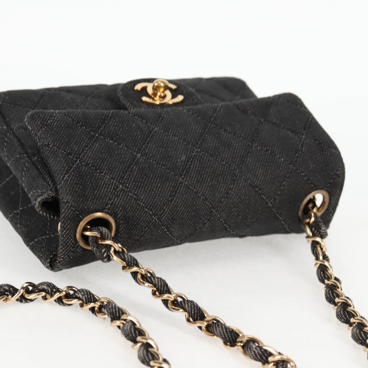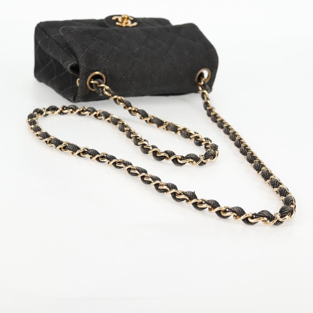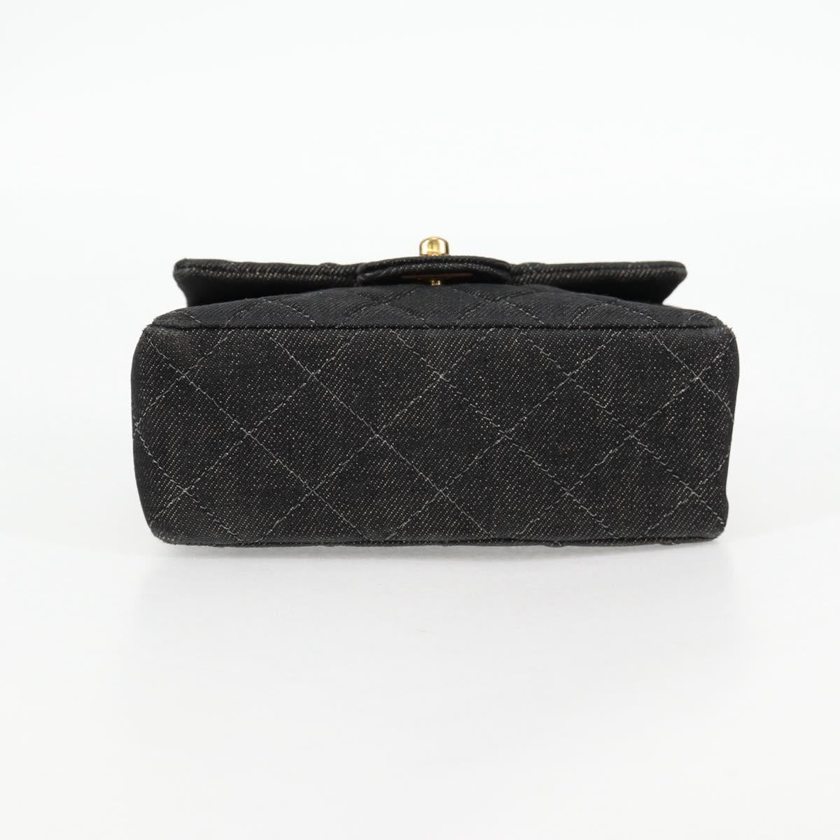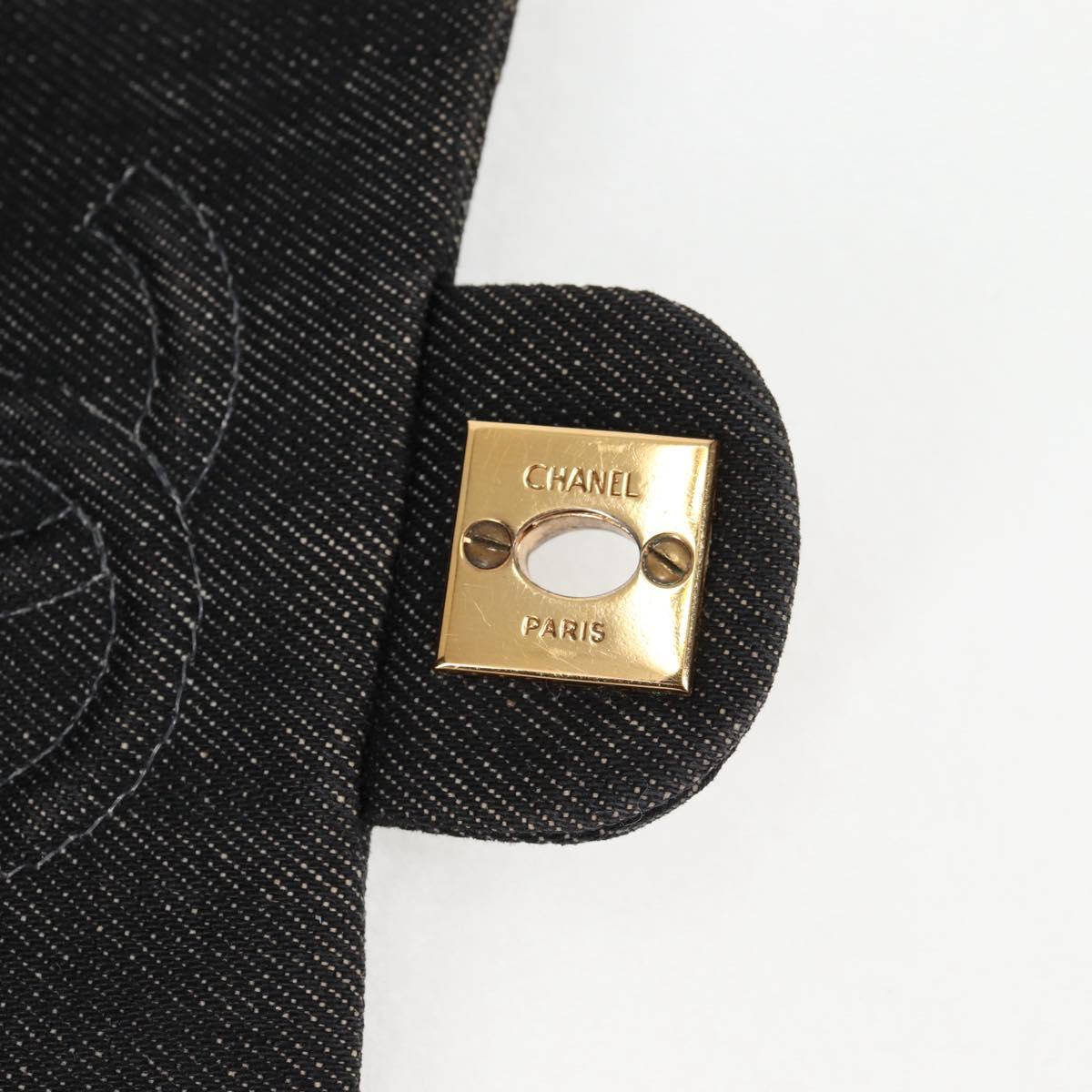 CHANEL Matelasse Chain Shoulder Bag Denim Black Gold CC Auth PP702V