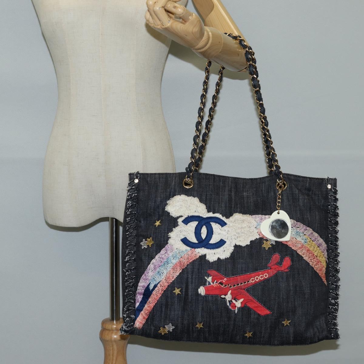 CHANEL Matelasse Chain Shoulder Bag Denim Navy Silver CC Auth 122424SM