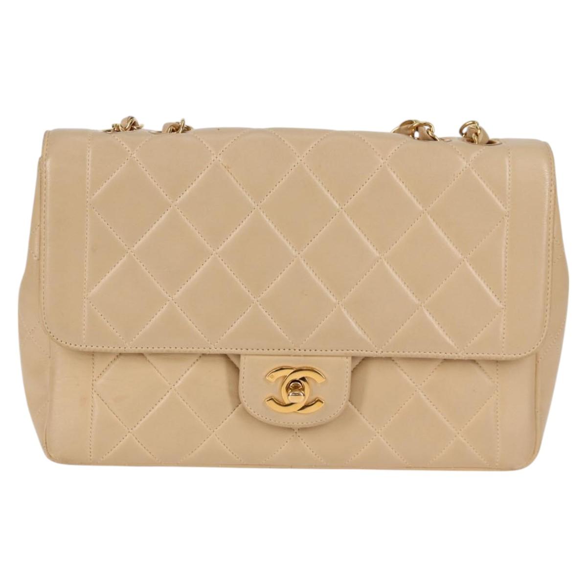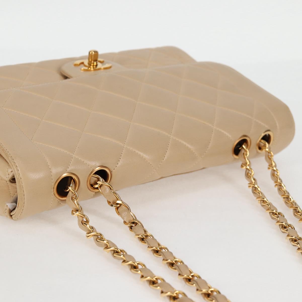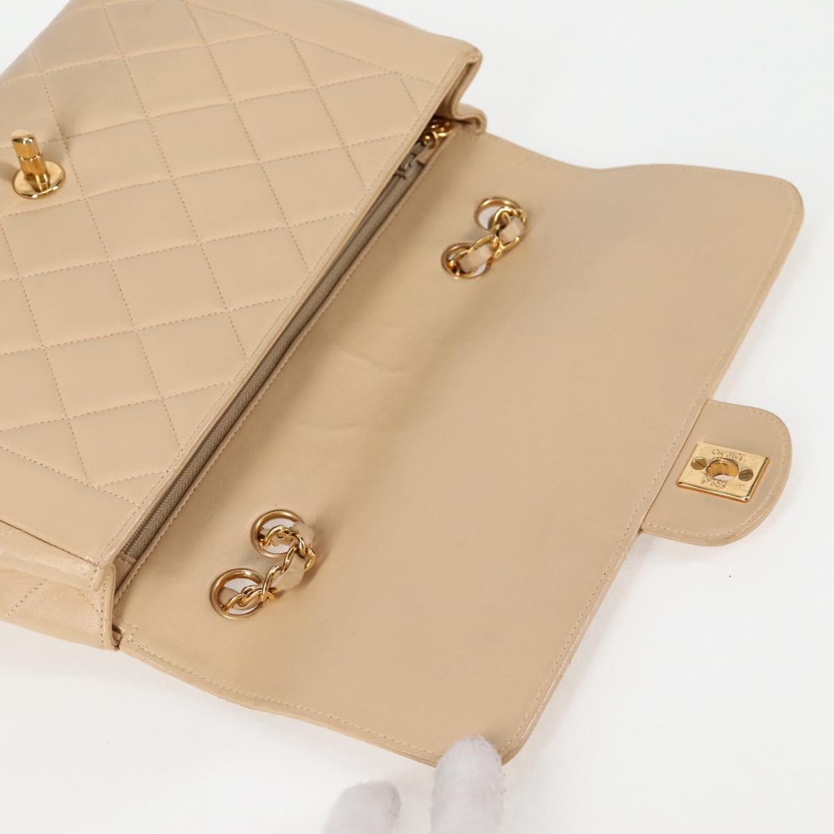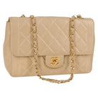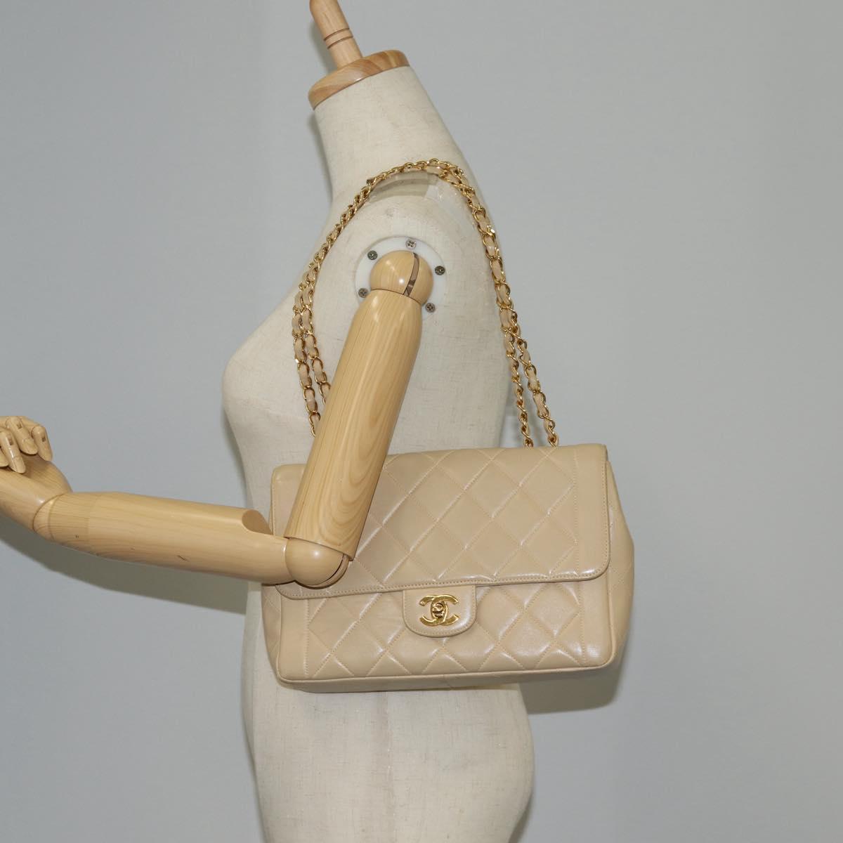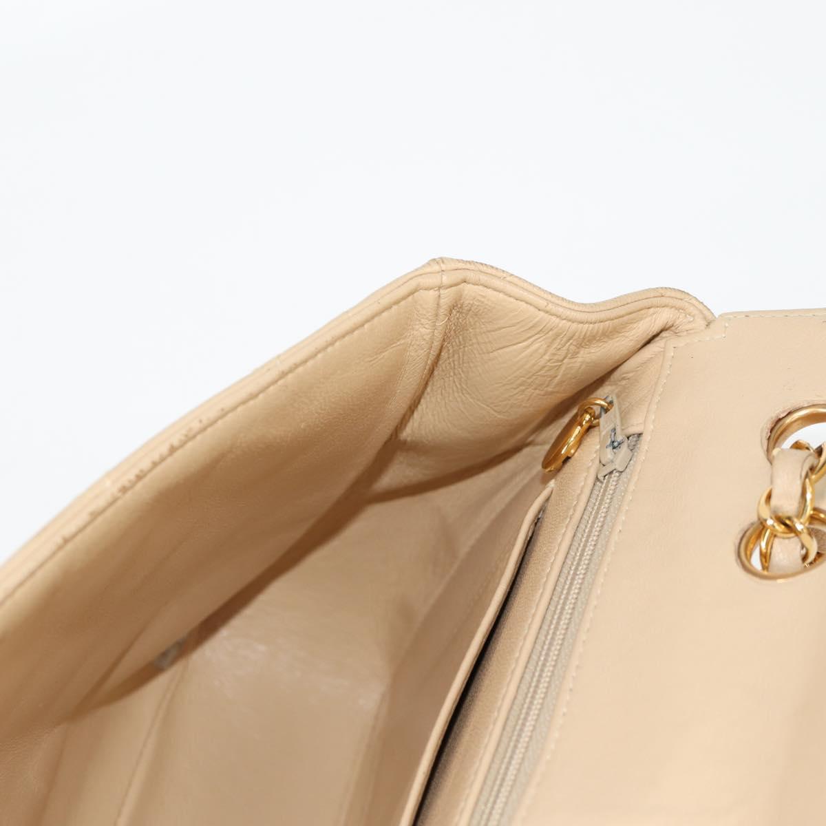 CHANEL Matelasse Chain Shoulder Bag Lamb Skin Beige Gold CC Auth BA2162V