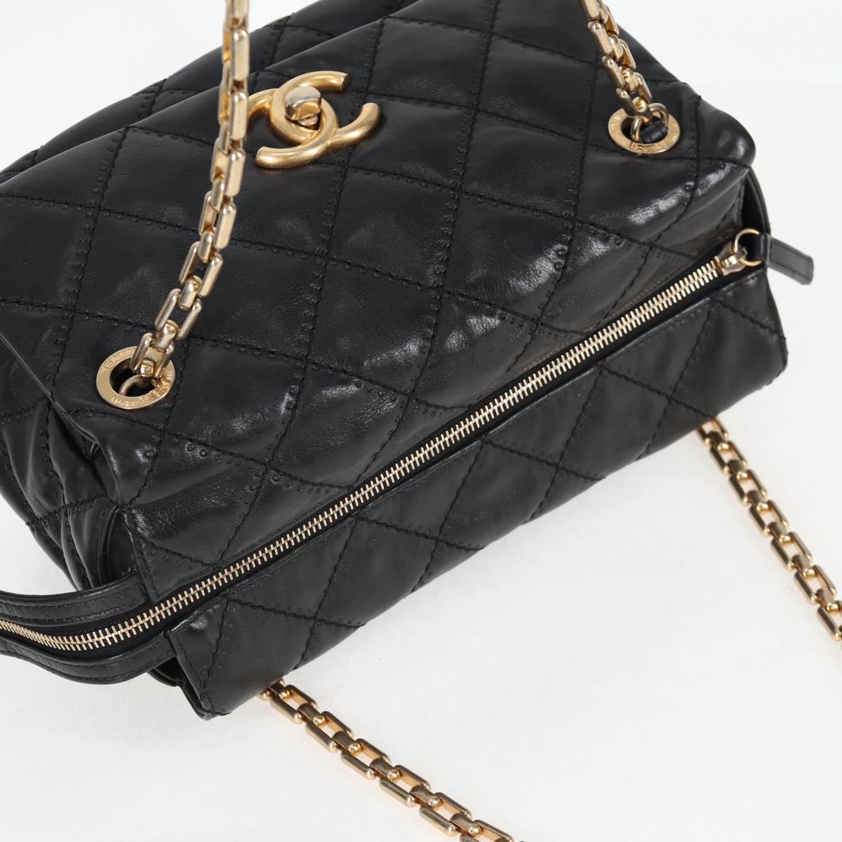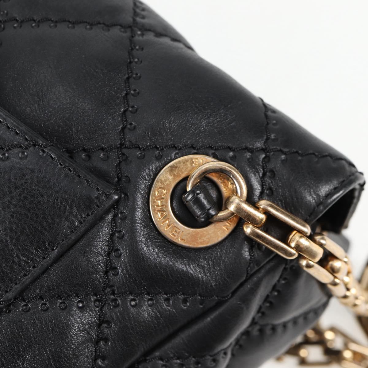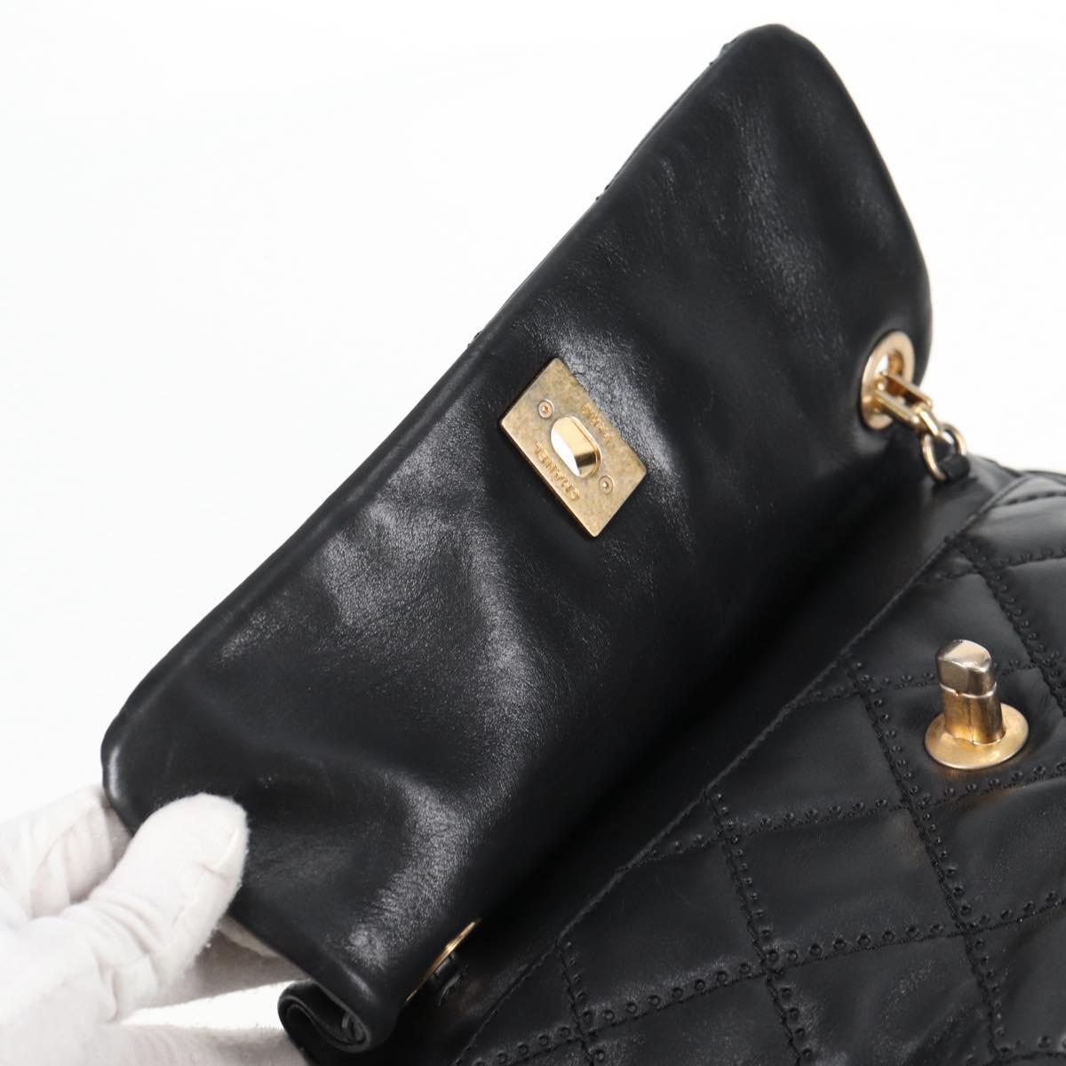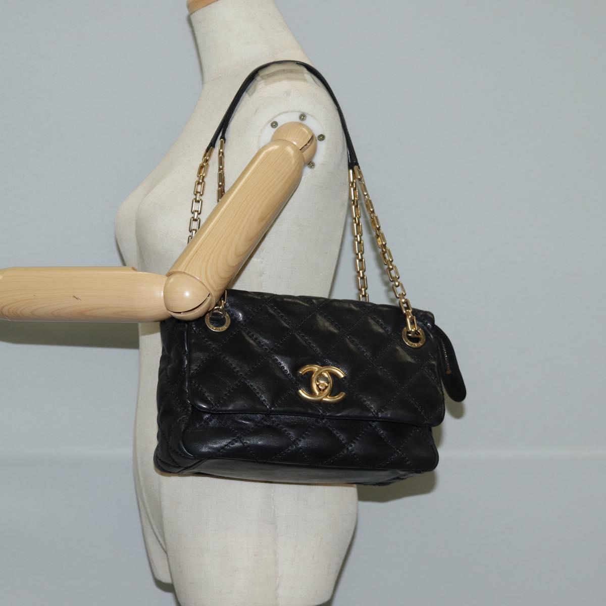CHANEL Matelasse Chain Shoulder Bag Lamb Skin Black Gold CC Auth 127921M