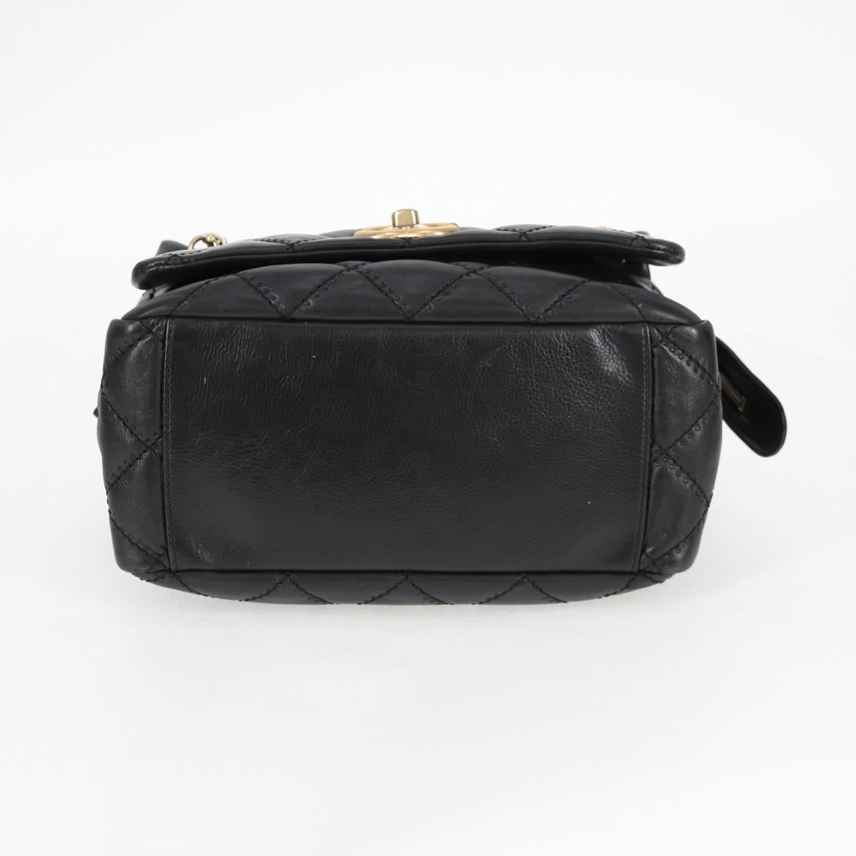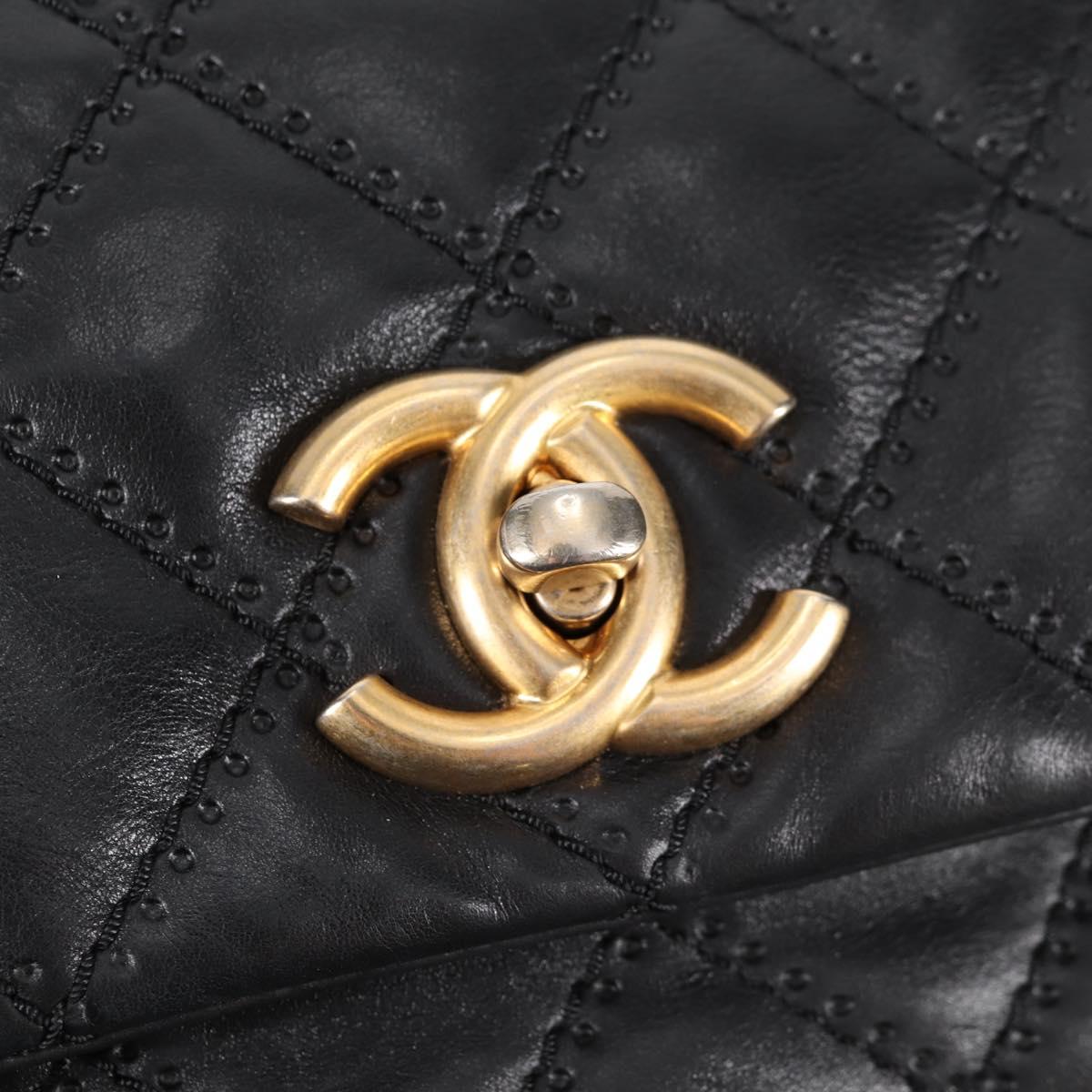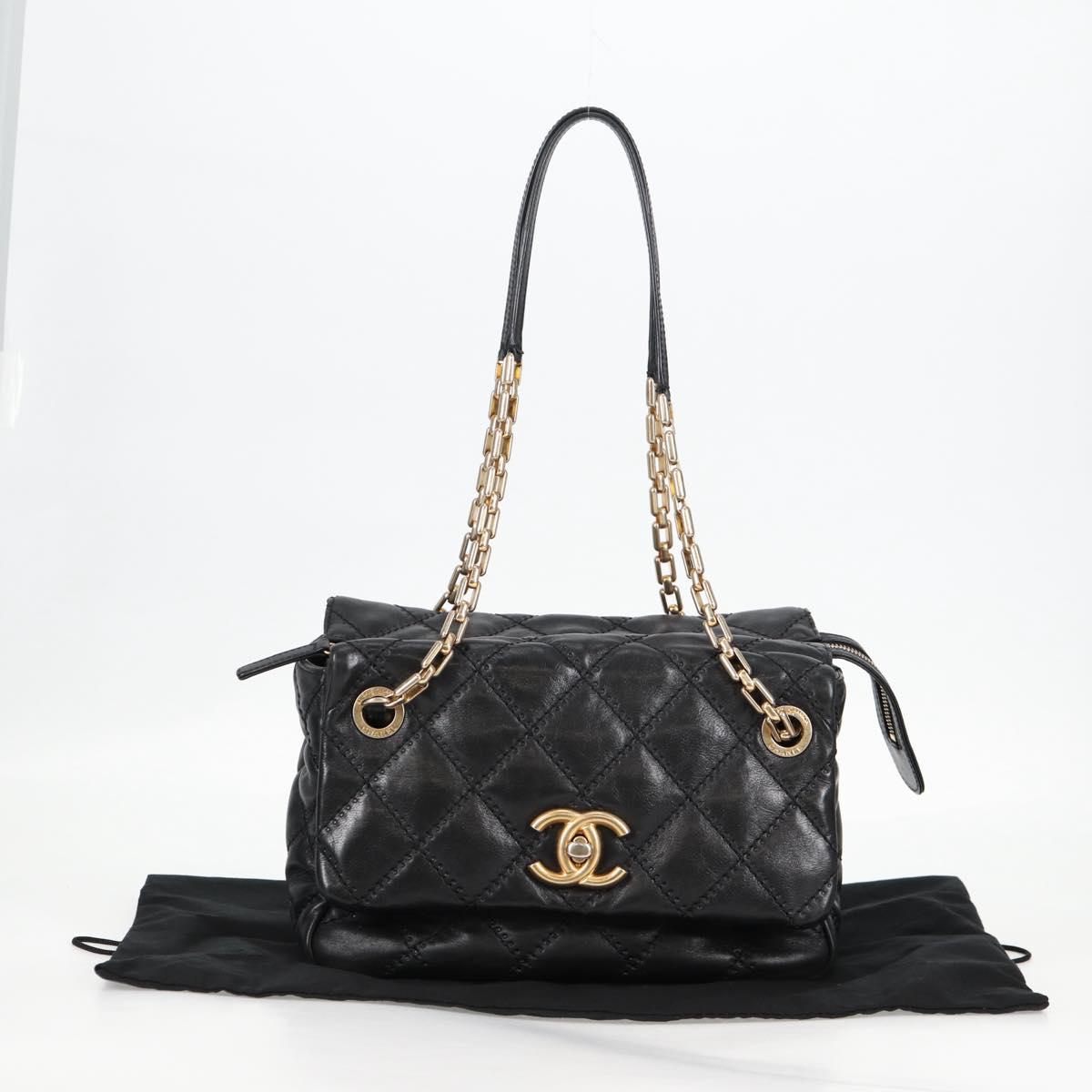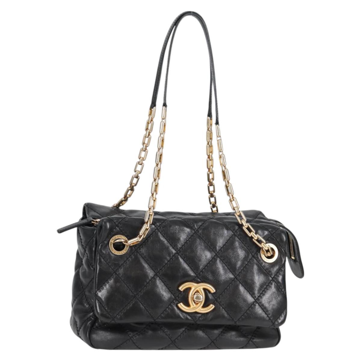 CHANEL Matelasse Chain Shoulder Bag Lamb Skin Black Gold CC Auth 127921M