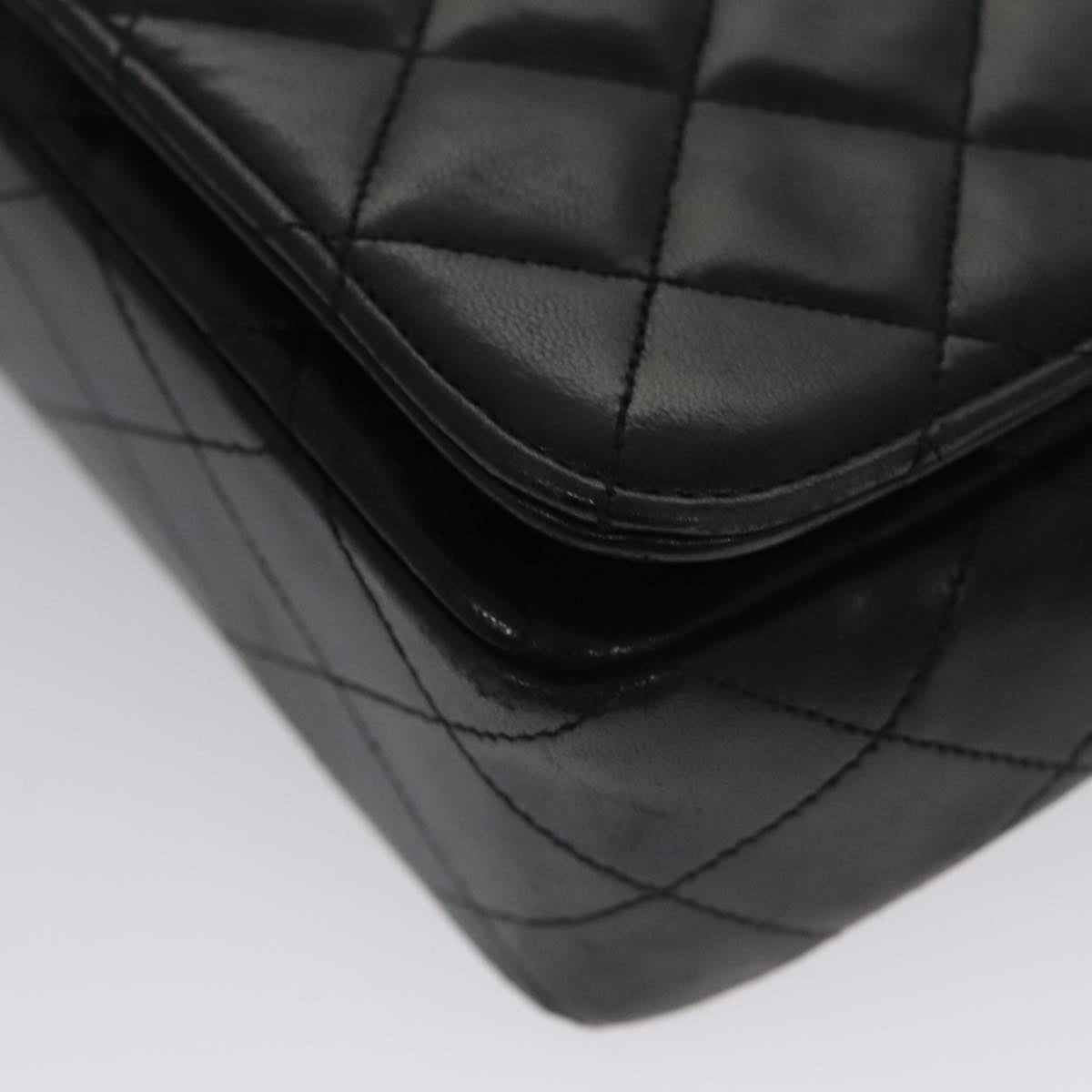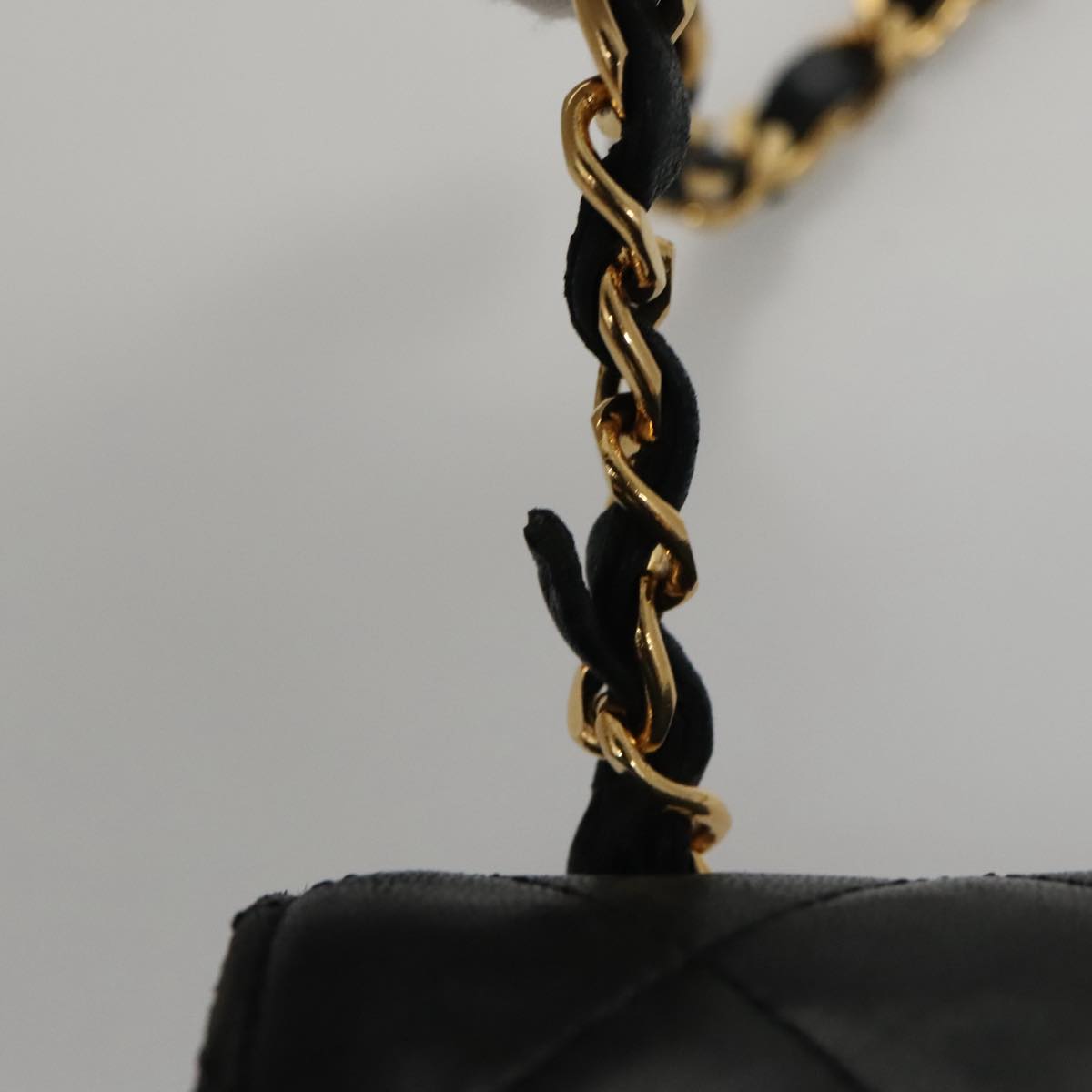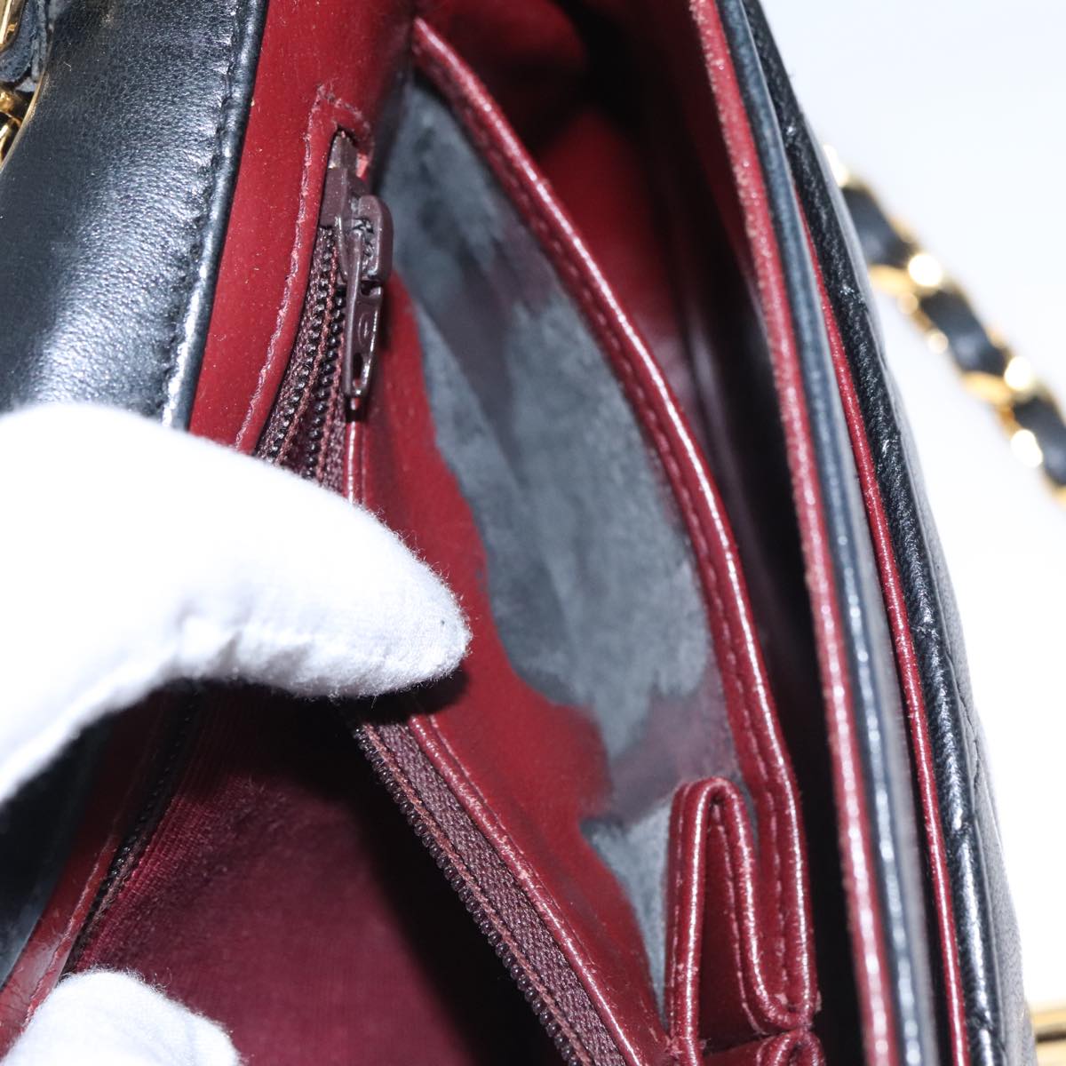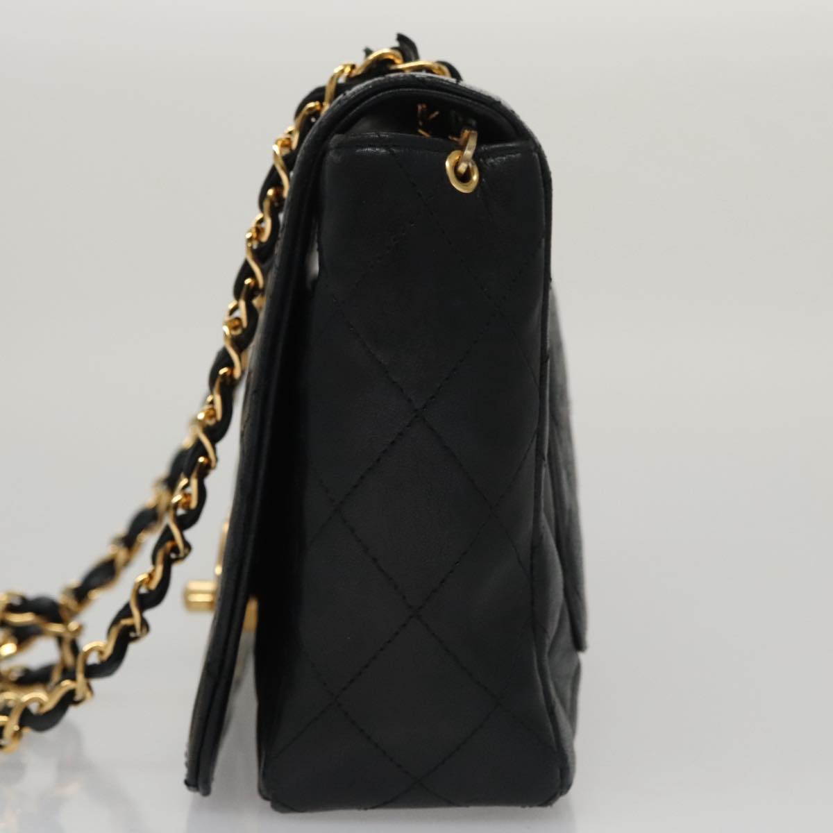 CHANEL Matelasse Chain Shoulder Bag Lamb Skin Black Gold CC Auth PP076