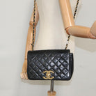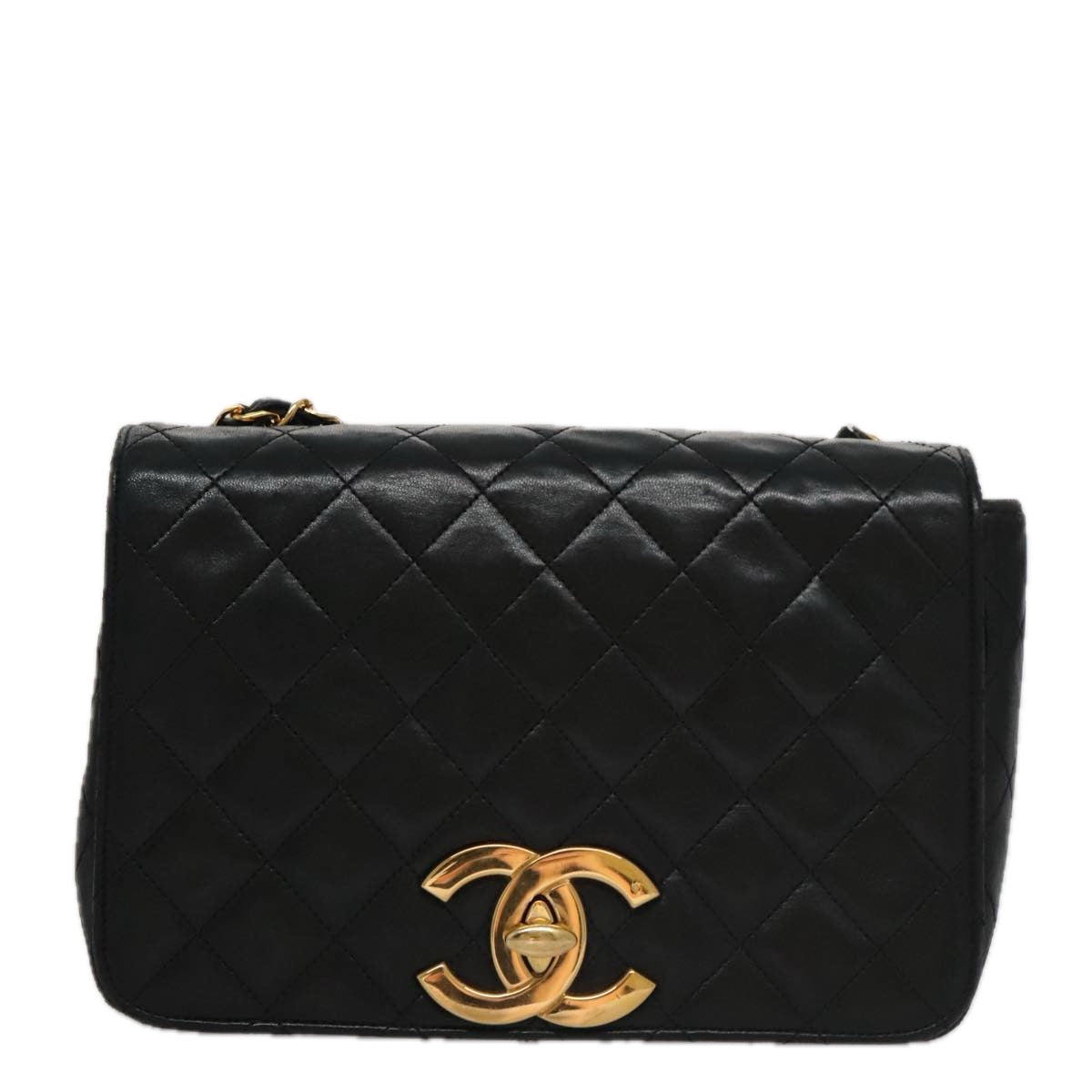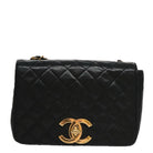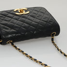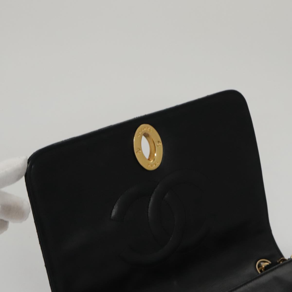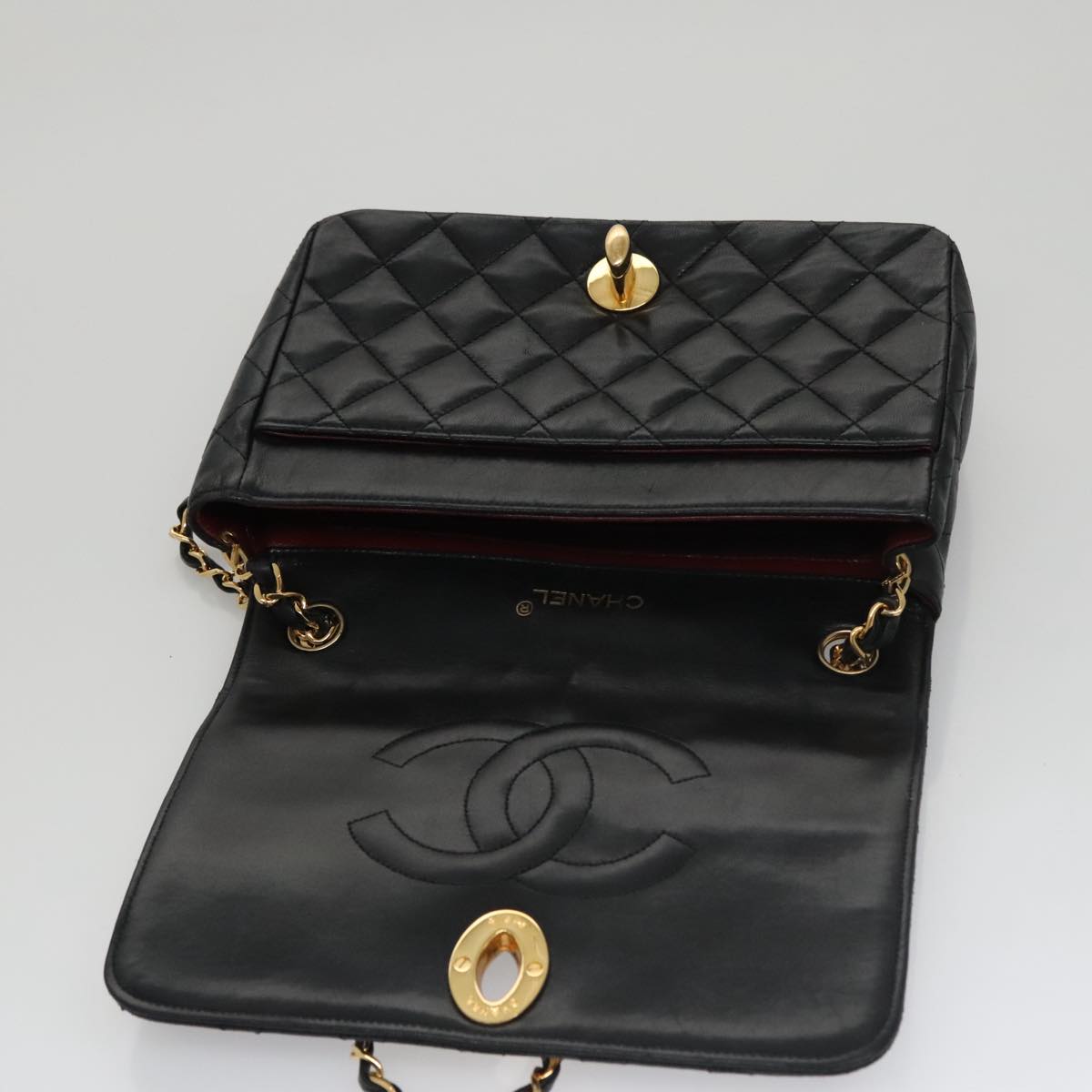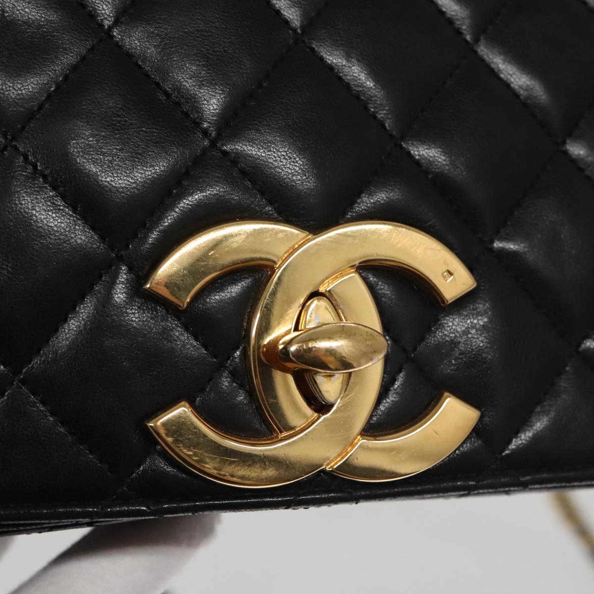 CHANEL Matelasse Chain Shoulder Bag Lamb Skin Black Gold CC Auth PP076