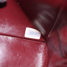The leather on the shoulder strap is peeling and has some torn areas. |