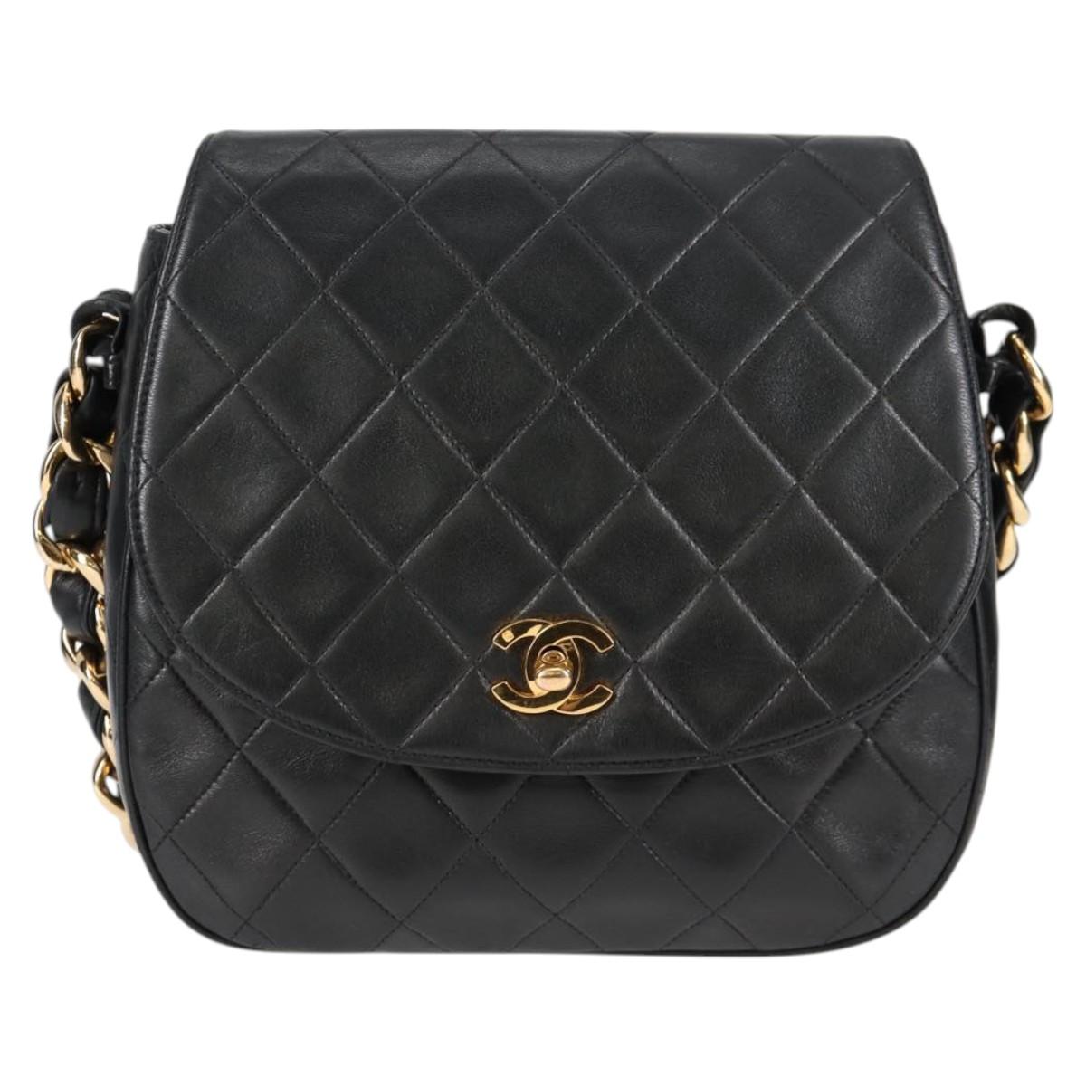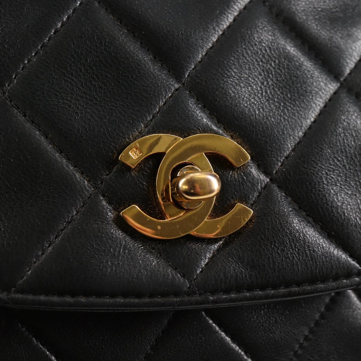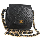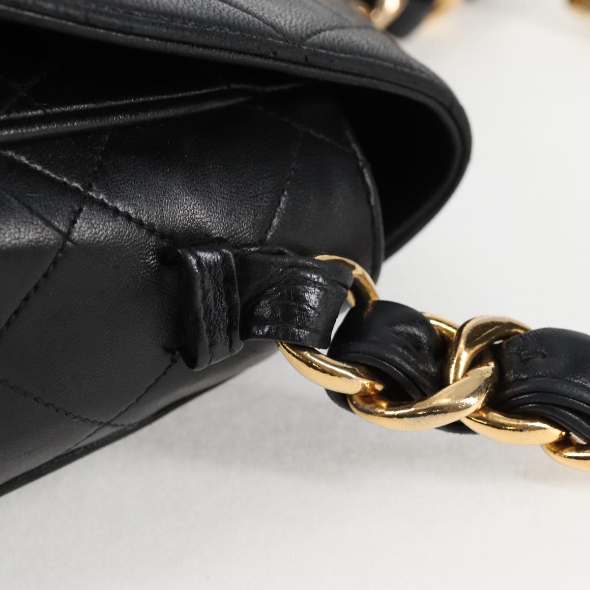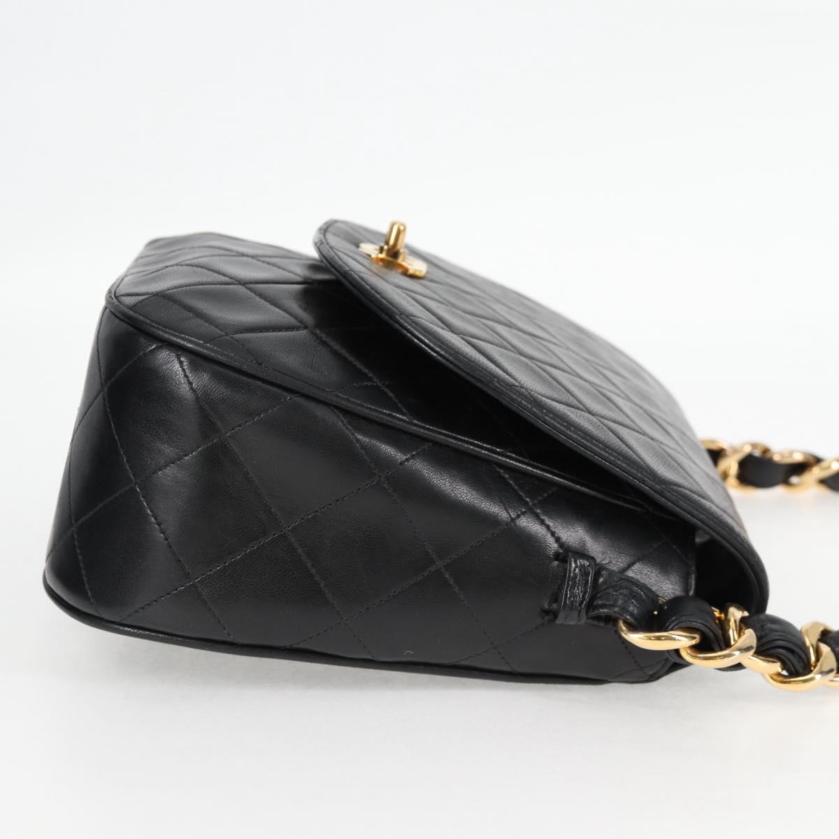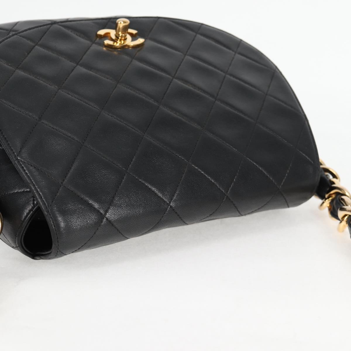 CHANEL Matelasse Chain Shoulder Bag Lamb Skin Black Gold CC Auth PP495V