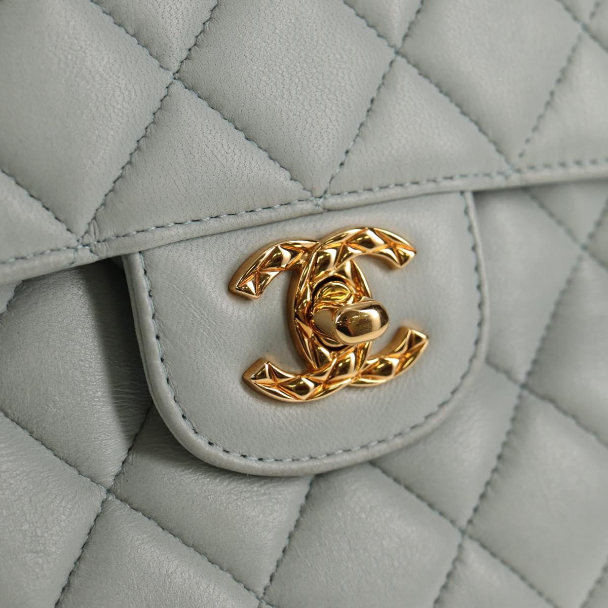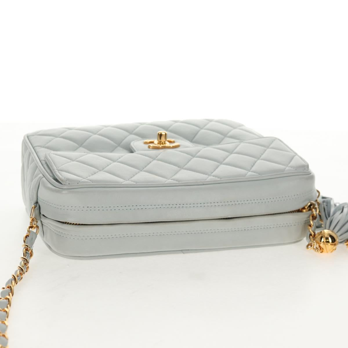 CHANEL Matelasse Chain Shoulder Bag Lamb Skin Light Blue Gold CC Auth 140125V