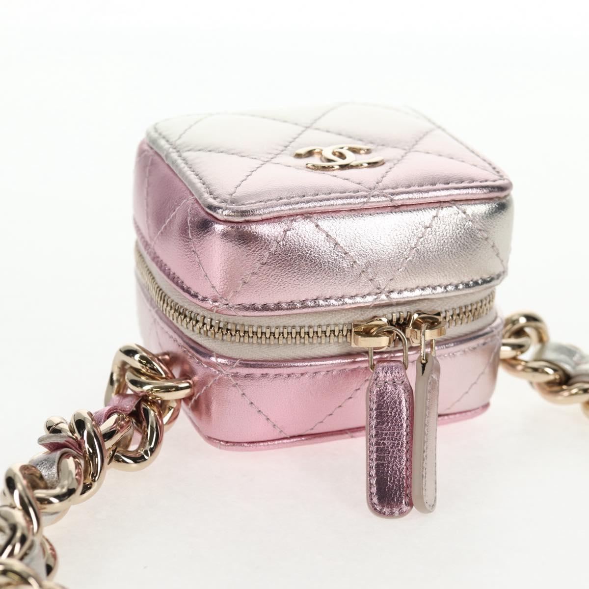 CHANEL Matelasse Chain Shoulder Bag Lamb Skin Pink Gold CC Auth 135407M