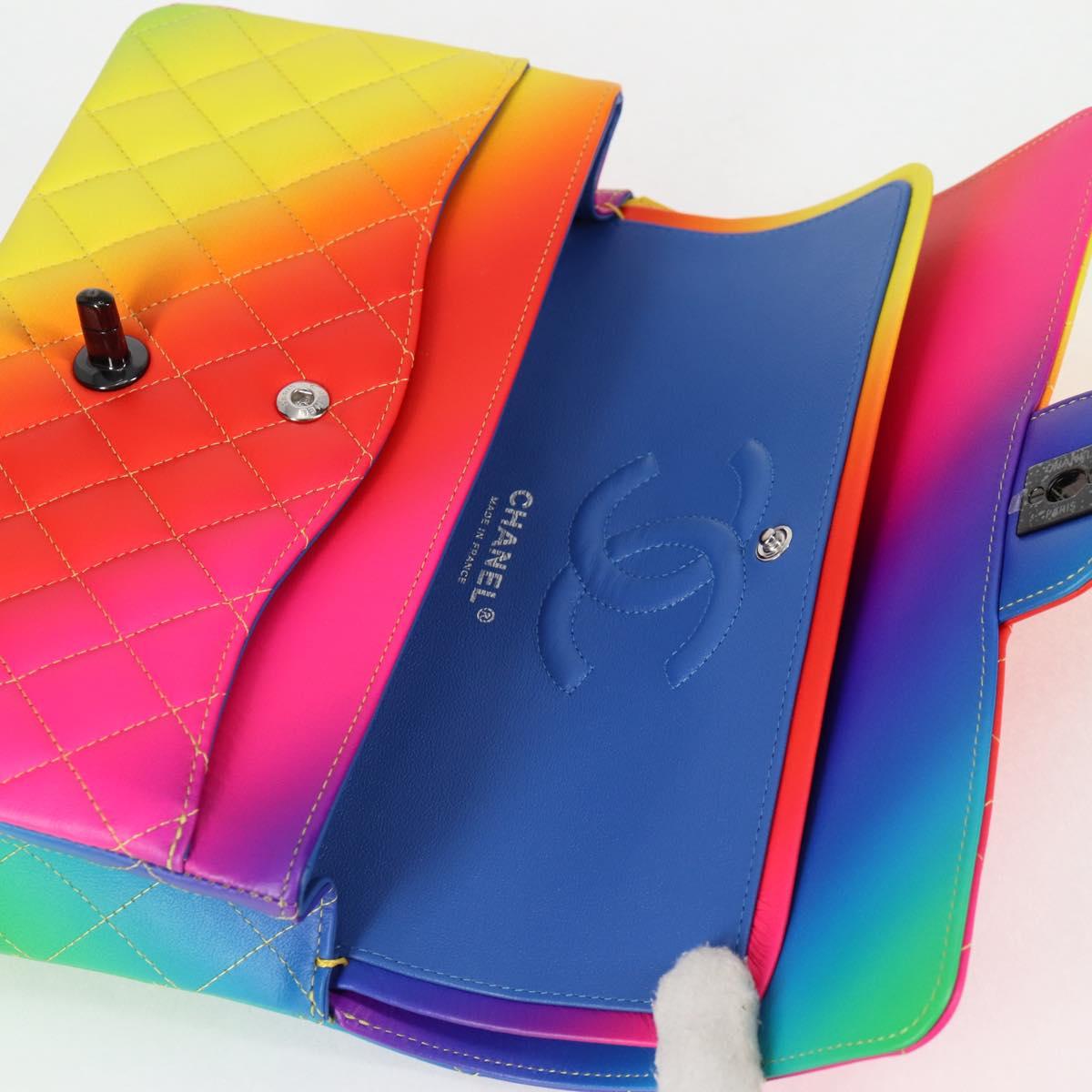 CHANEL Matelasse Chain Shoulder Bag Lamb Skin Rainbow CC Auth 122426SM