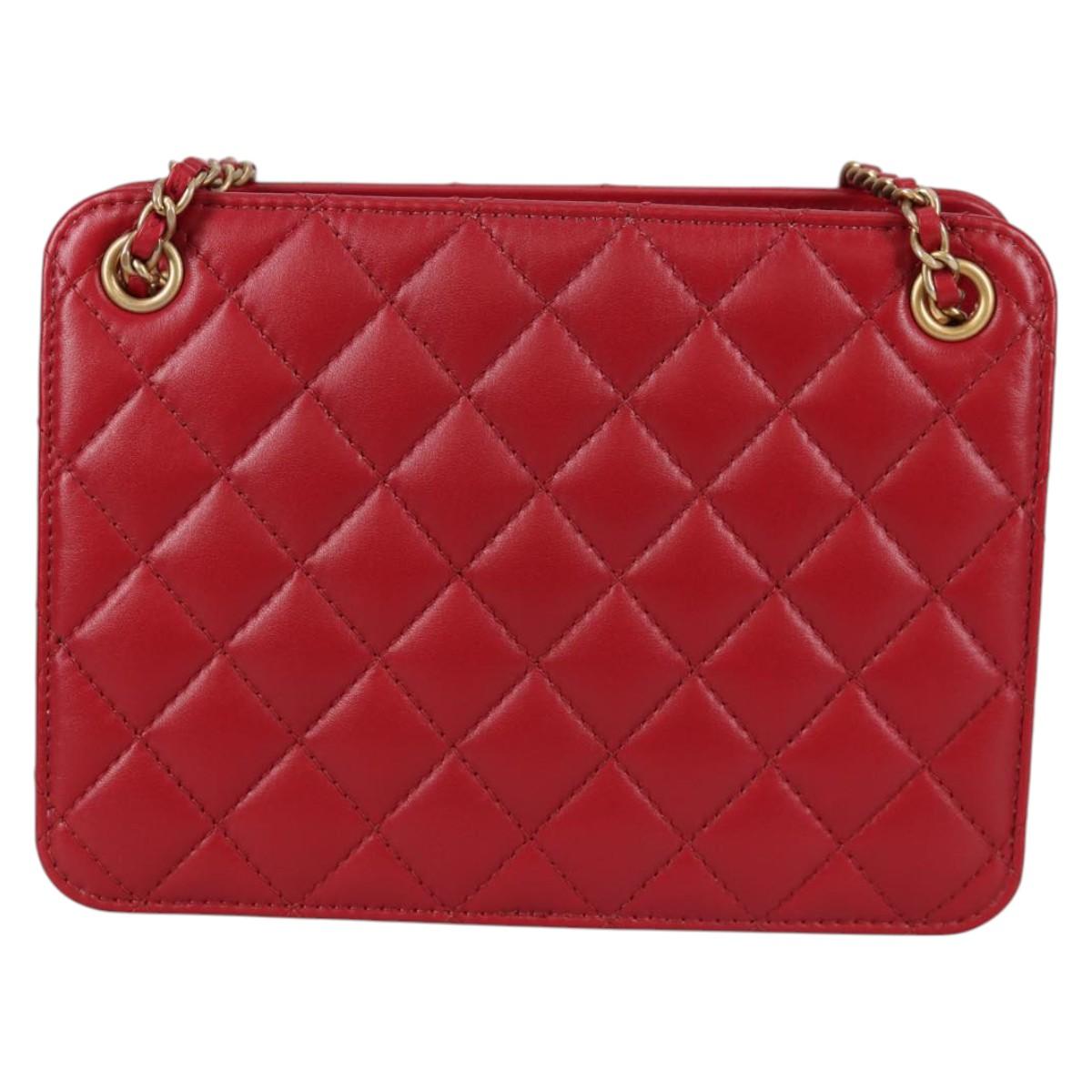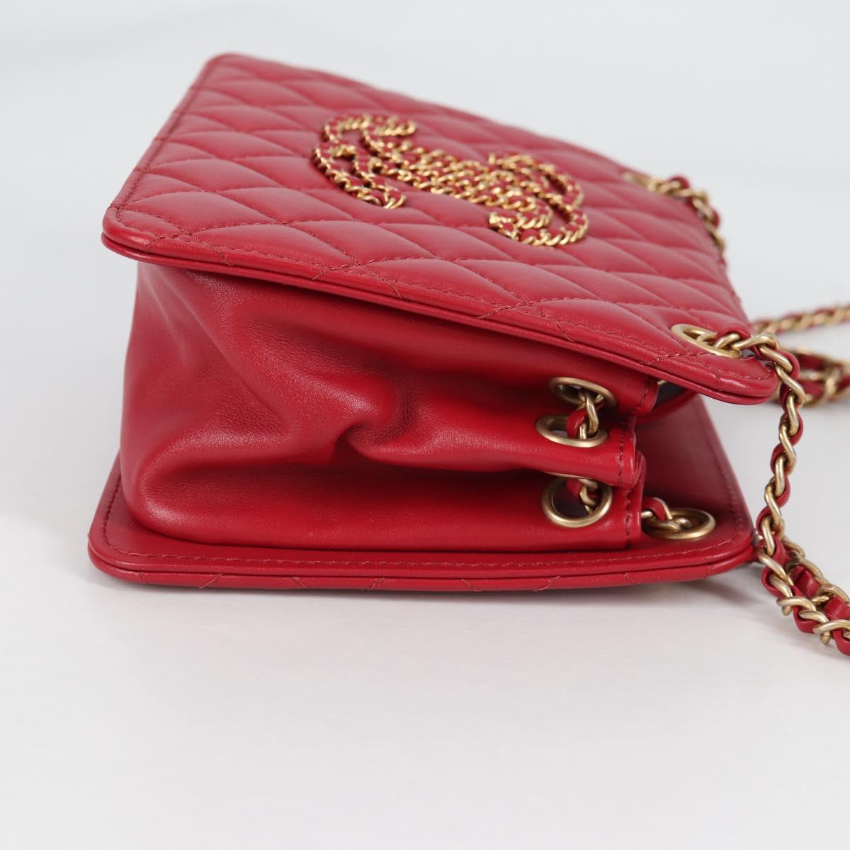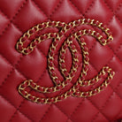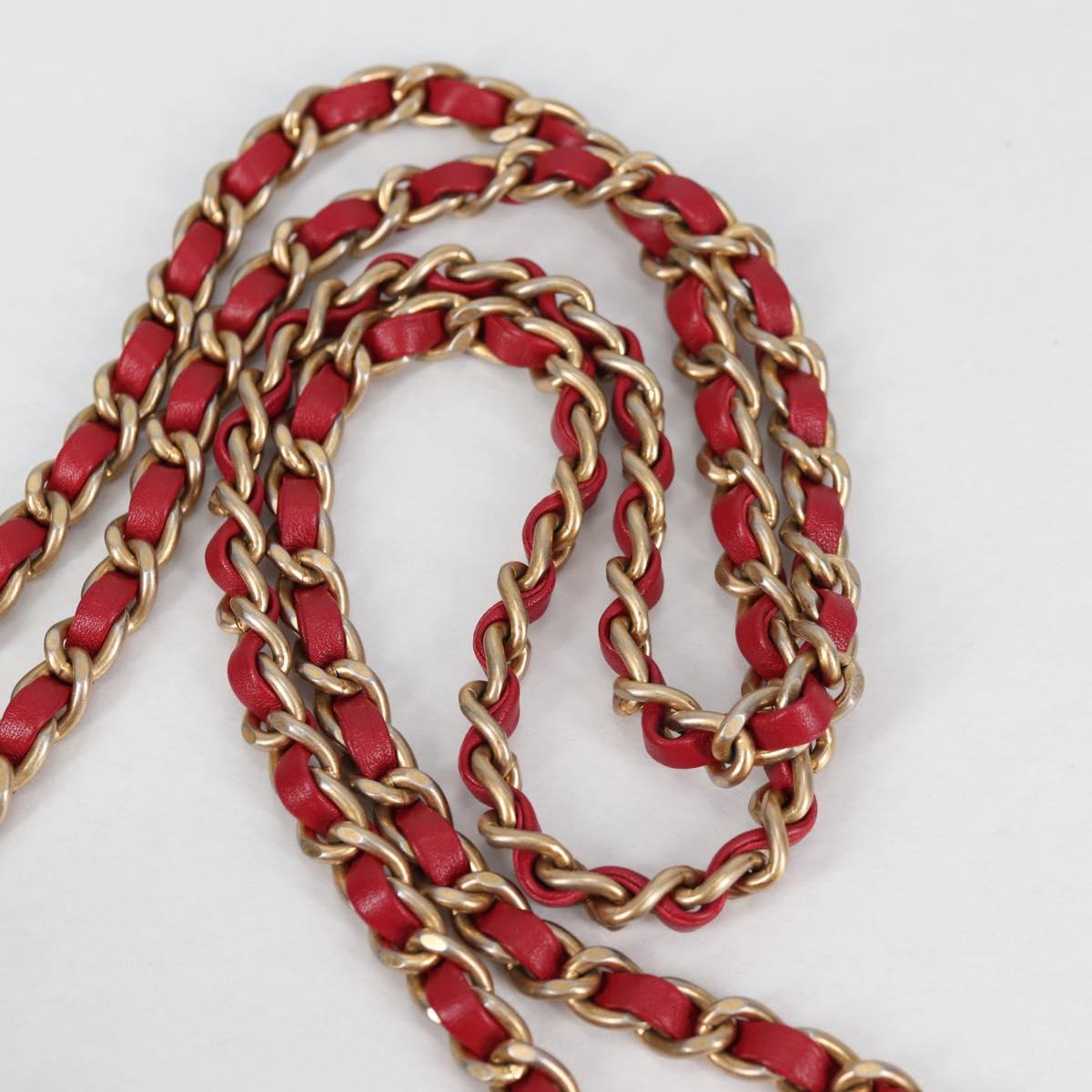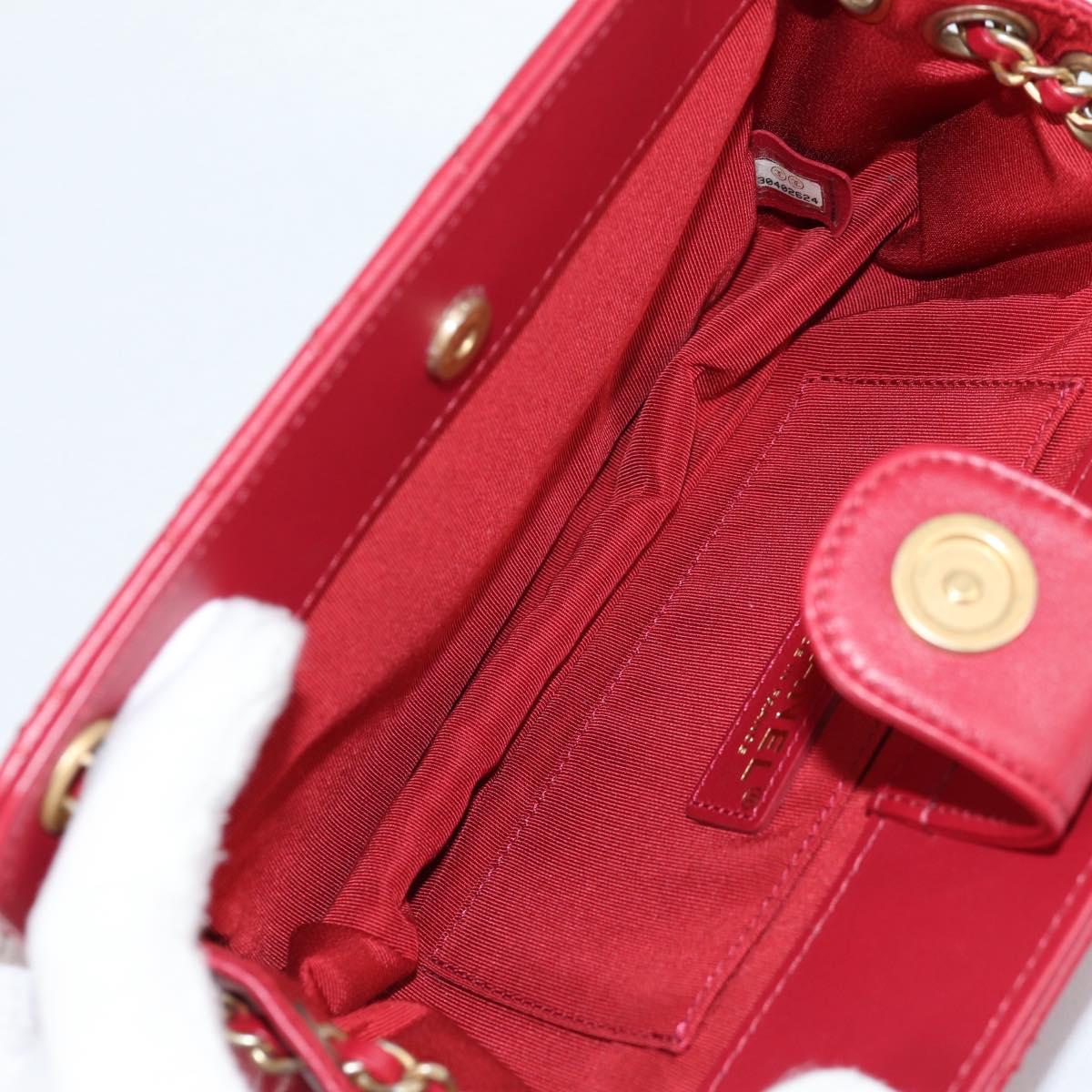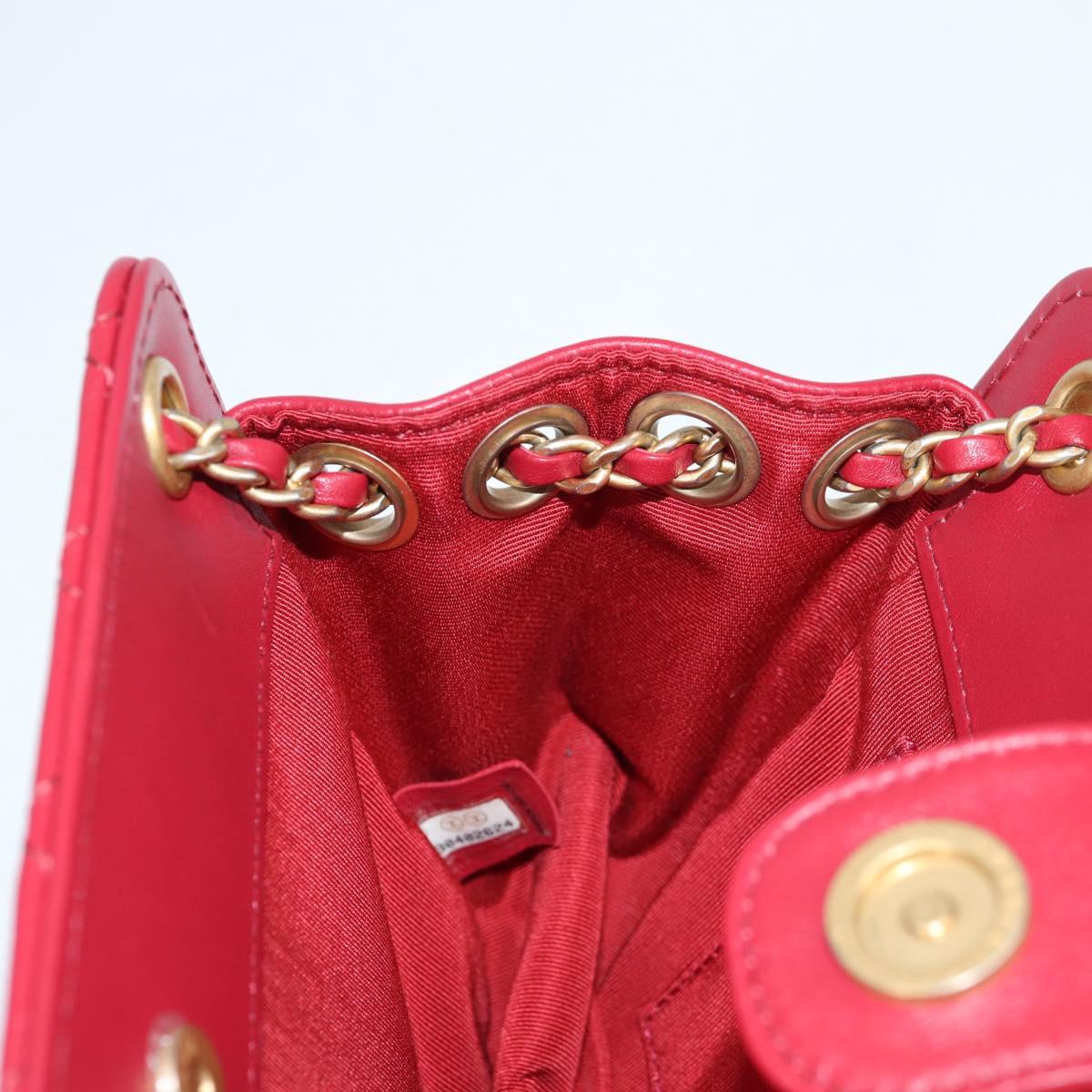 CHANEL Matelasse Chain Shoulder Bag Lamb Skin Red Gold CC Auth 135819M